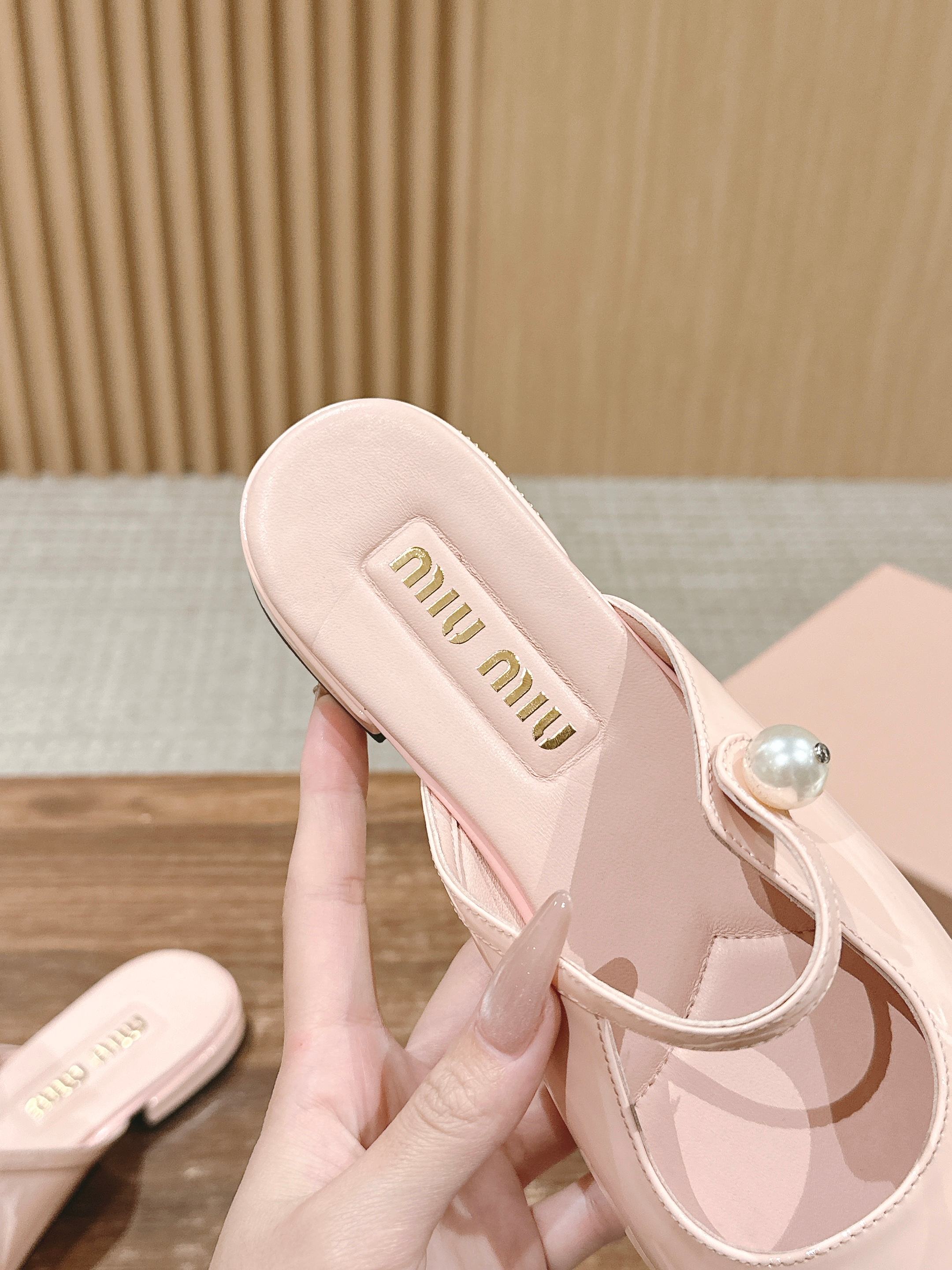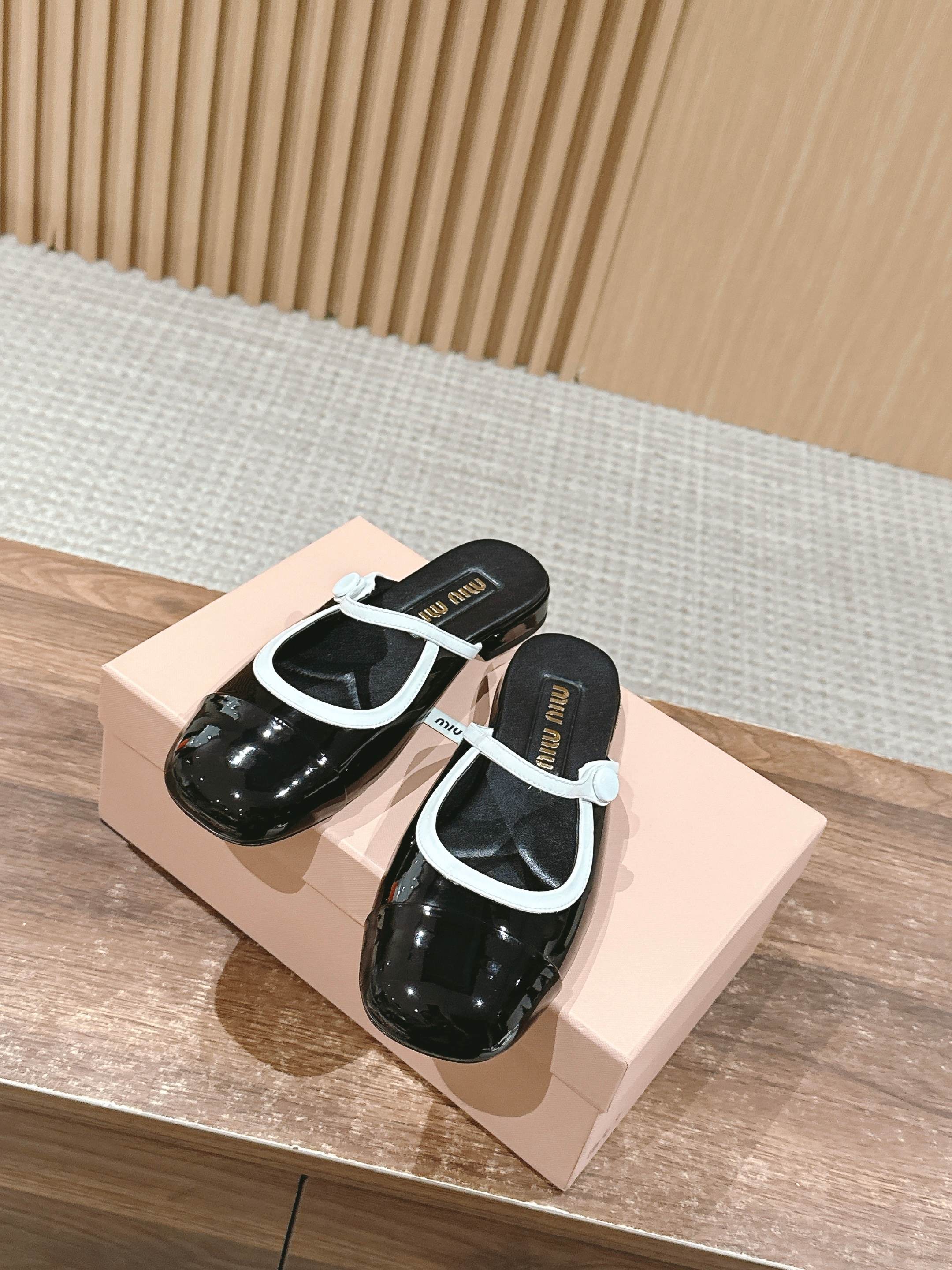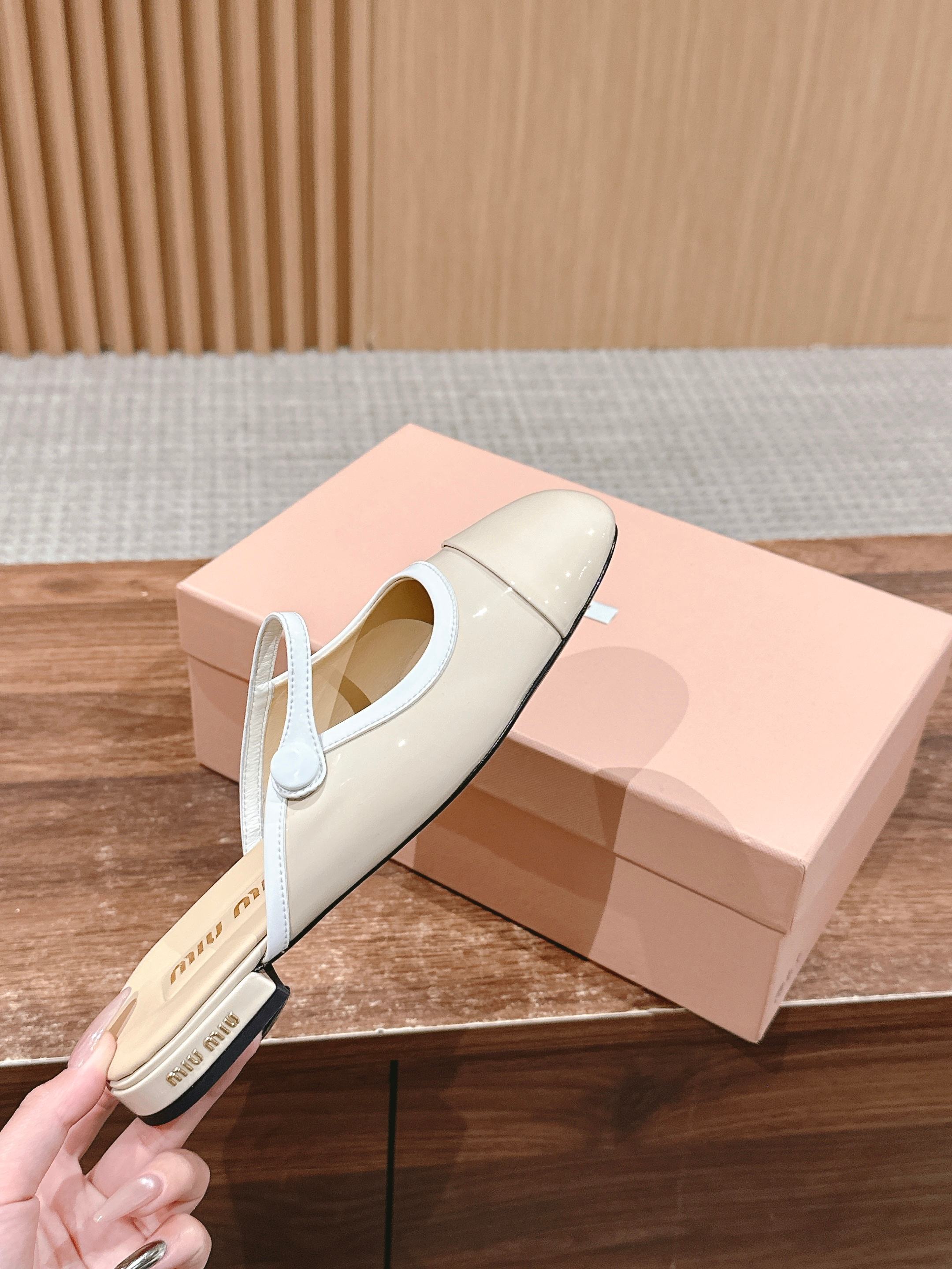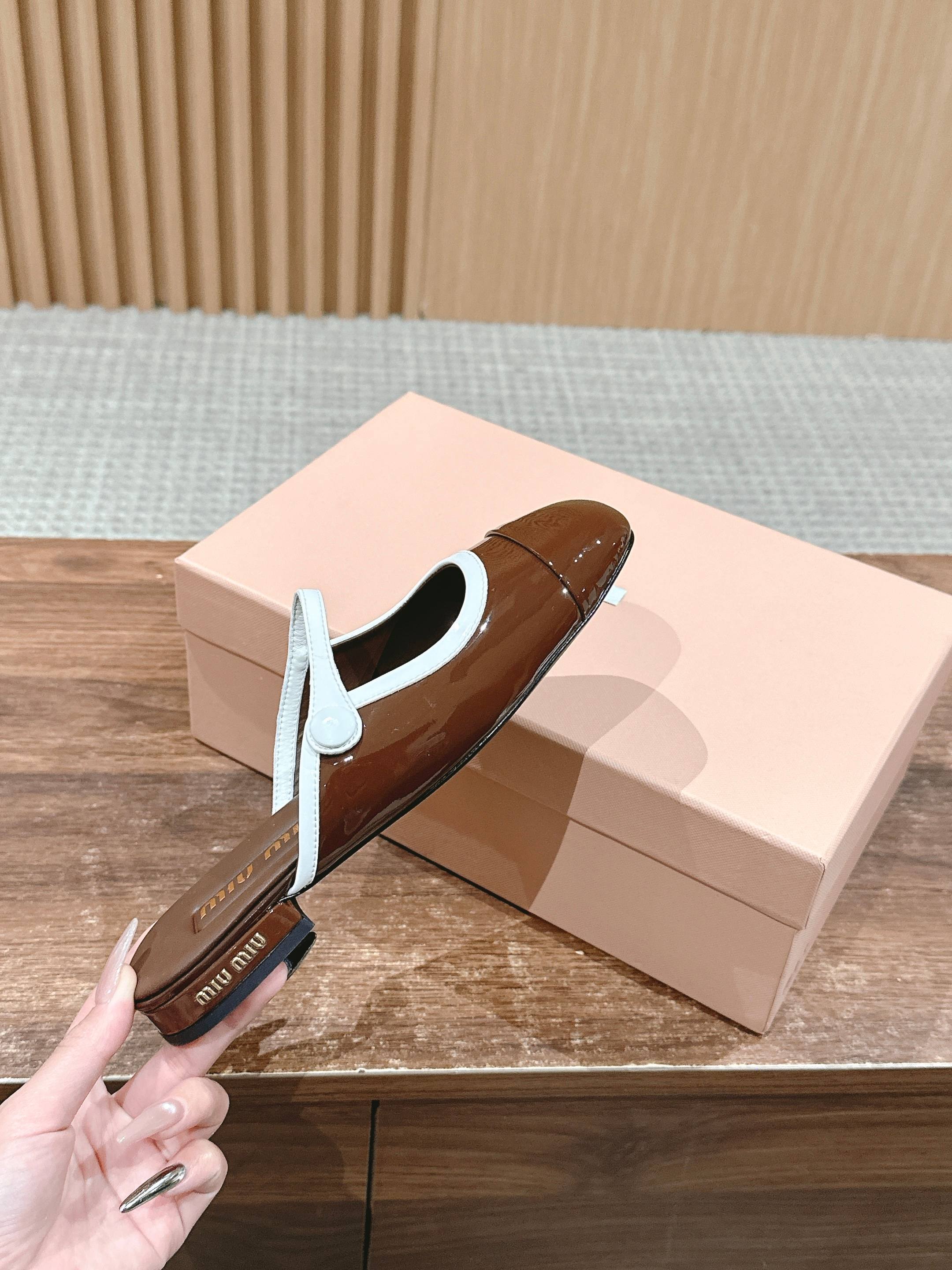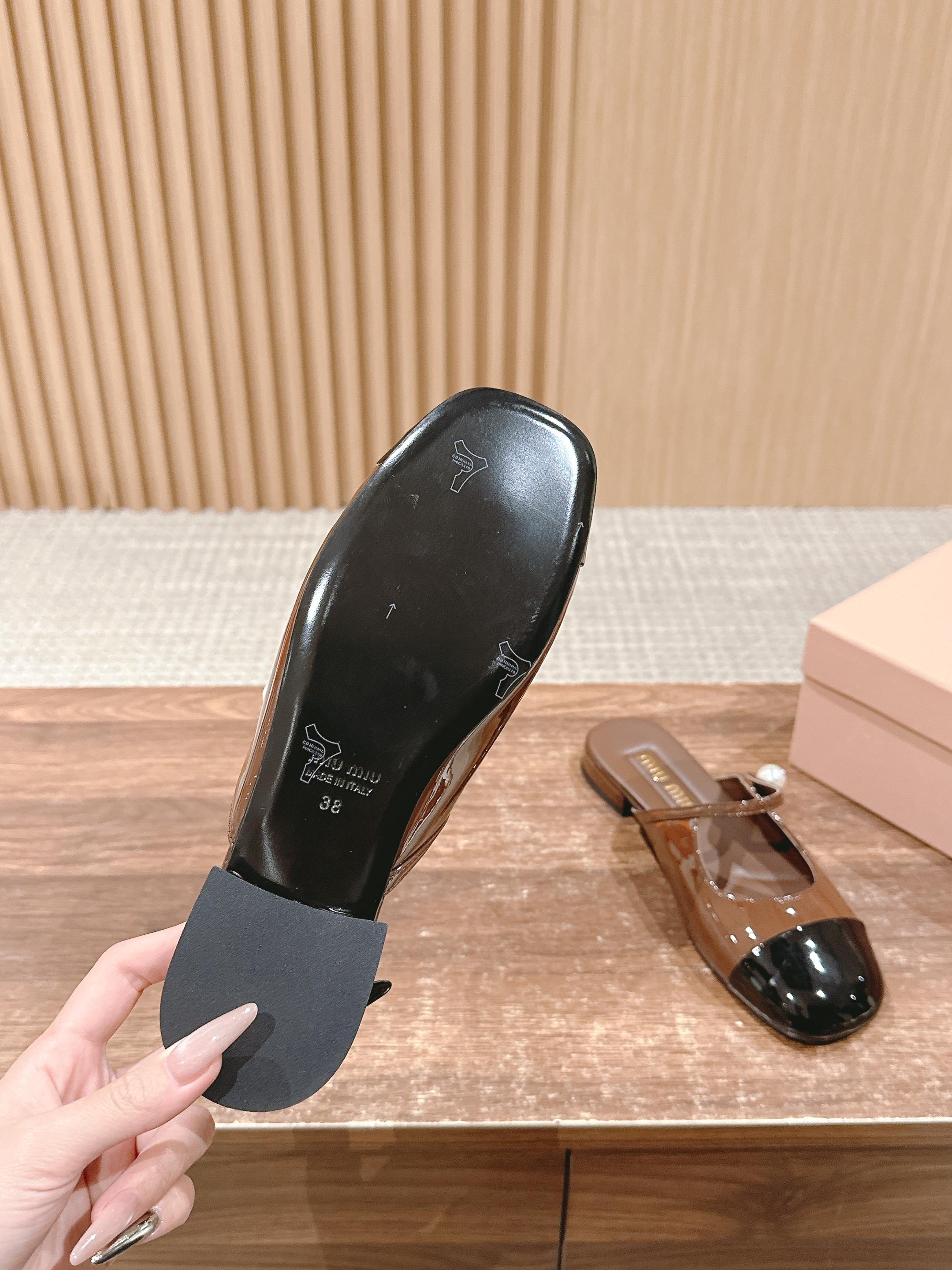 缪缪大王最新款,新款春日多巴胺配色,热情洋溢的搭配就很适适配春天!经典的玛丽珍小巧设计,包头半拖,漆皮的质感真的绝了!单扣带不用担心不跟脚哦!珍珠扣点缀增加小亮眼!!