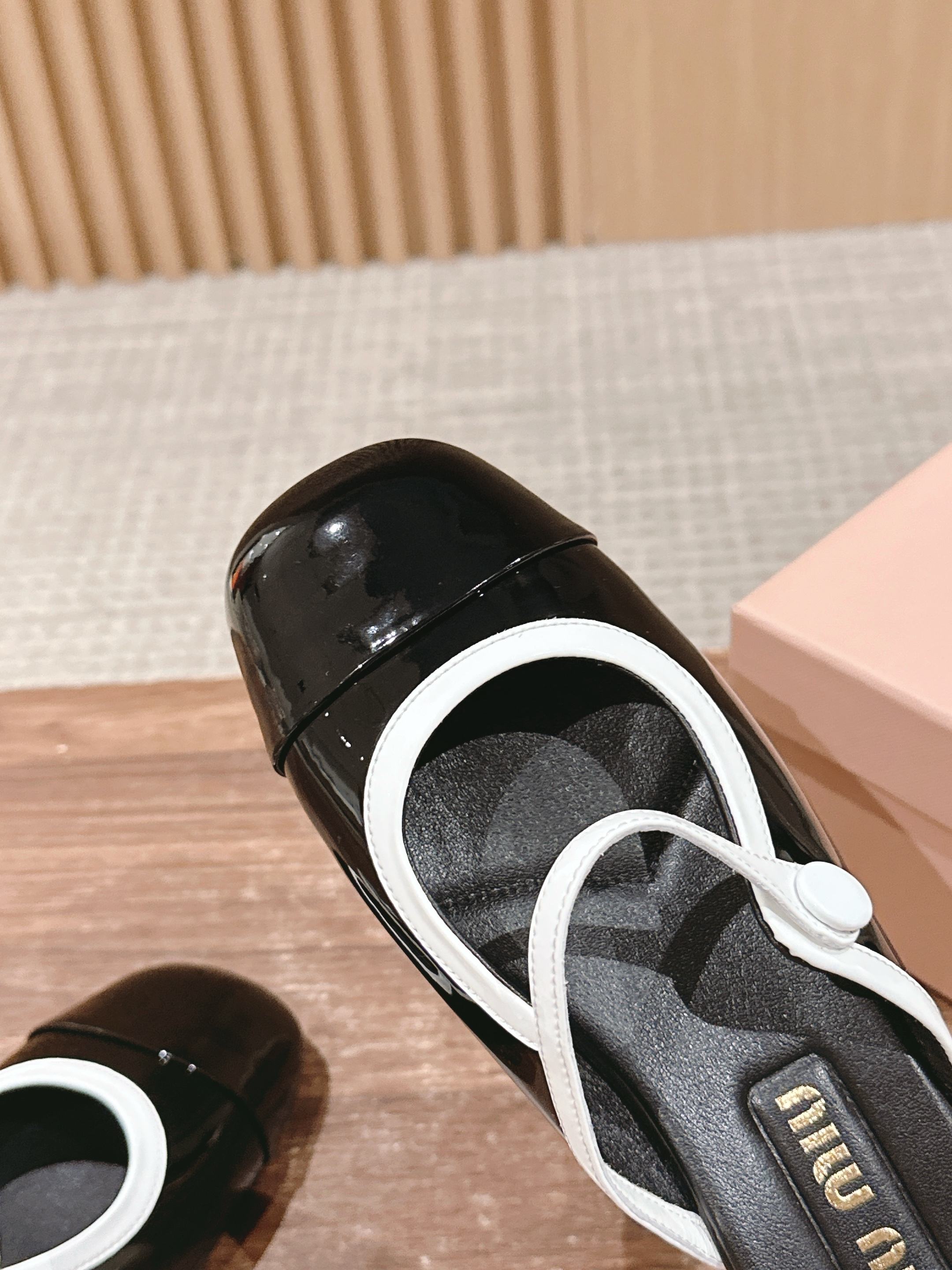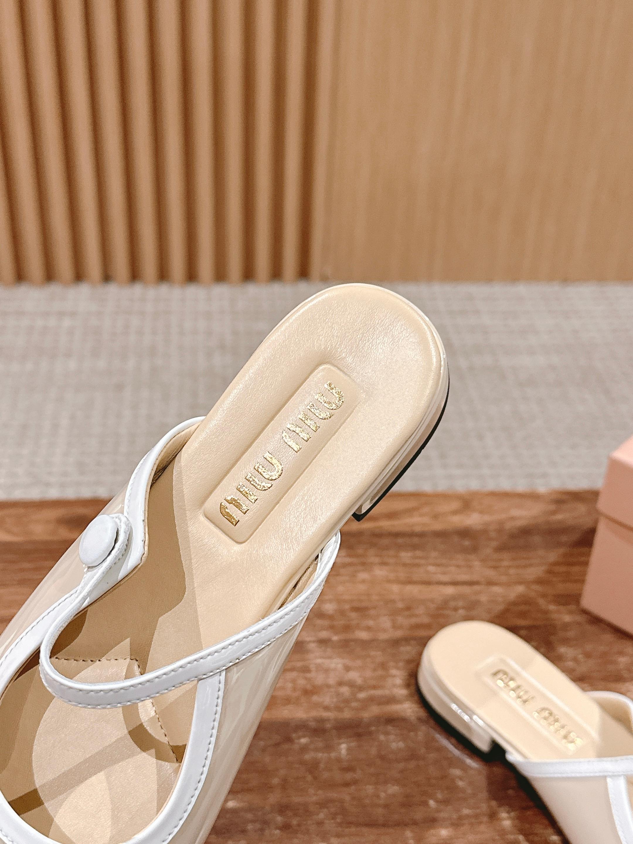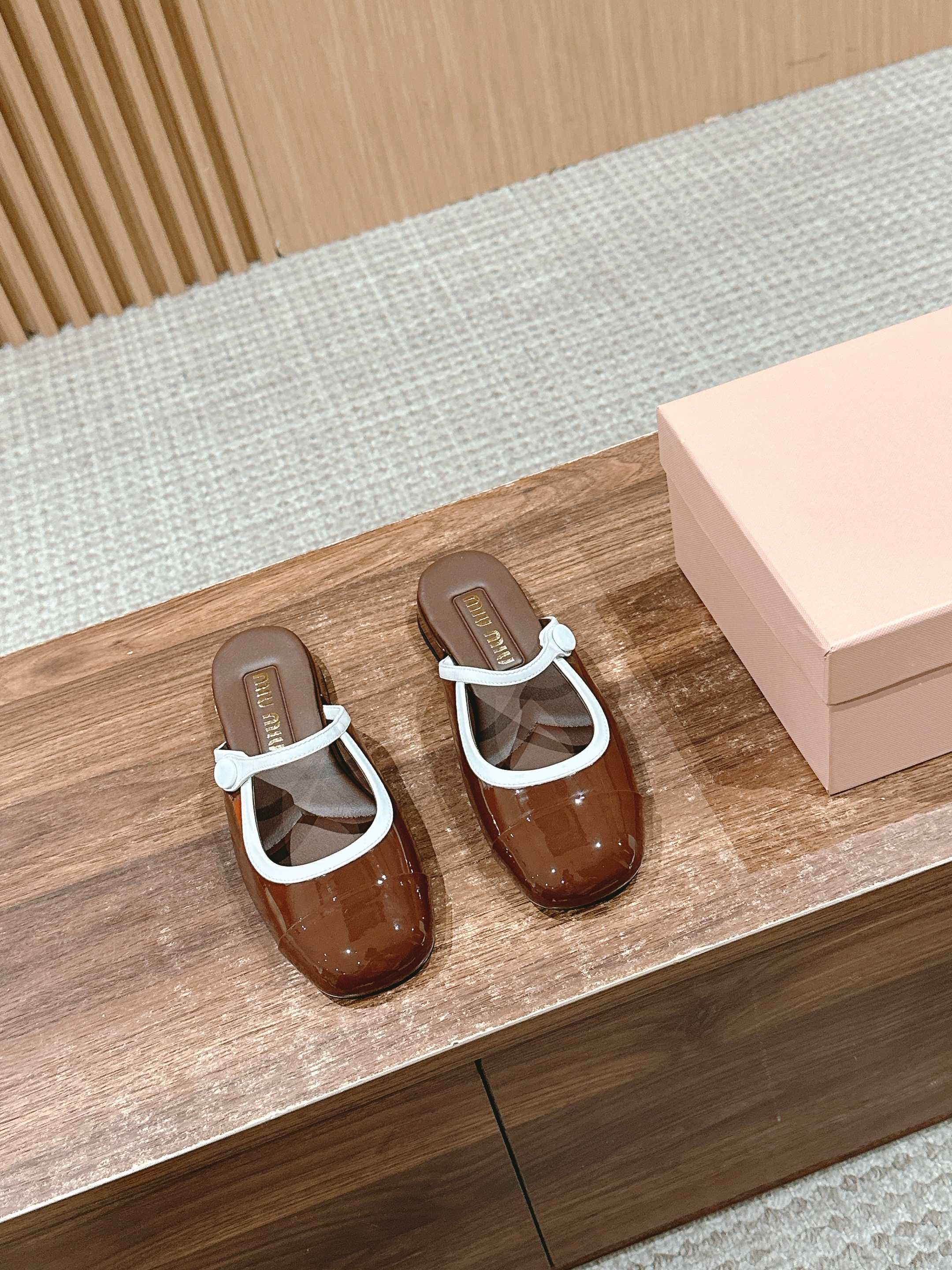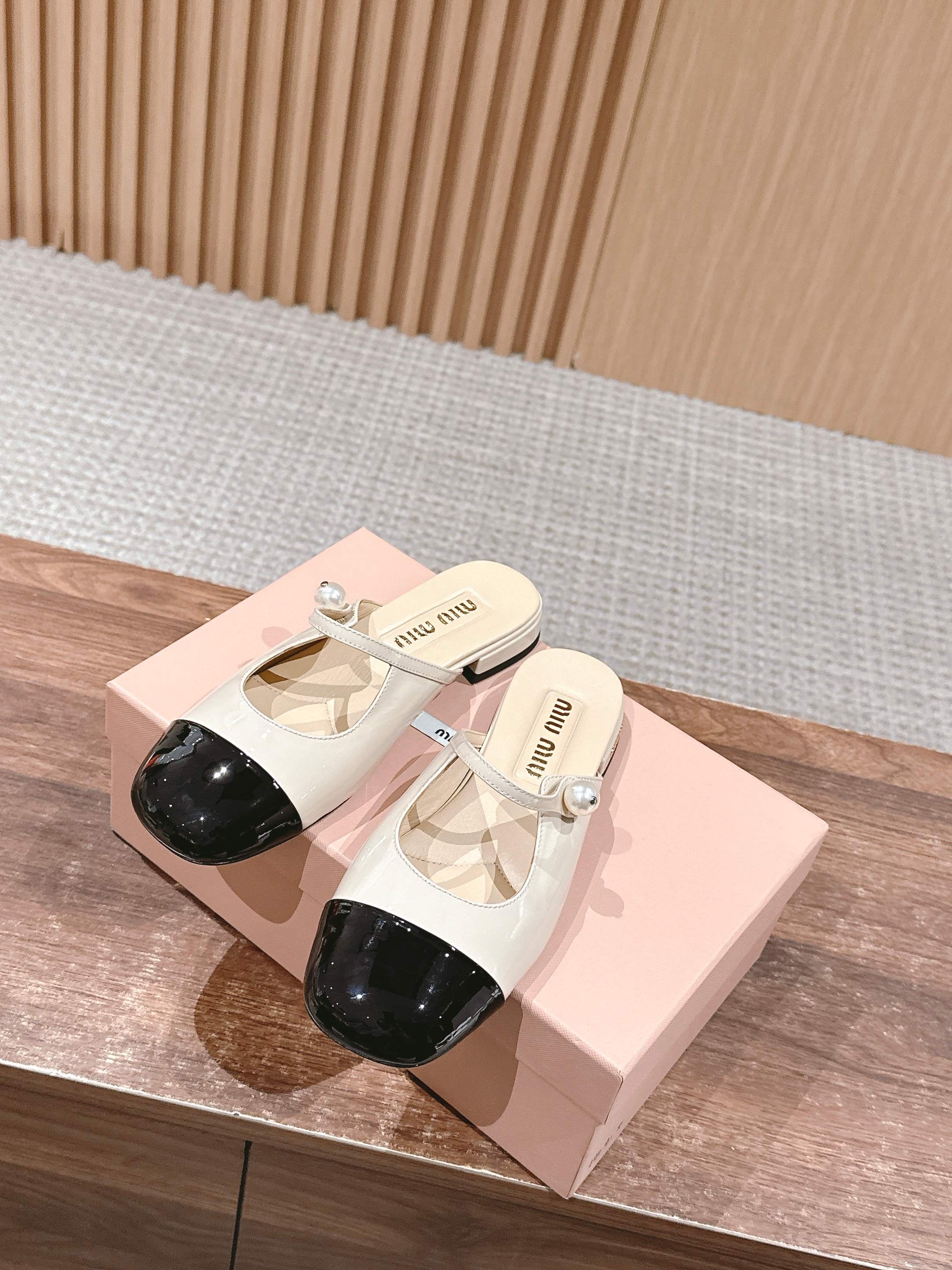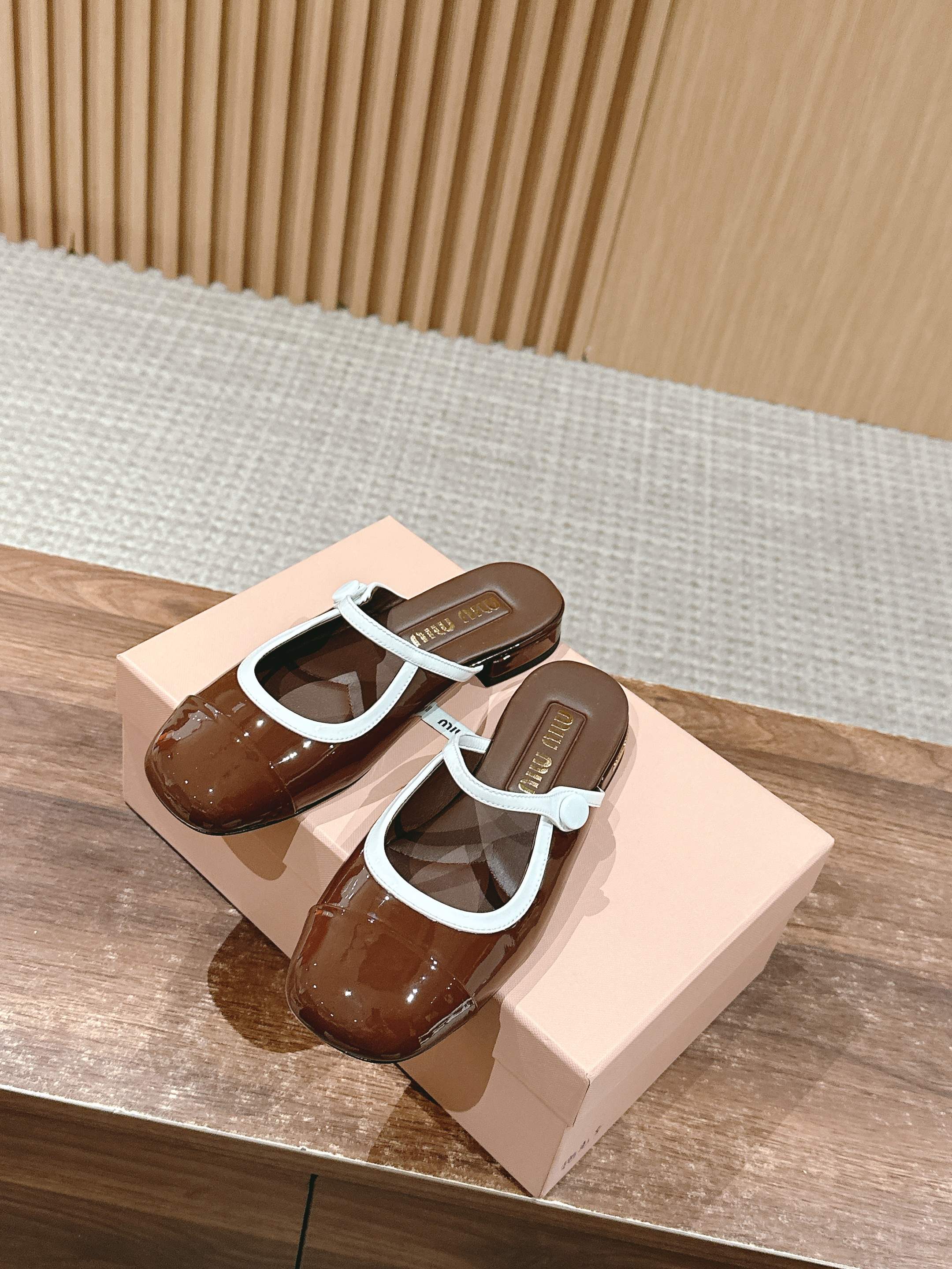 缪缪大王最新款,新款春日多巴胺配色,热情洋溢的搭配就很适适配春天!经典的玛丽珍小巧设计,包头半拖,漆皮的质感真的绝了!单扣带不用担心不跟脚哦!珍珠扣点缀增加小亮眼!!