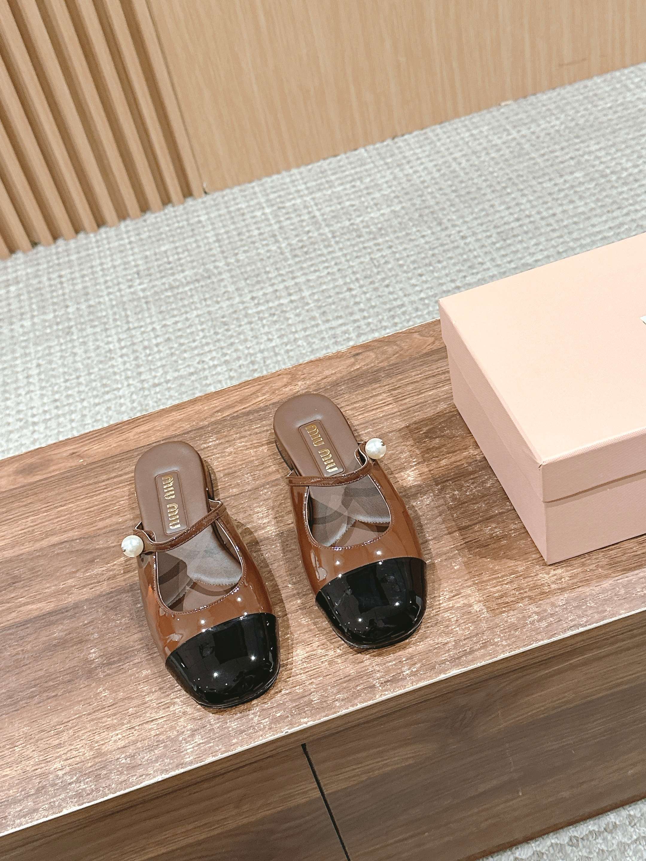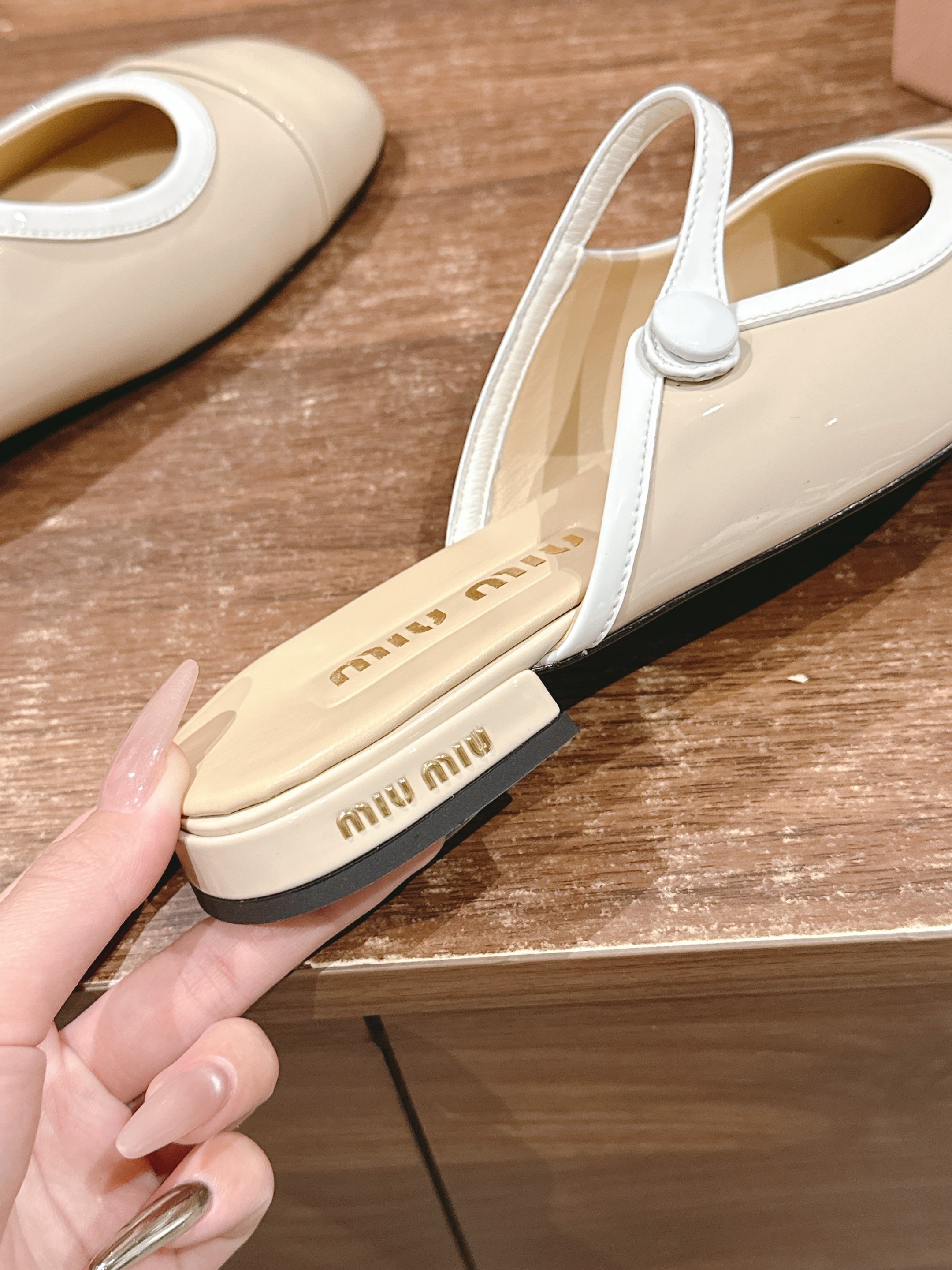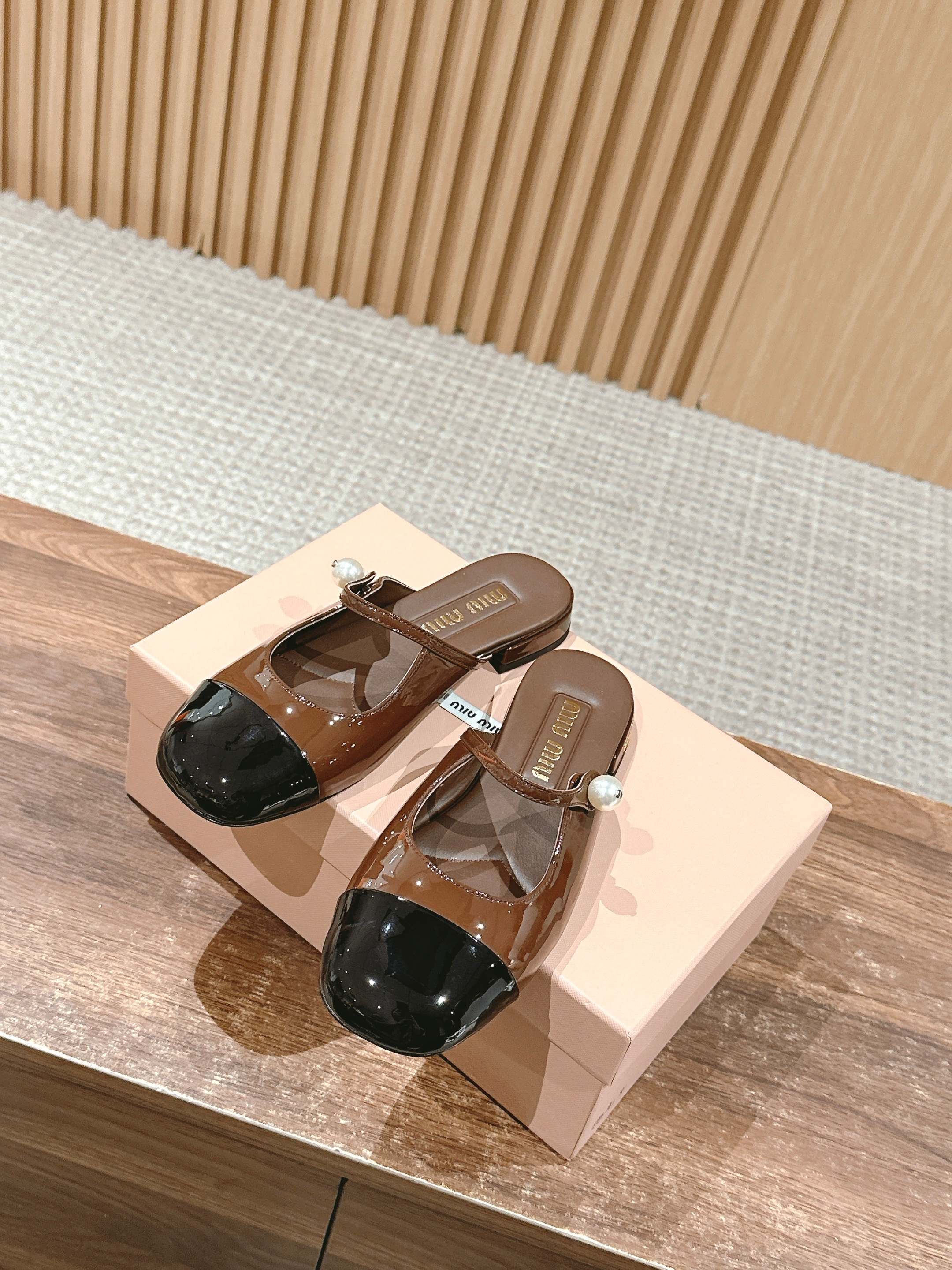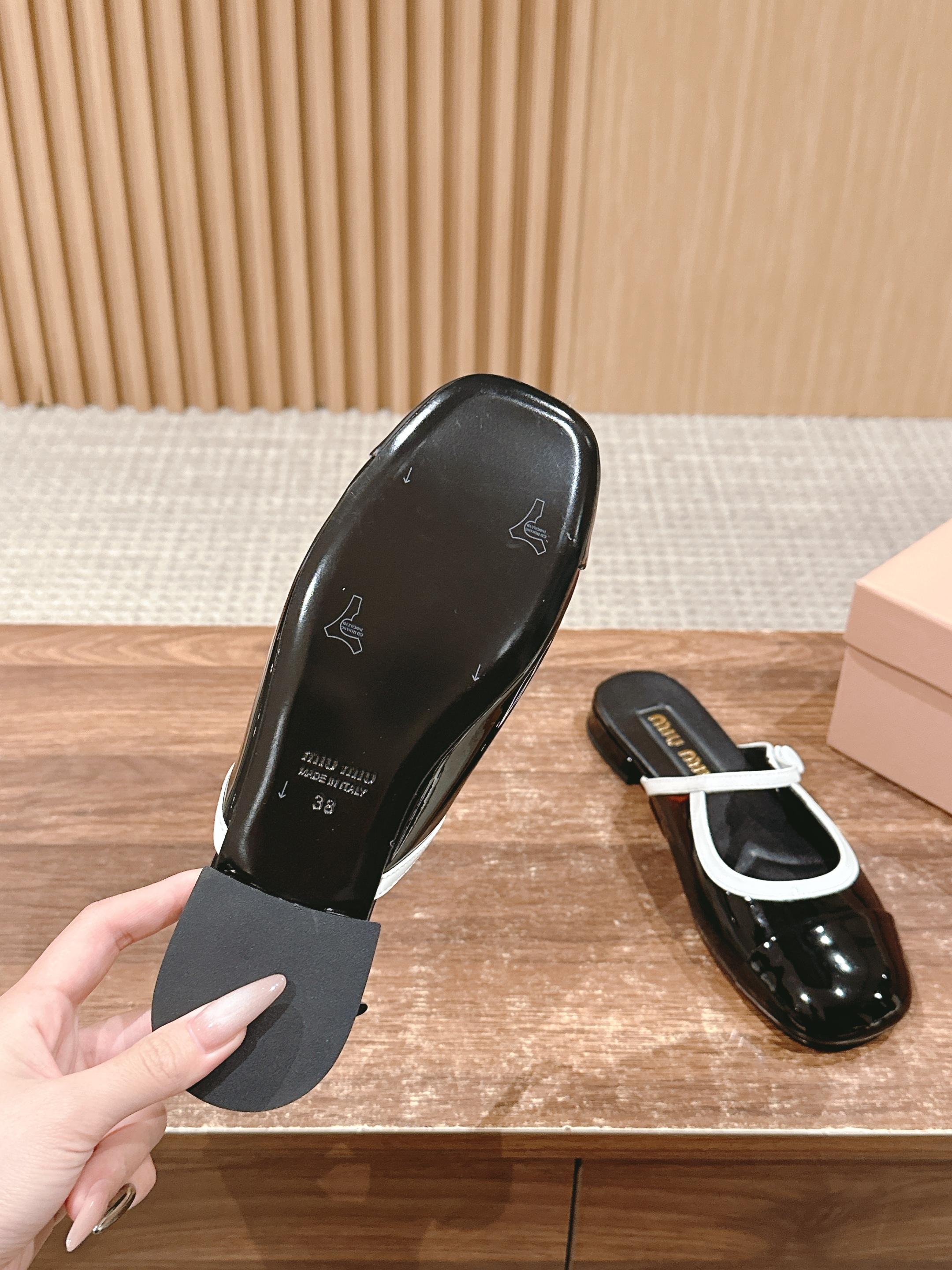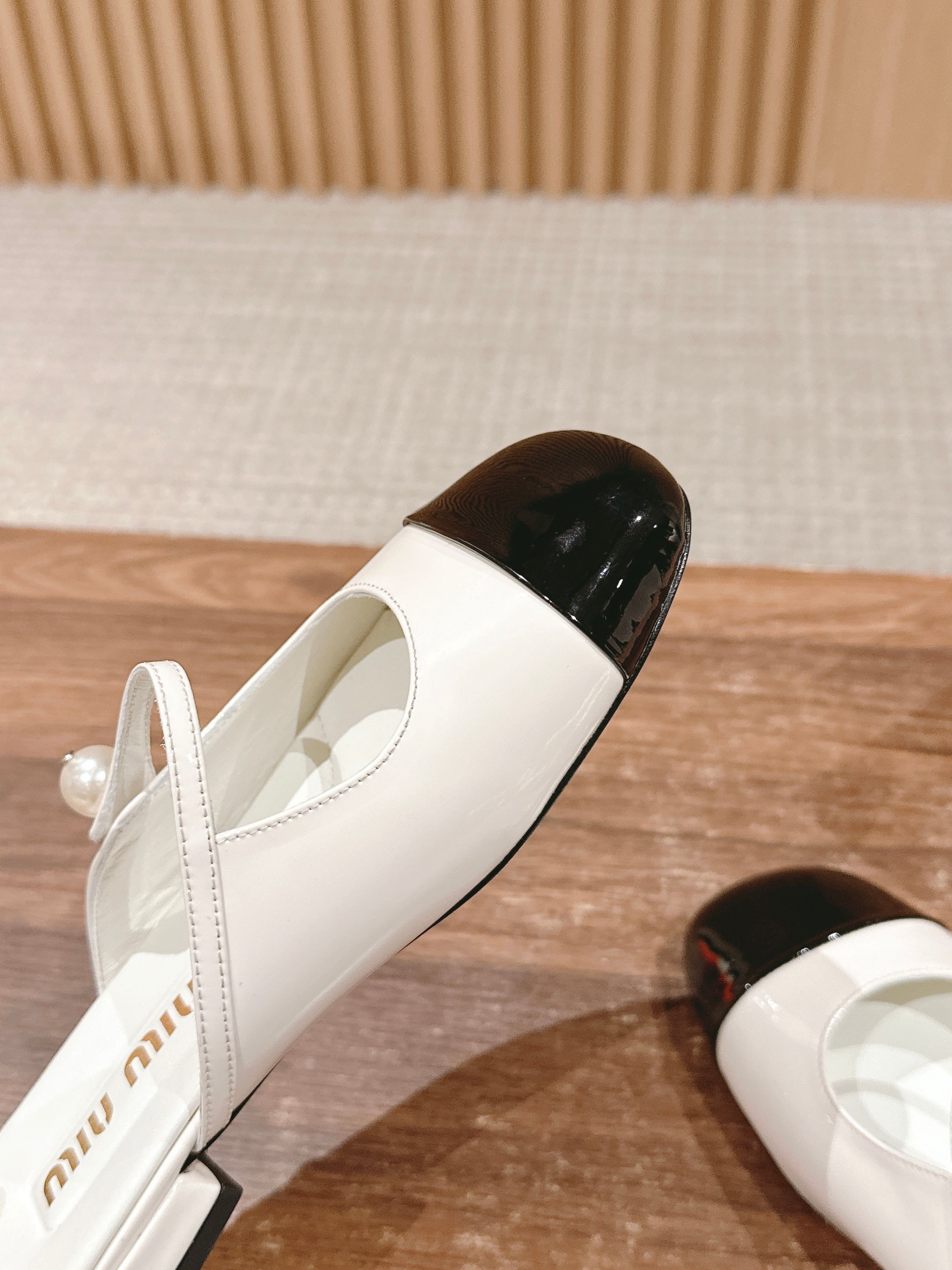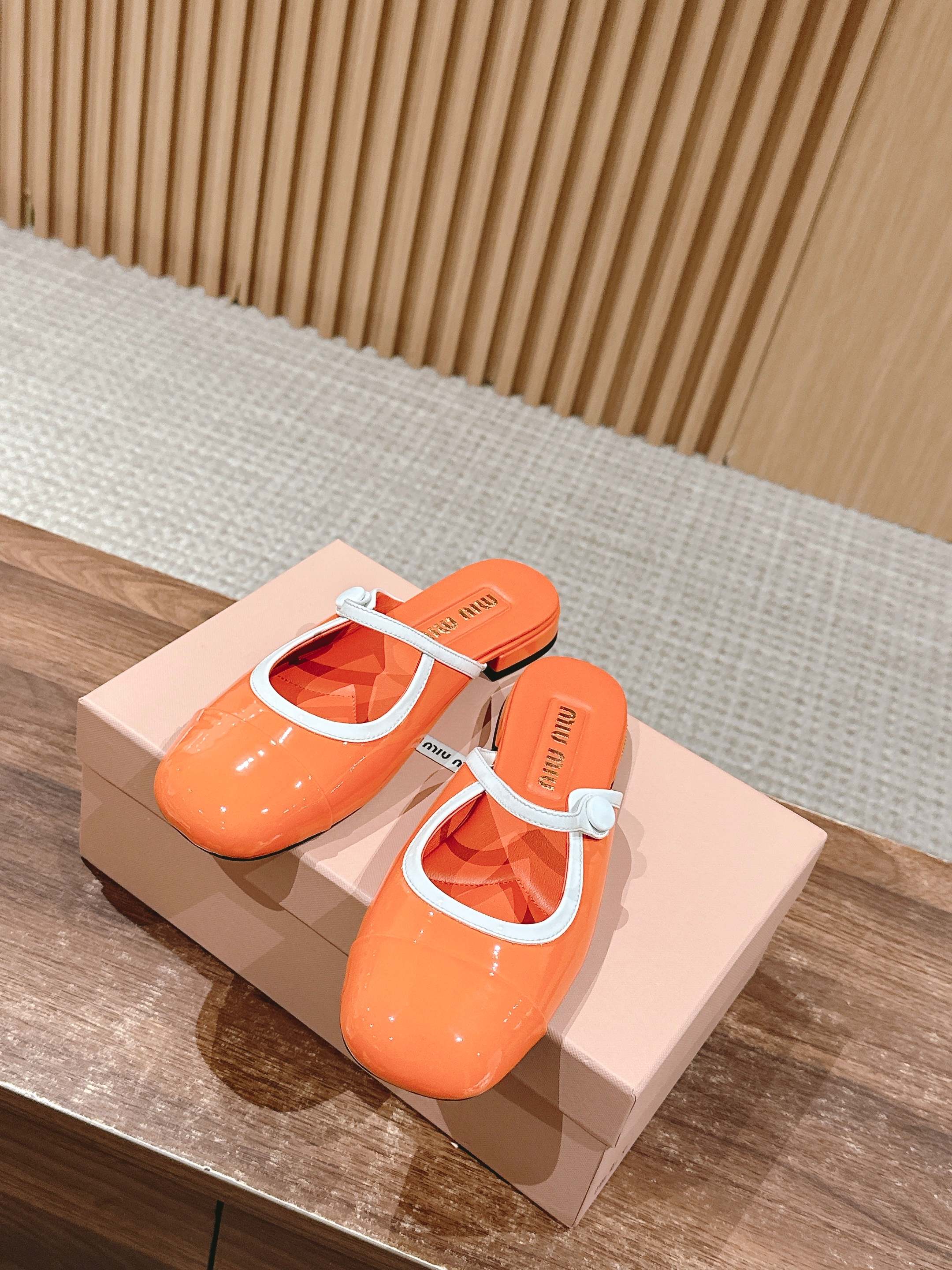 缪缪大王最新款,新款春日多巴胺配色,热情洋溢的搭配就很适适配春天!经典的玛丽珍小巧设计,包头半拖,漆皮的质感真的绝了!单扣带不用担心不跟脚哦!珍珠扣点缀增加小亮眼!!