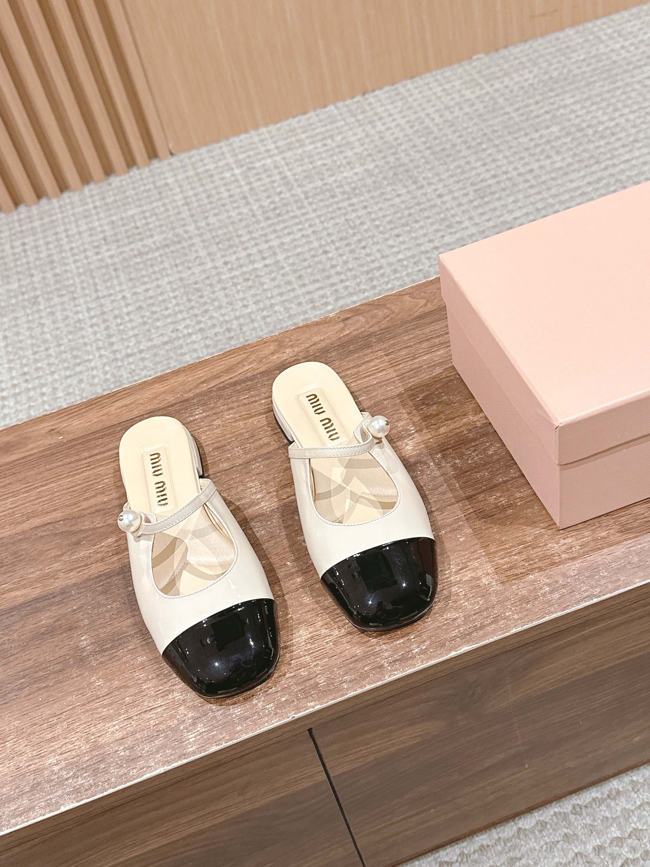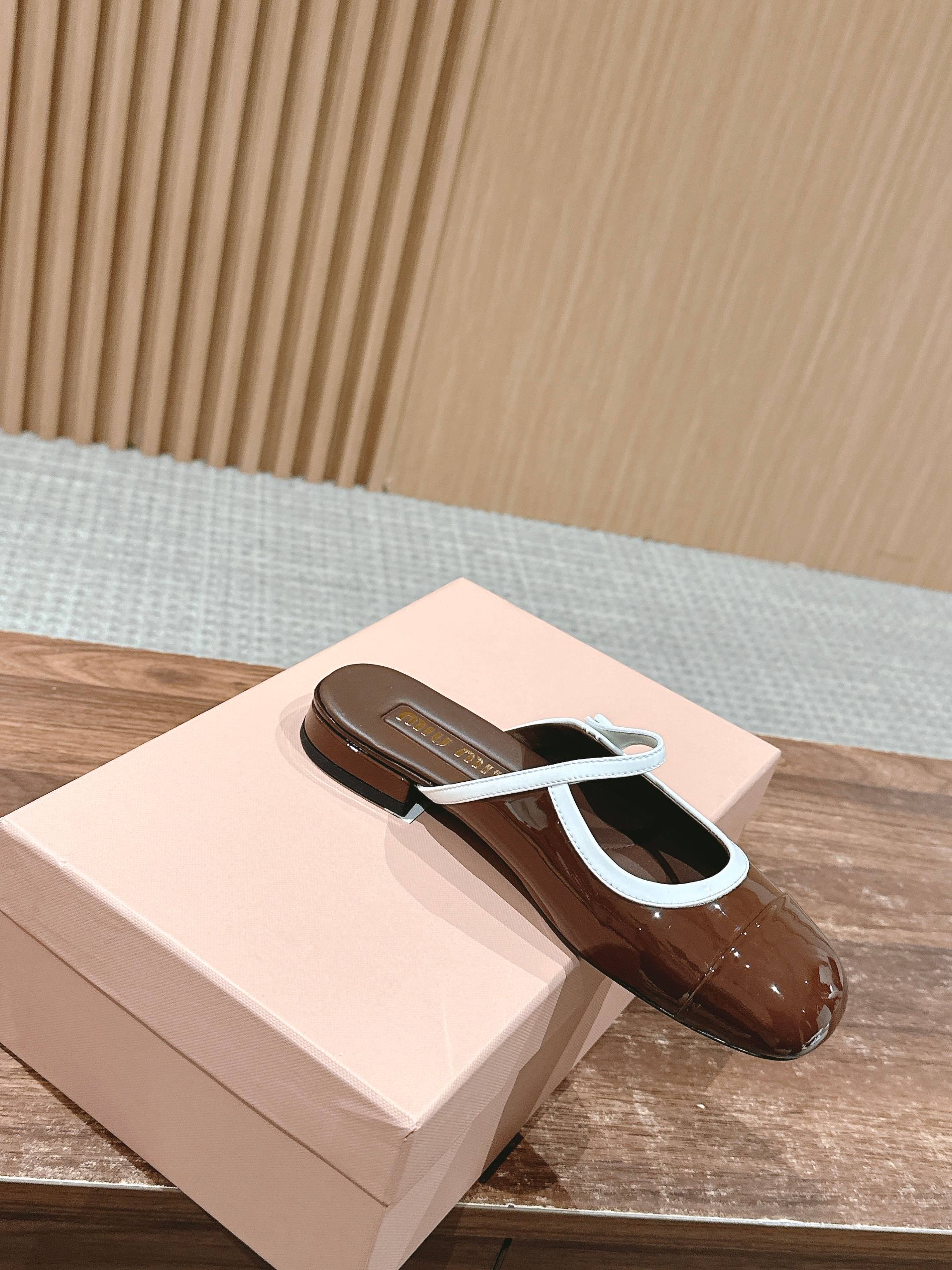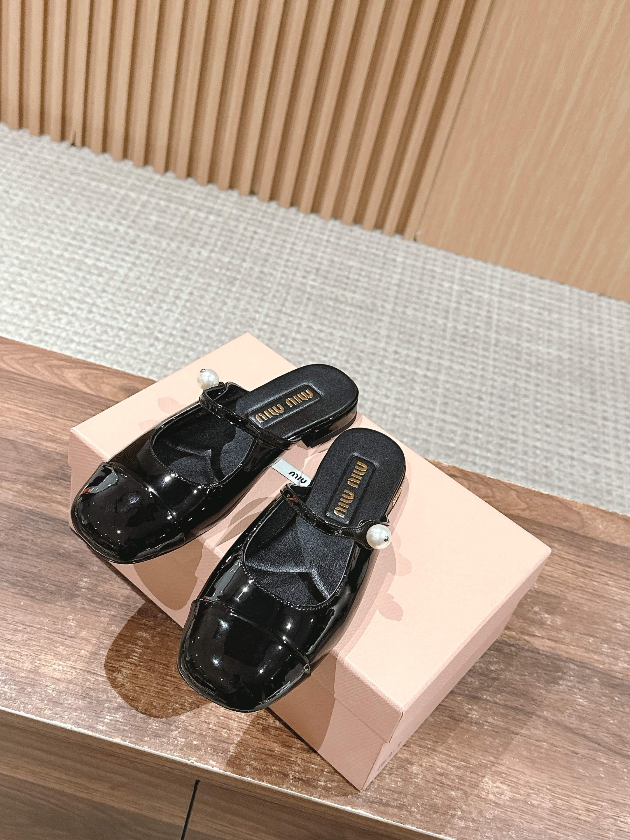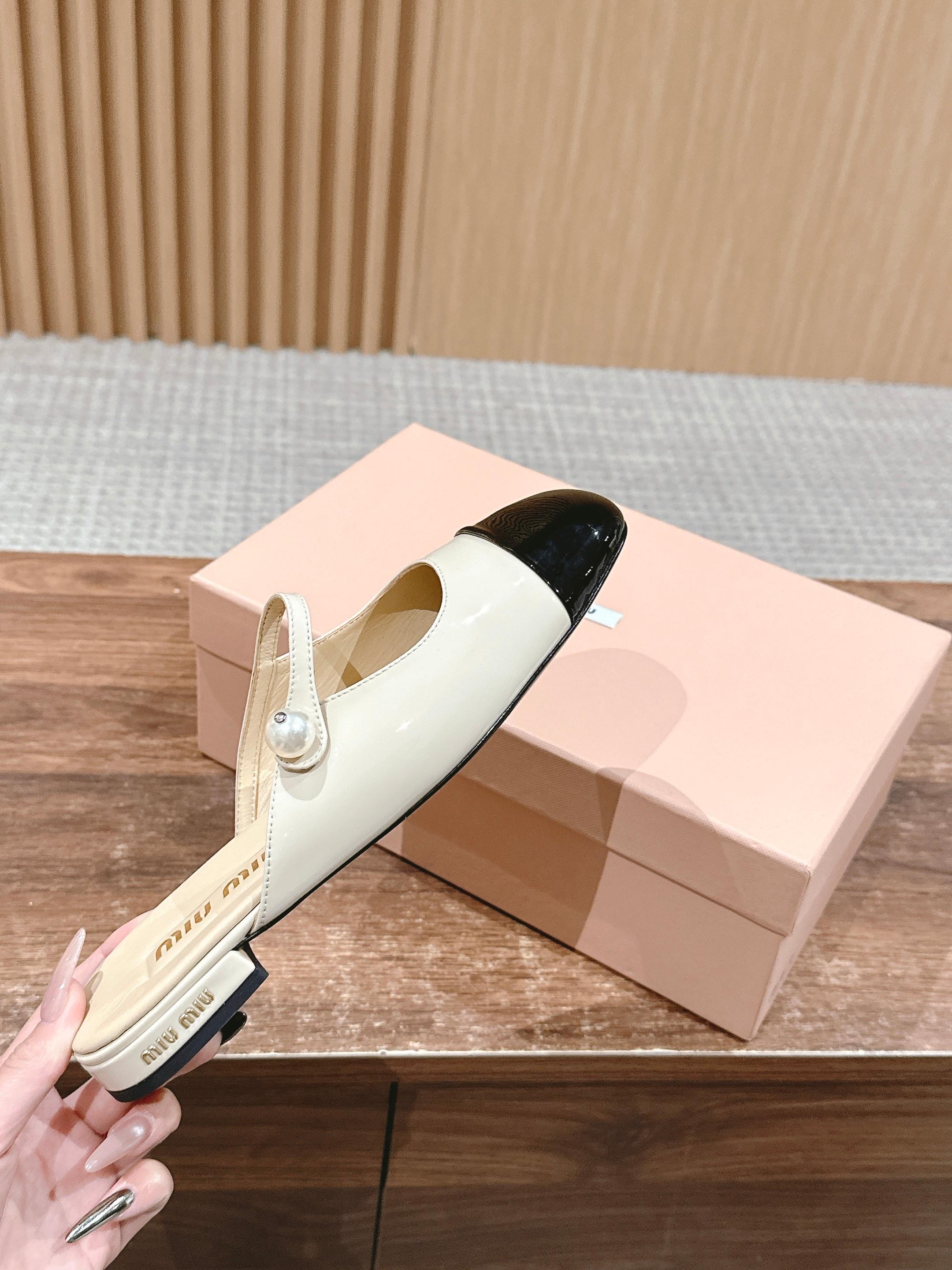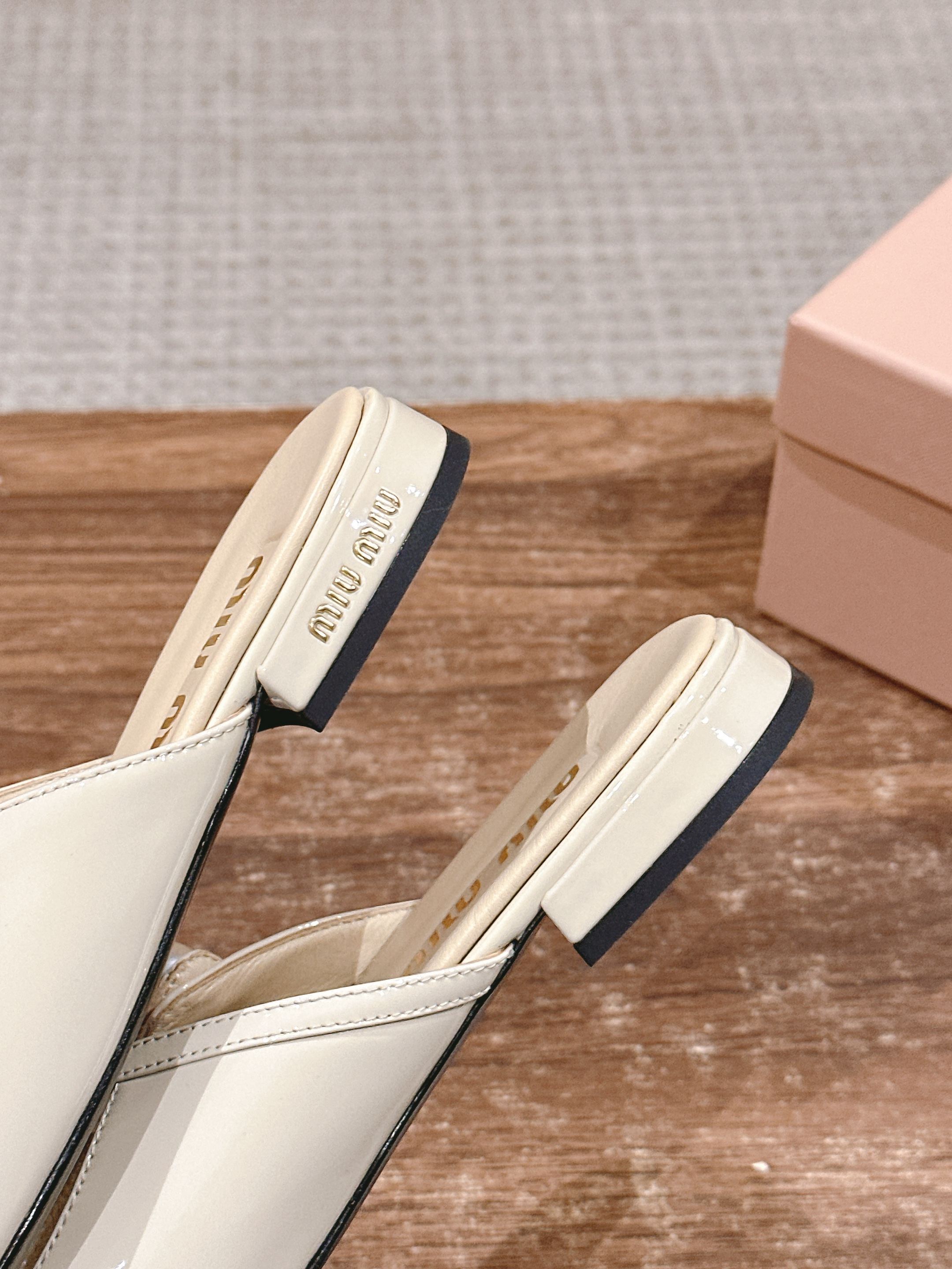 缪缪大王最新款,新款春日多巴胺配色,热情洋溢的搭配就很适适配春天!经典的玛丽珍小巧设计,包头半拖,漆皮的质感真的绝了!单扣带不用担心不跟脚哦!珍珠扣点缀增加小亮眼!!
