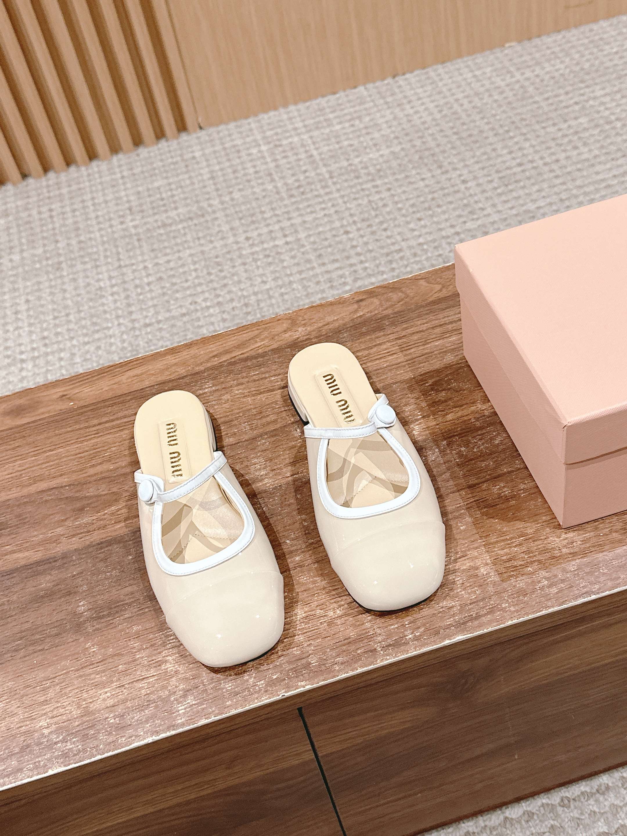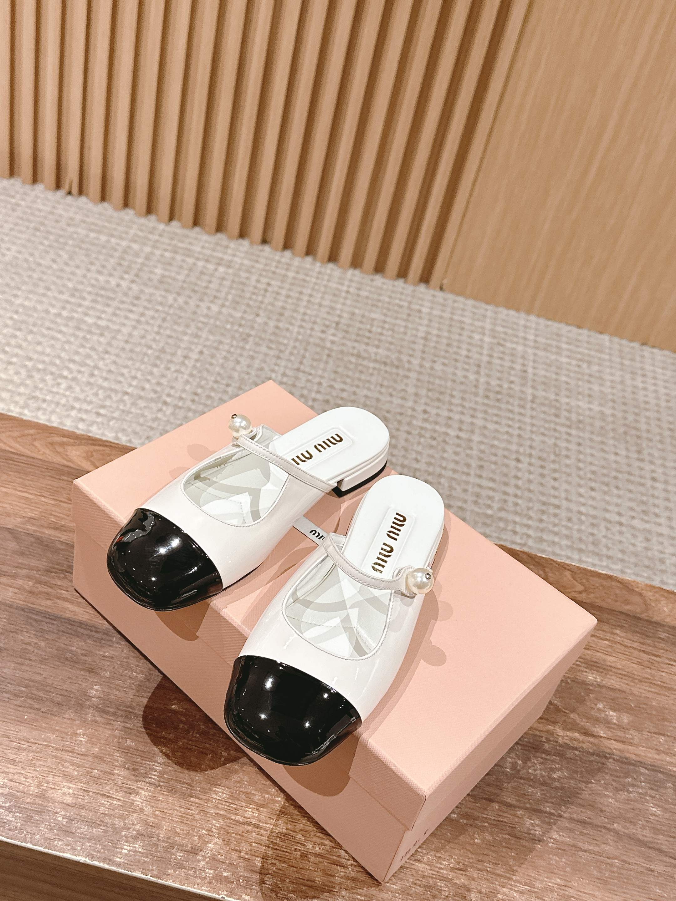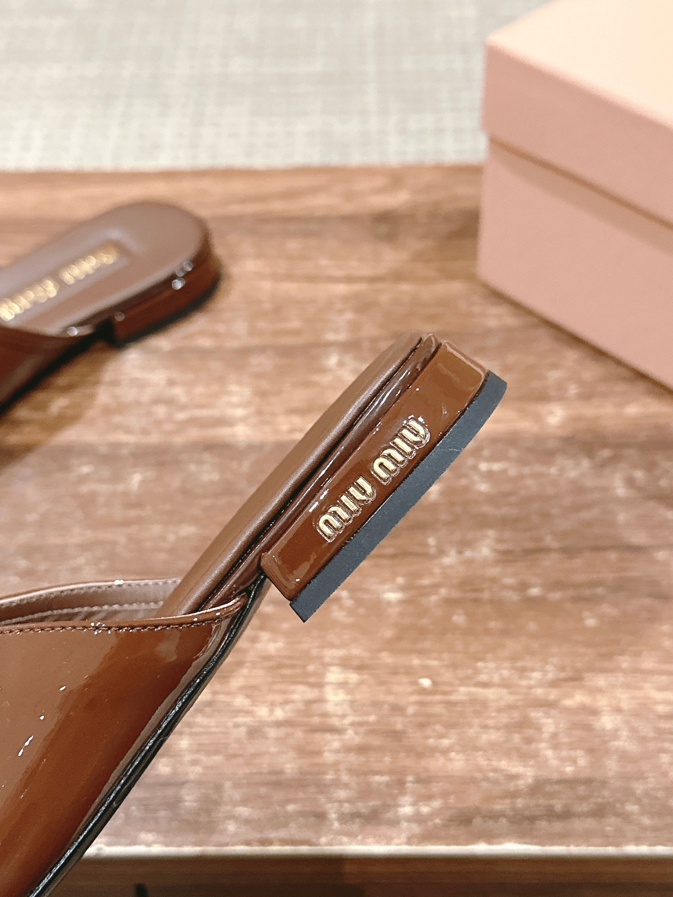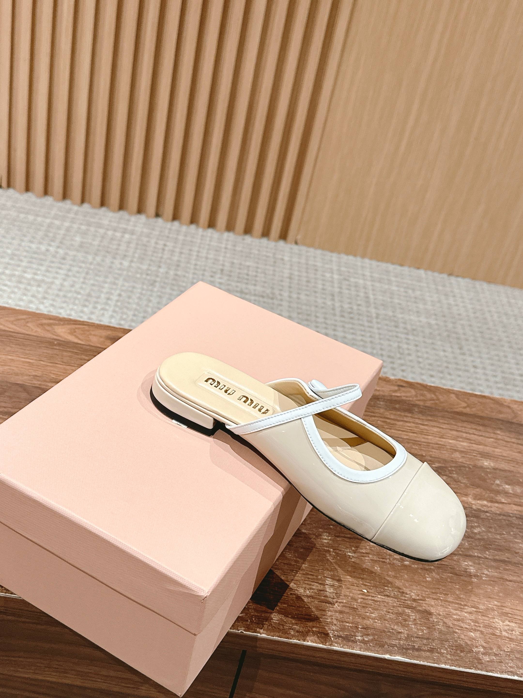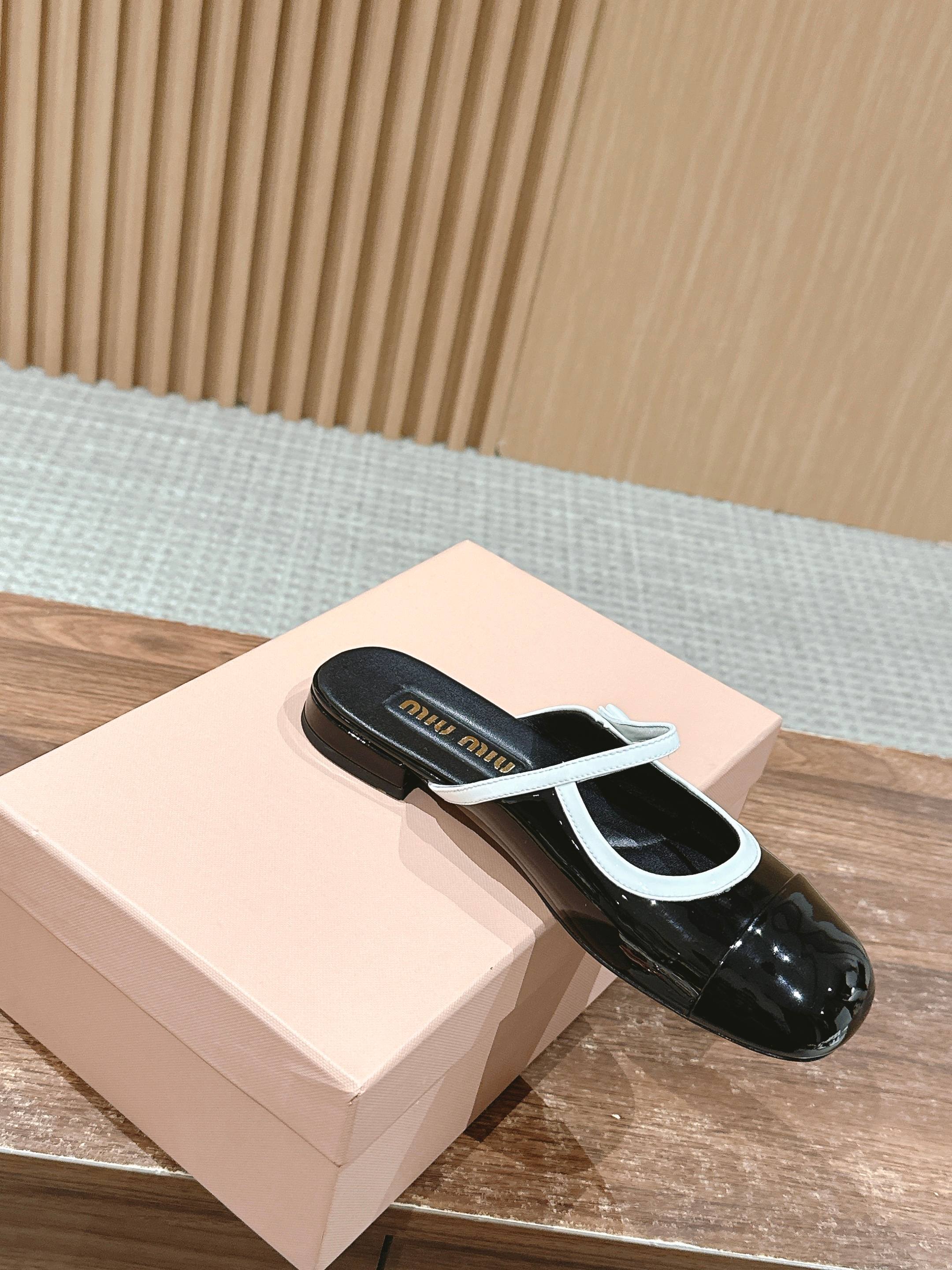 缪缪大王最新款,新款春日多巴胺配色,热情洋溢的搭配就很适适配春天!经典的玛丽珍小巧设计,包头半拖,漆皮的质感真的绝了!单扣带不用担心不跟脚哦!珍珠扣点缀增加小亮眼!!