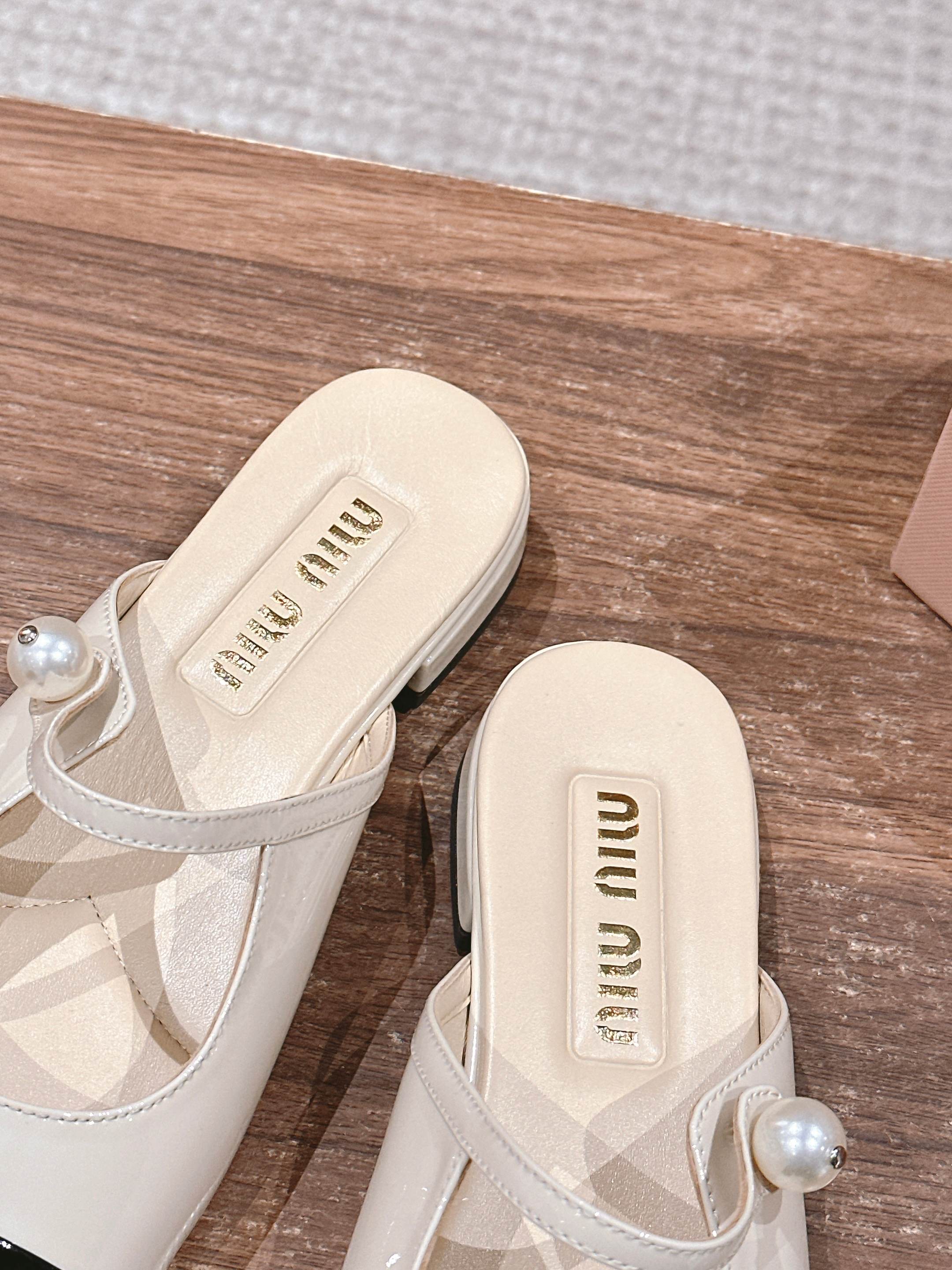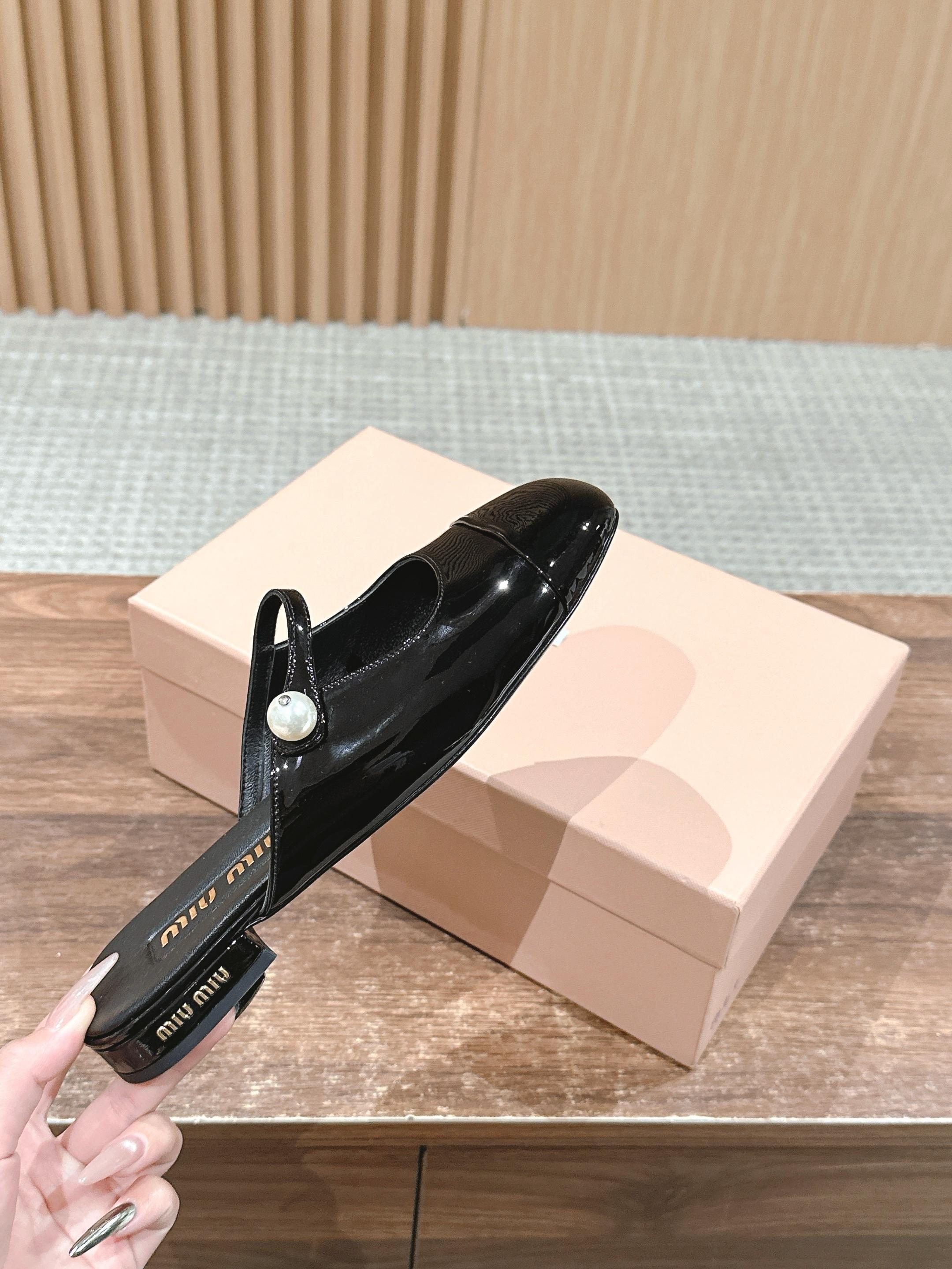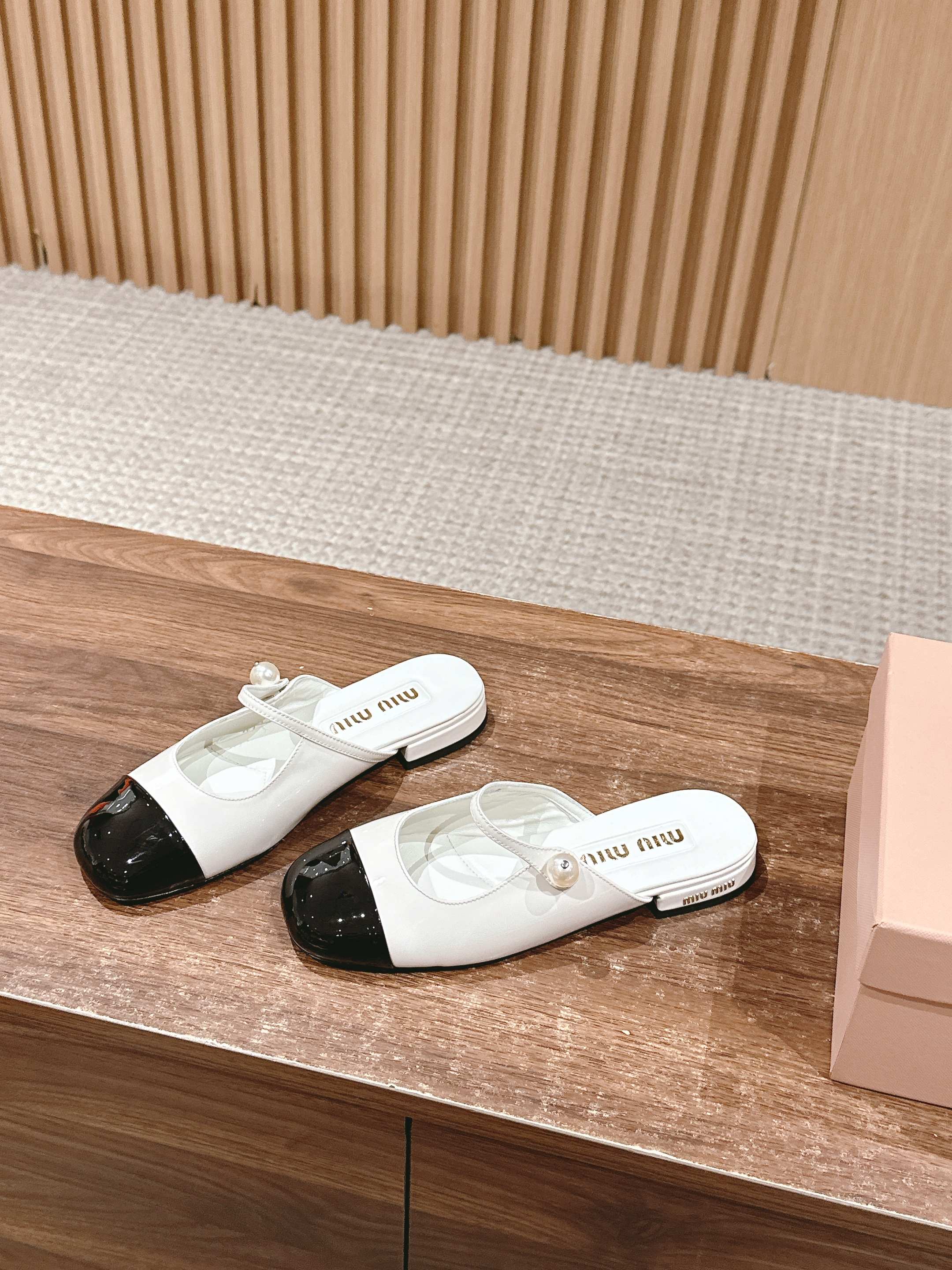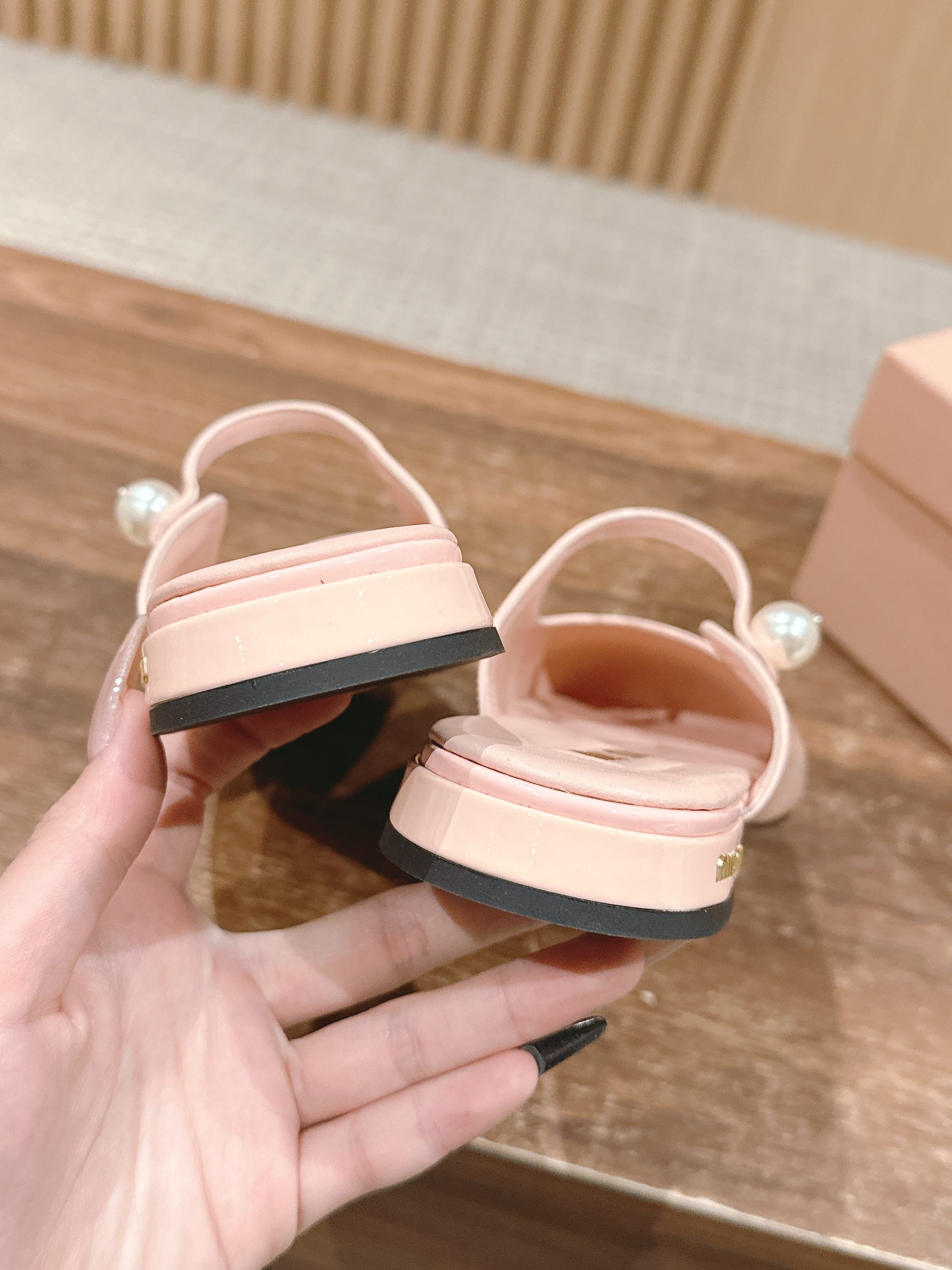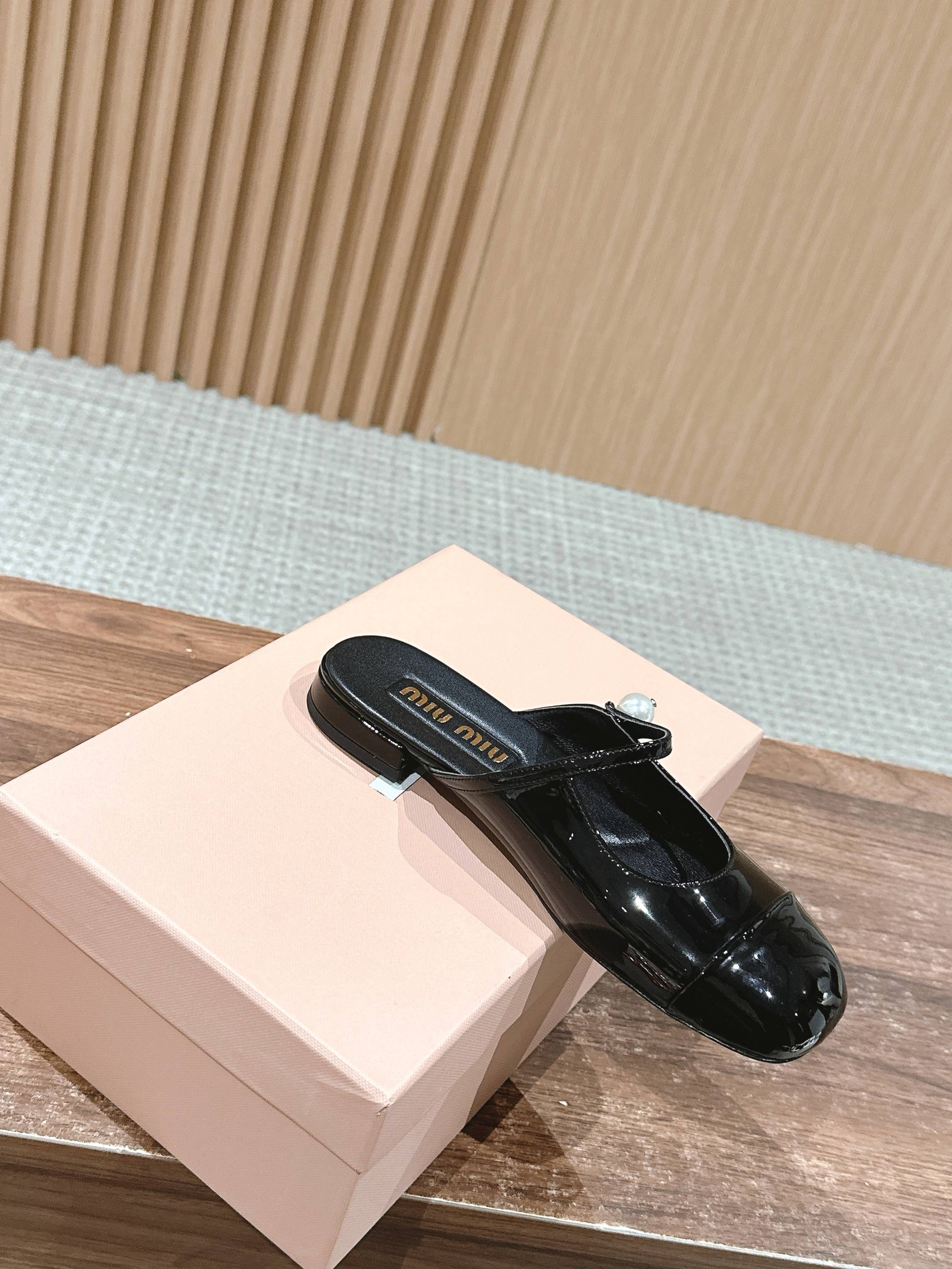 缪缪大王最新款,新款春日多巴胺配色,热情洋溢的搭配就很适适配春天!经典的玛丽珍小巧设计,包头半拖,漆皮的质感真的绝了!单扣带不用担心不跟脚哦!珍珠扣点缀增加小亮眼!!