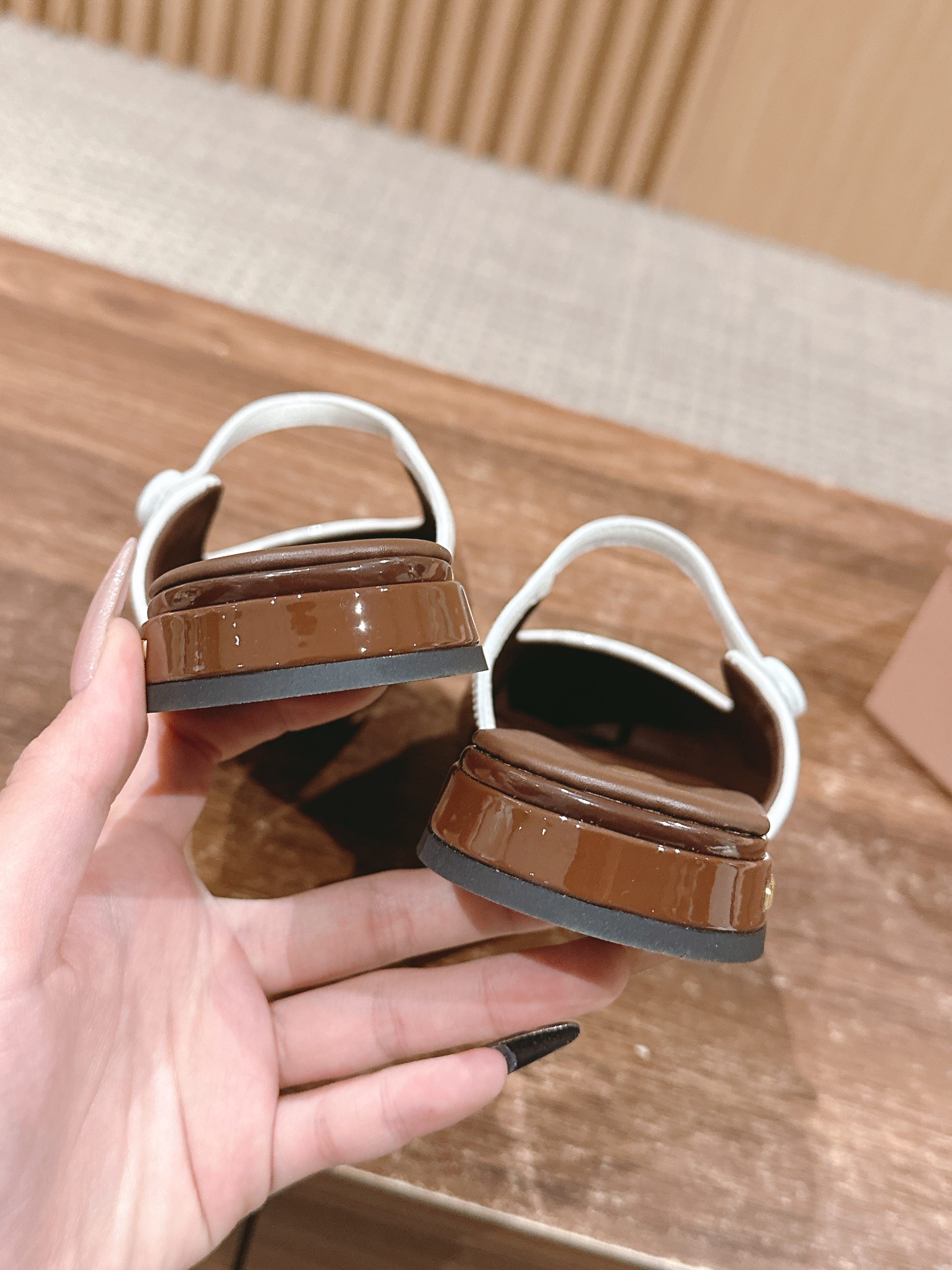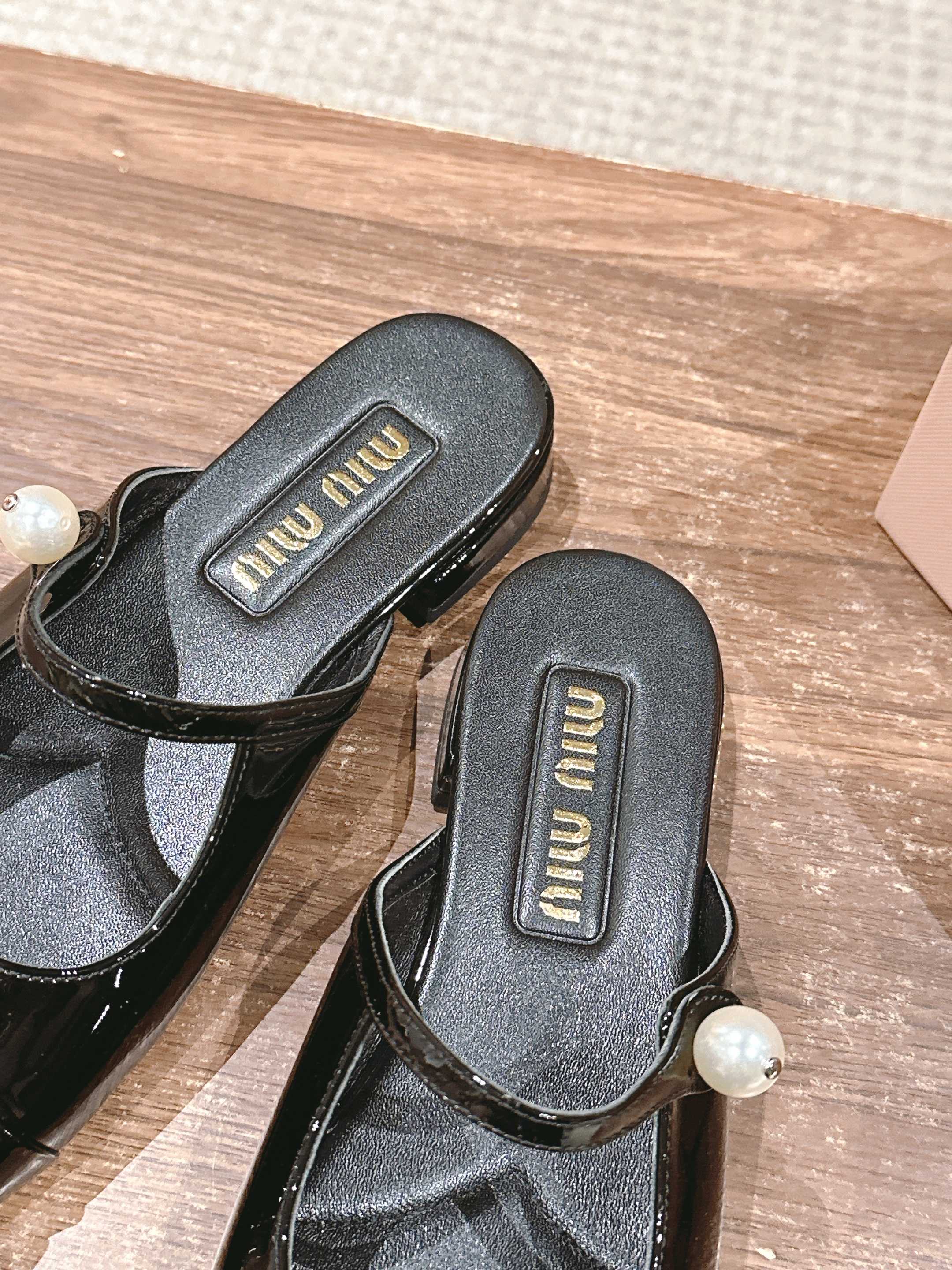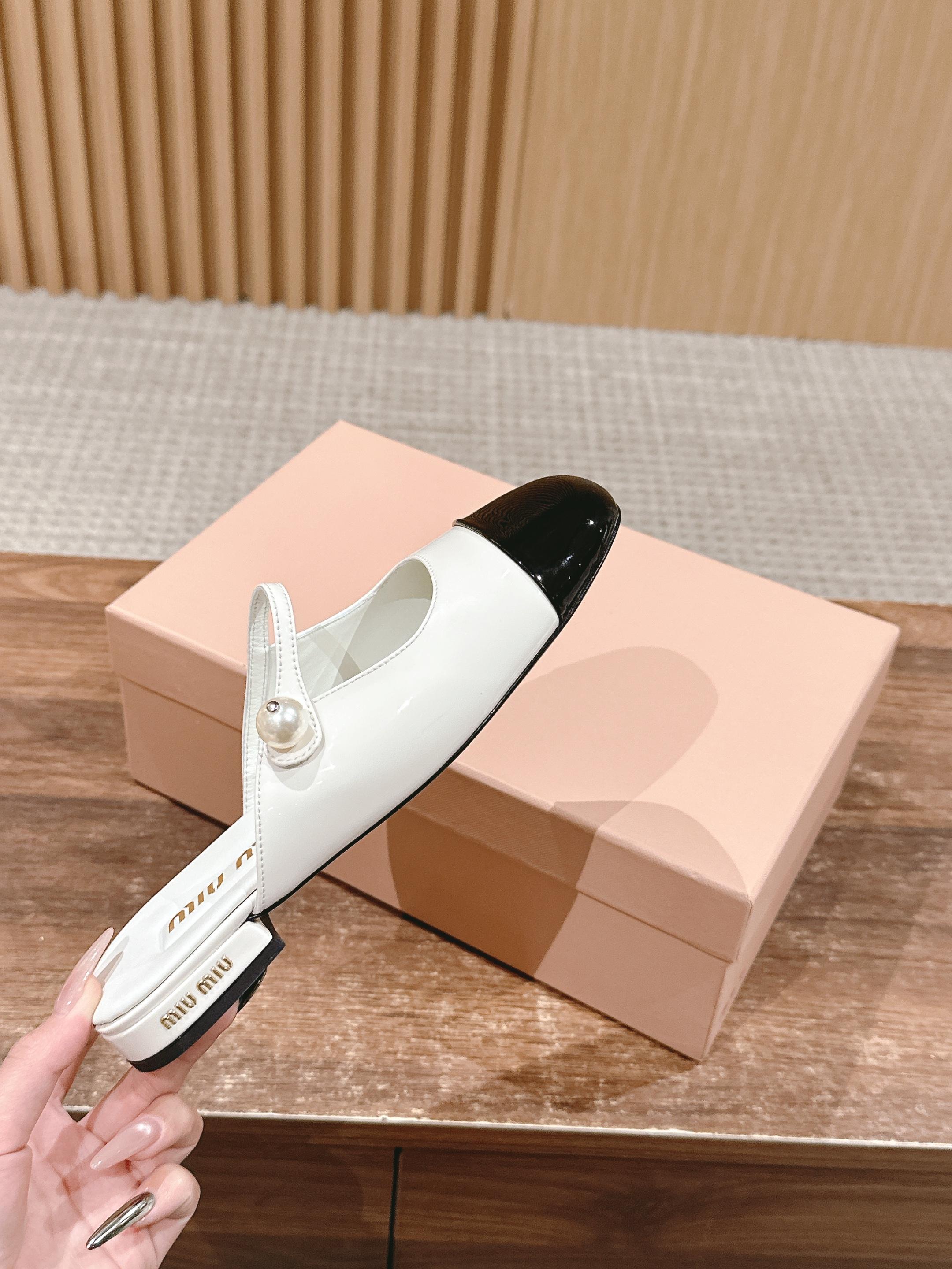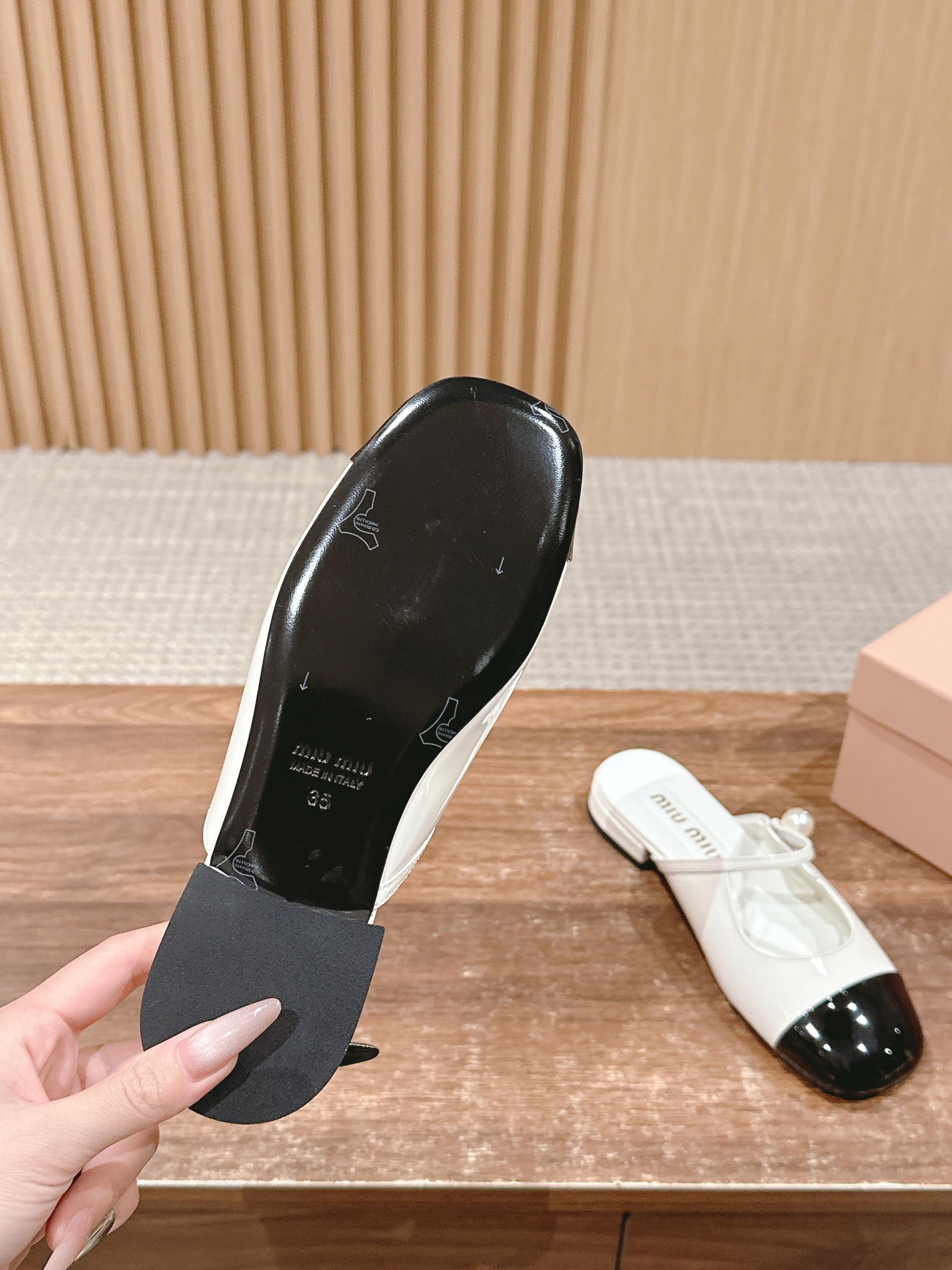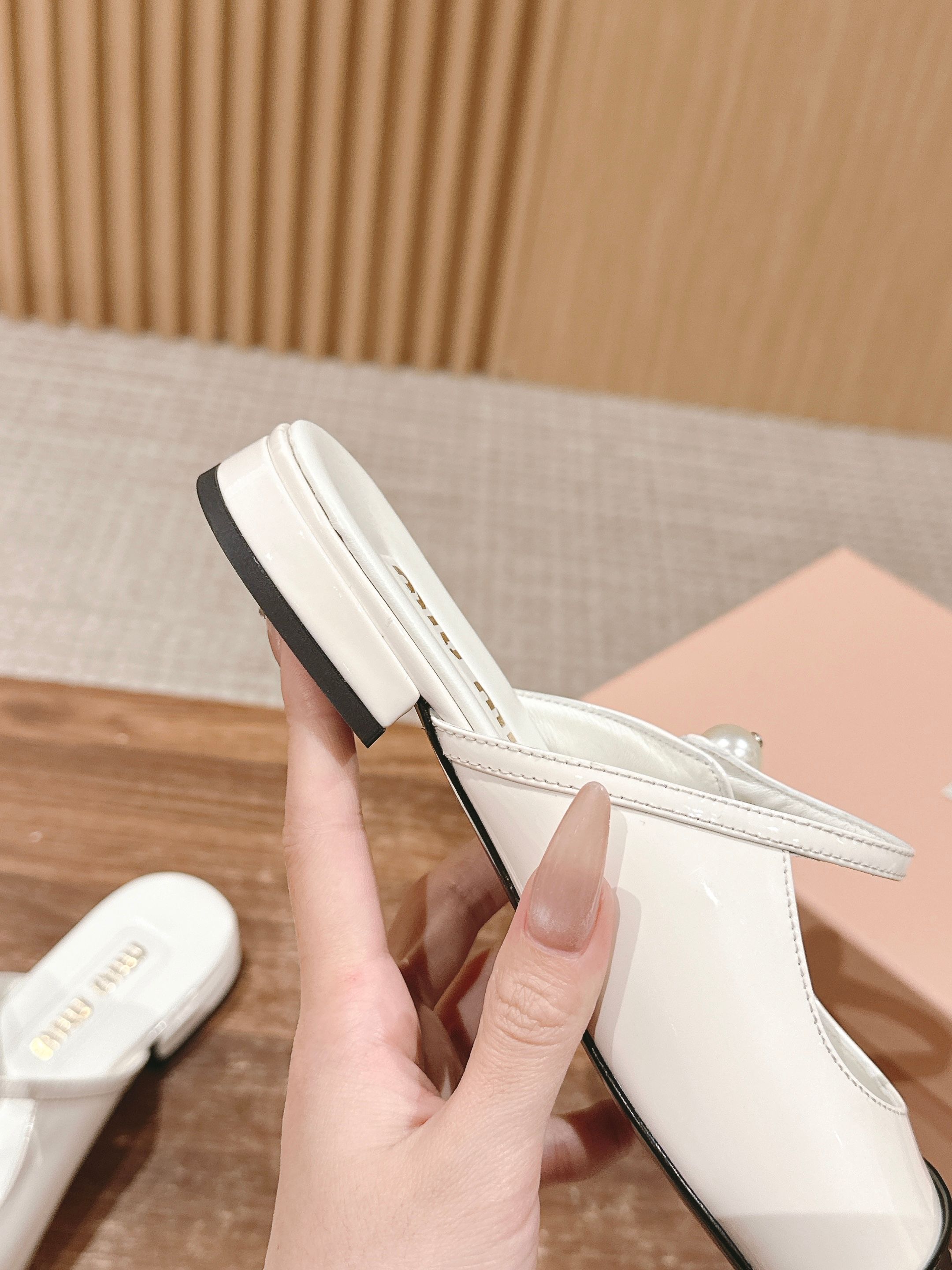 缪缪大王最新款,新款春日多巴胺配色,热情洋溢的搭配就很适适配春天!经典的玛丽珍小巧设计,包头半拖,漆皮的质感真的绝了!单扣带不用担心不跟脚哦!珍珠扣点缀增加小亮眼!!