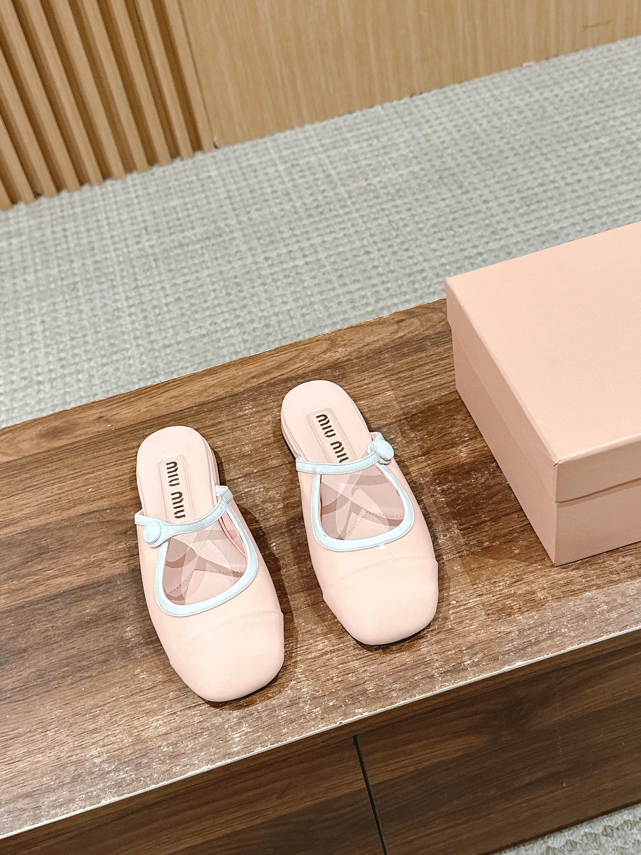 缪缪早春系列 玛丽珍包头半拖多巴胺搭配