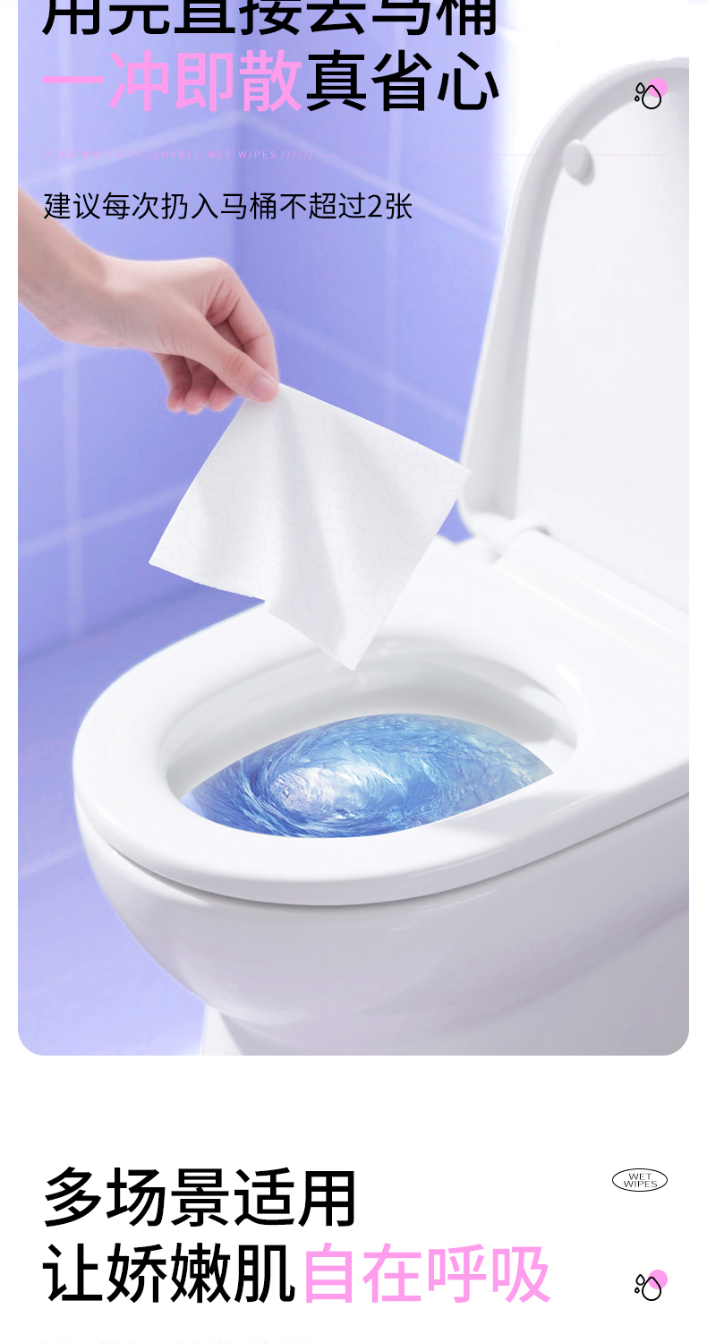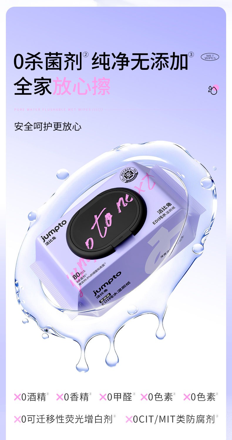 洁比兔纯水湿厕纸家庭装大容量好抽取全家可用一擦即干可冲散湿厕纸