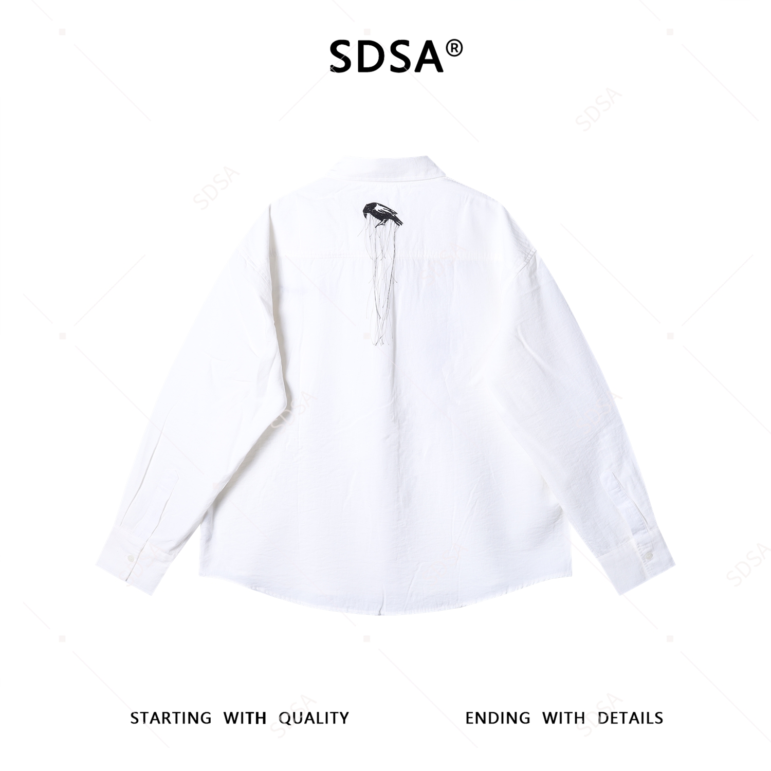 SDSA男士秋冬新款痞帅男装美式撞色刺绣字母流苏长袖衬衫百搭宽松