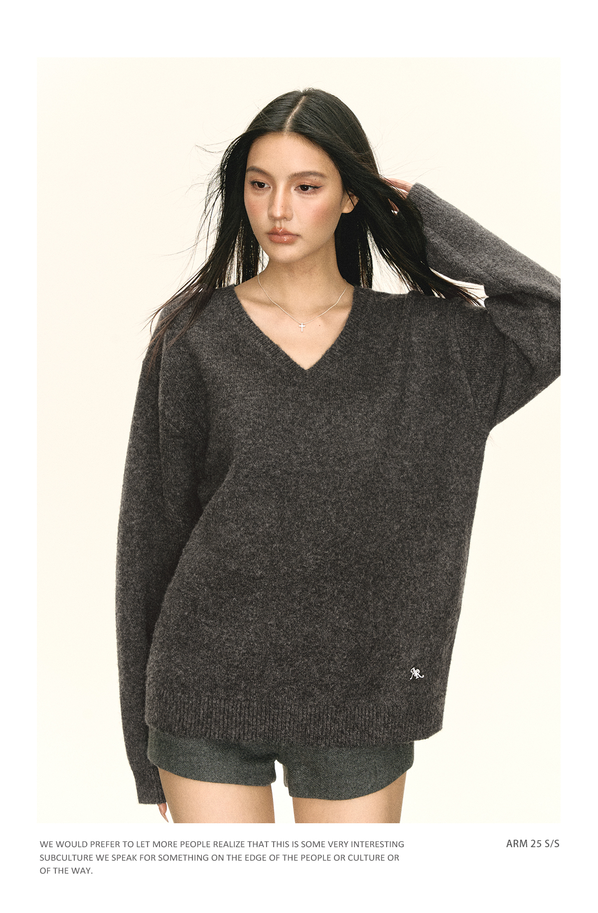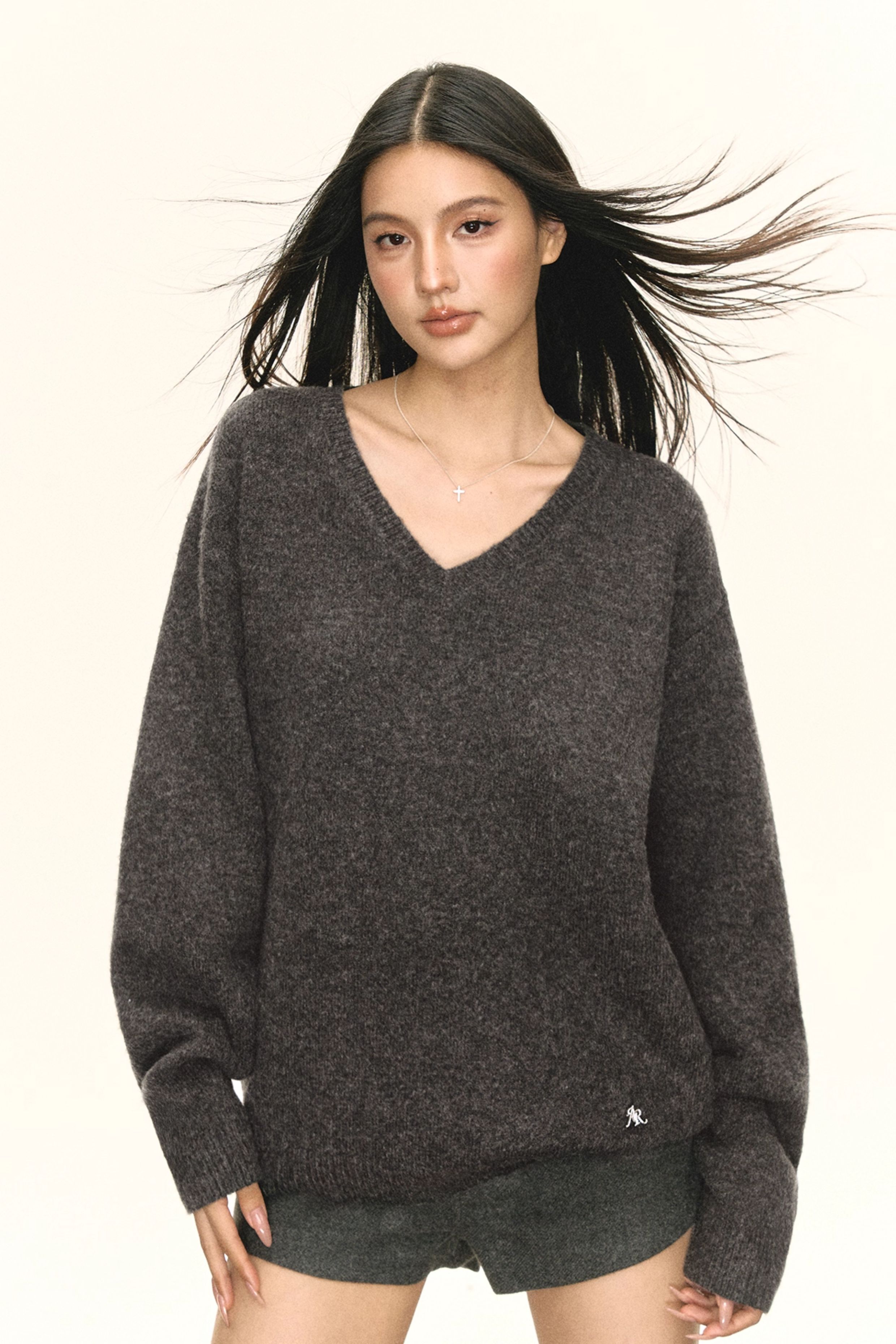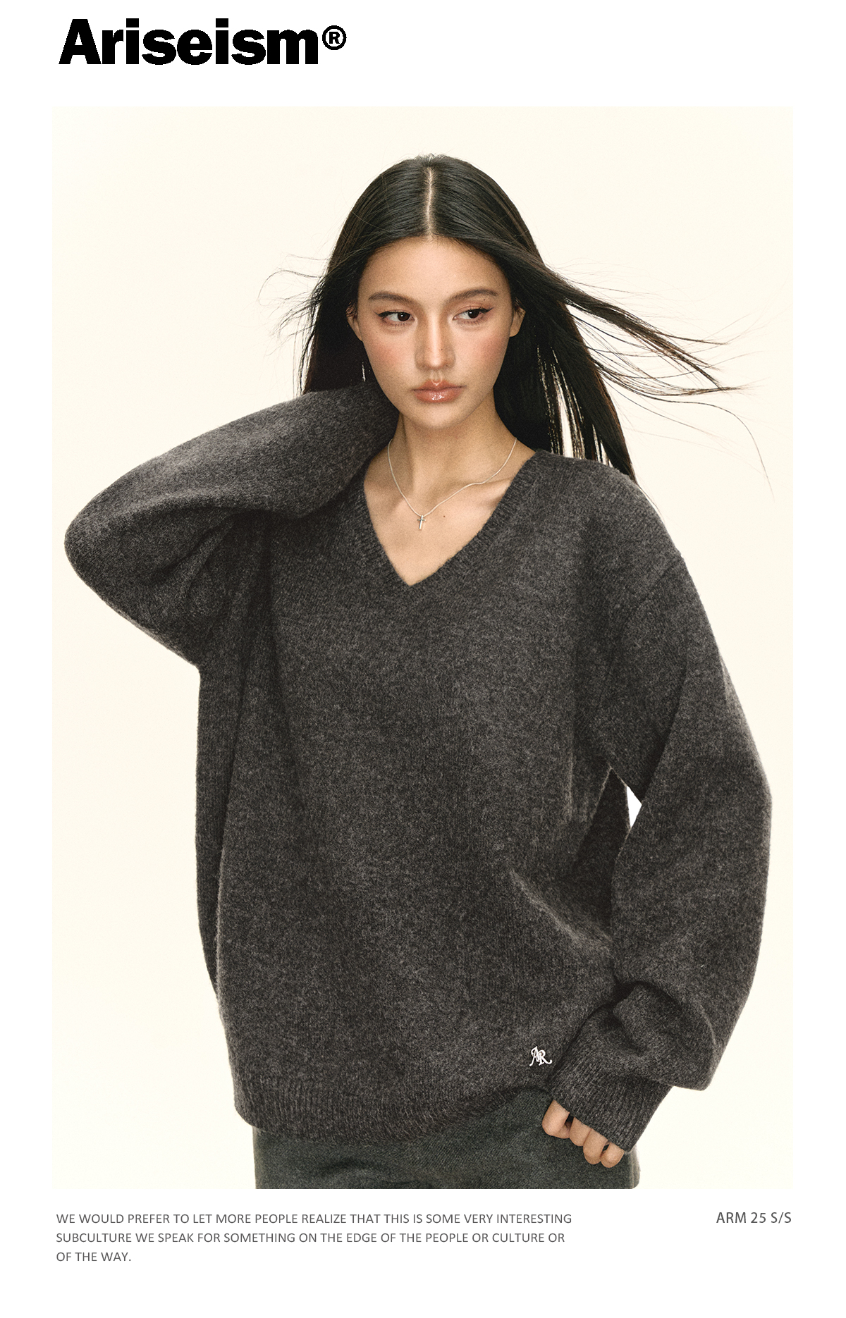 Ariseism 美式复古设计感V领宽松毛衣女秋季新款上衣