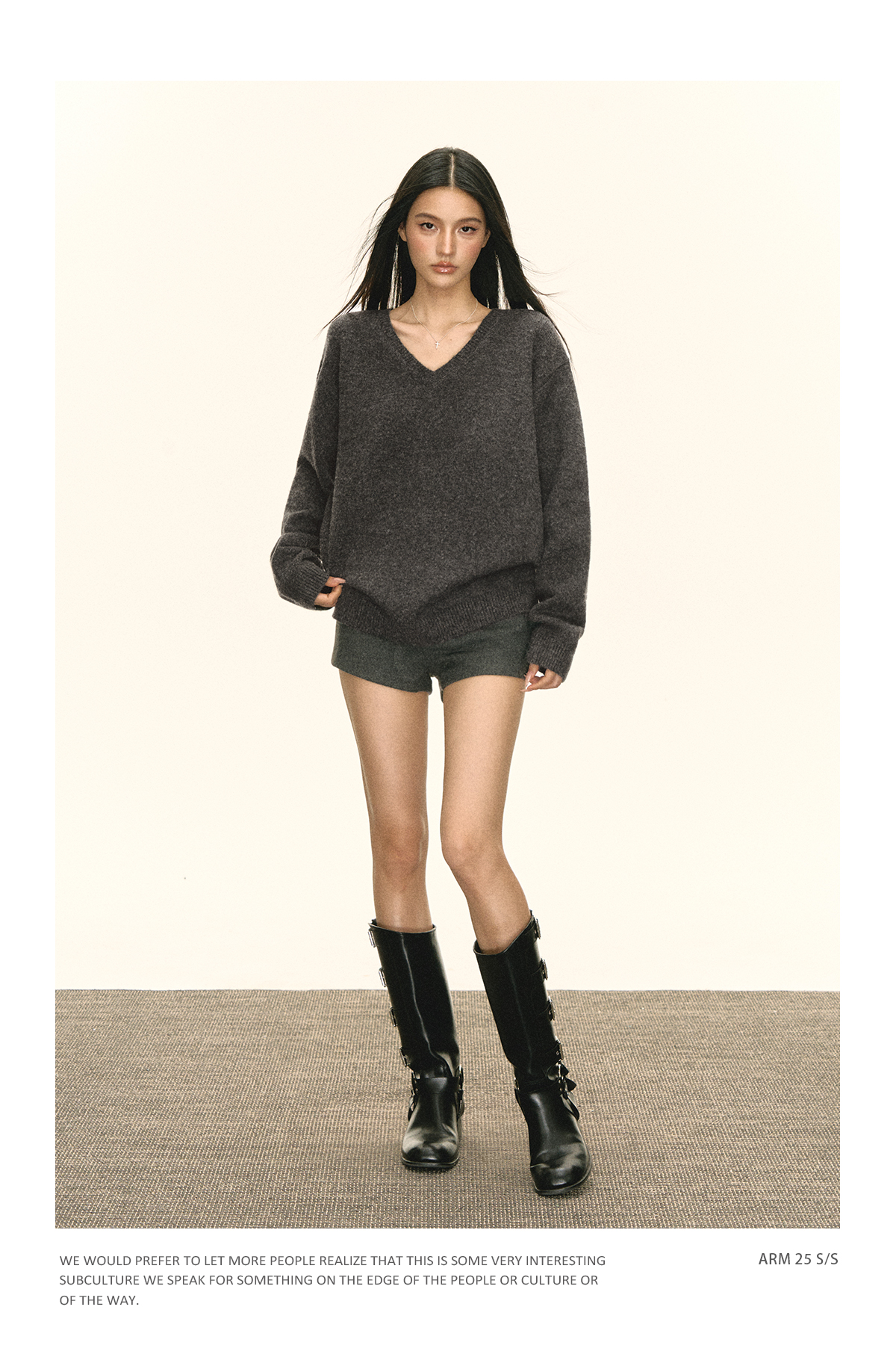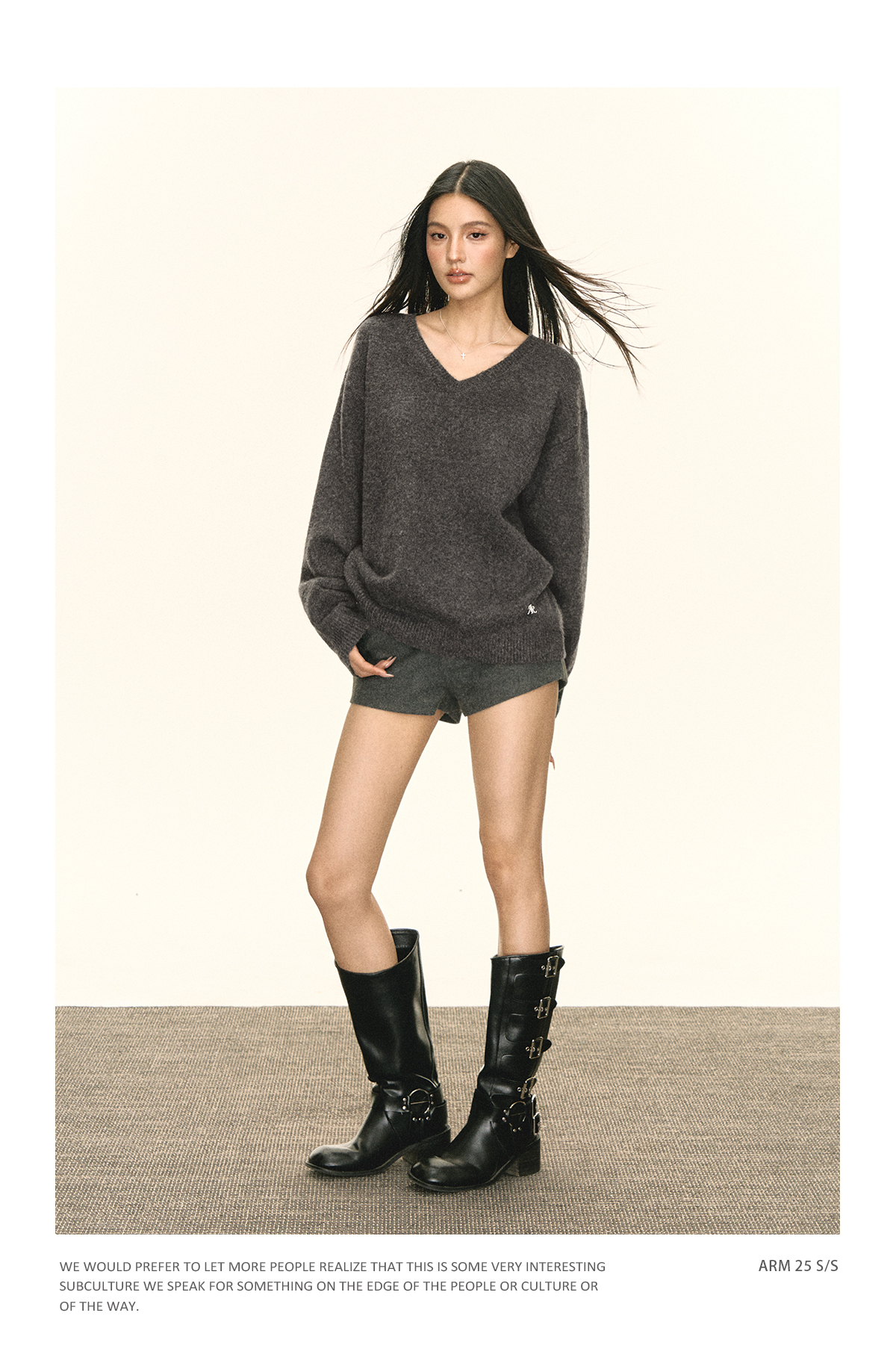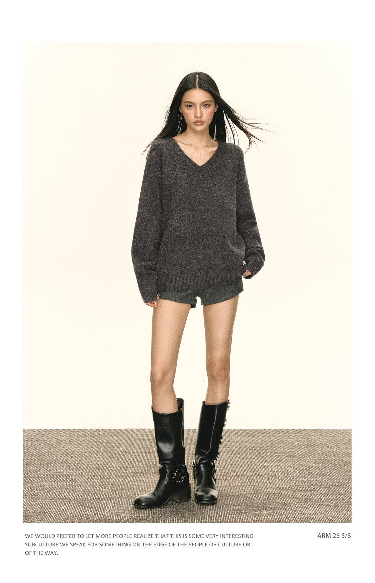 Ariseism 美式复古设计感V领宽松毛衣女秋季新款上衣