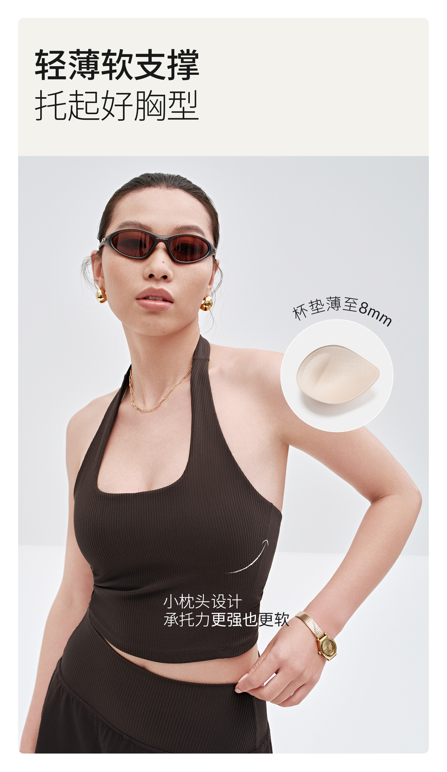 运动背心【YOTTOY】运动背心女方领挂脖美背带胸垫健身