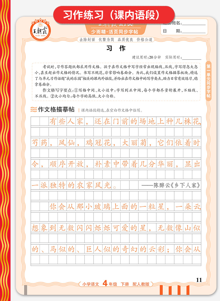 2026春下王朝霞活页同步字帖人教版1-6年级练小学生语文活页字帖同步课堂暑假每日一练