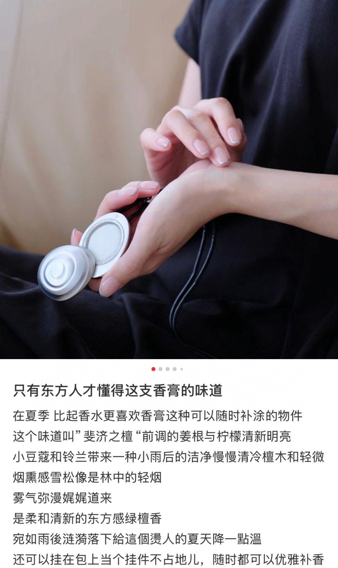 *不可单独作为香薰悬挂在车内、衣柜内,此产品为香膏,需涂抹使用没有单独扩香功能