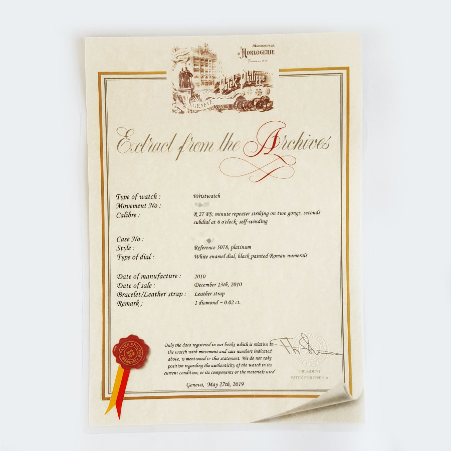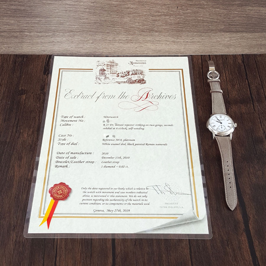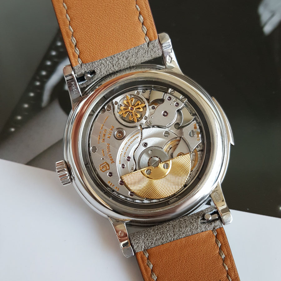 特别说明 | 日常生活防水;此款三问搭载的Cal.R 27 PS机芯,作为近十年来百达翡丽的当家三问机芯,以其极低的背景噪音、清澈悠扬的音色,以及罕见的自动上弦功能,脱颖而出;购买于2010.12.13 |