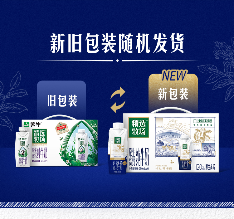 【精选牧场敕勒川限定】蒙牛精选牧场敕勒川限定全脂纯牛奶梦幻盖250ml×10包