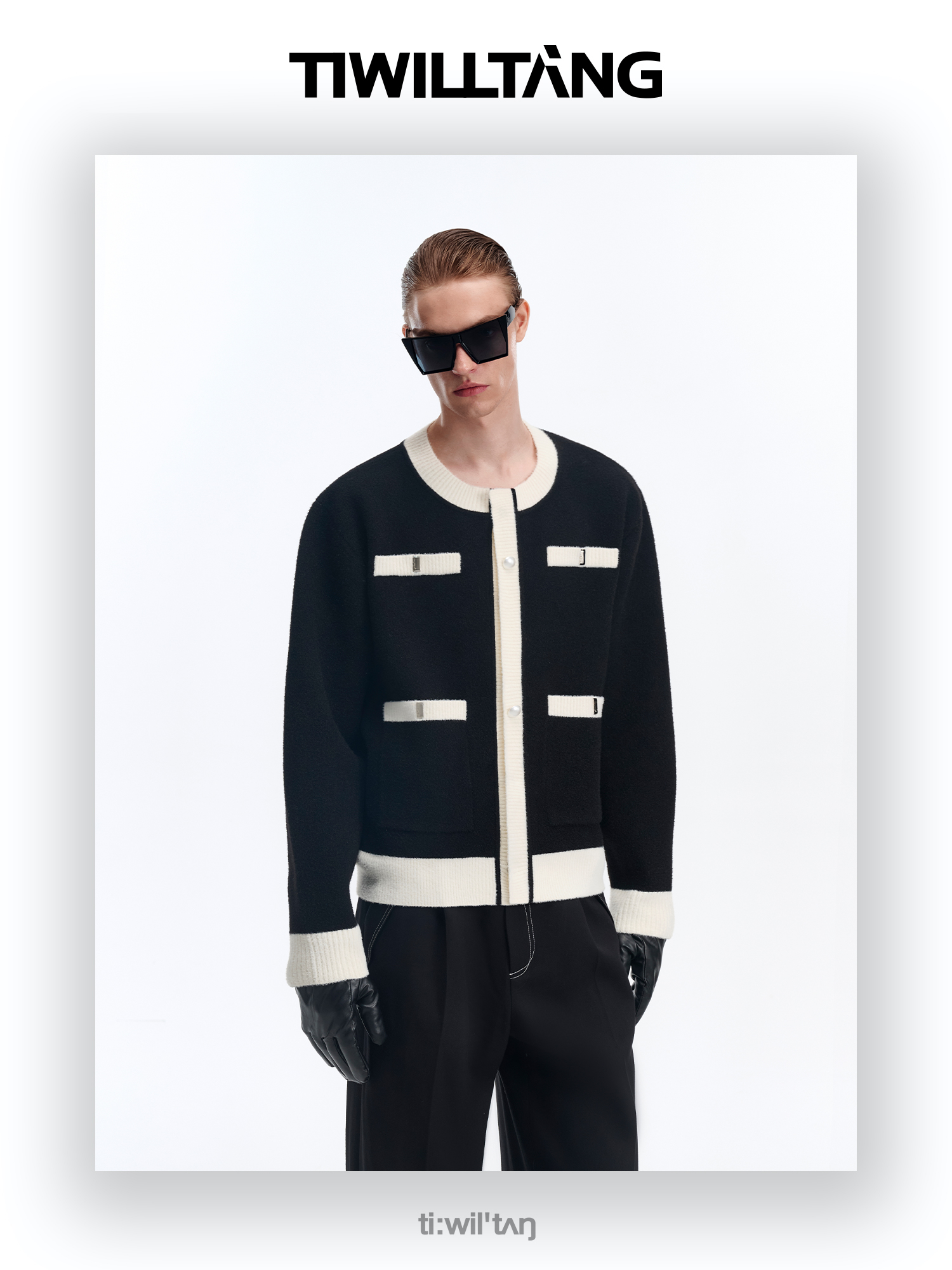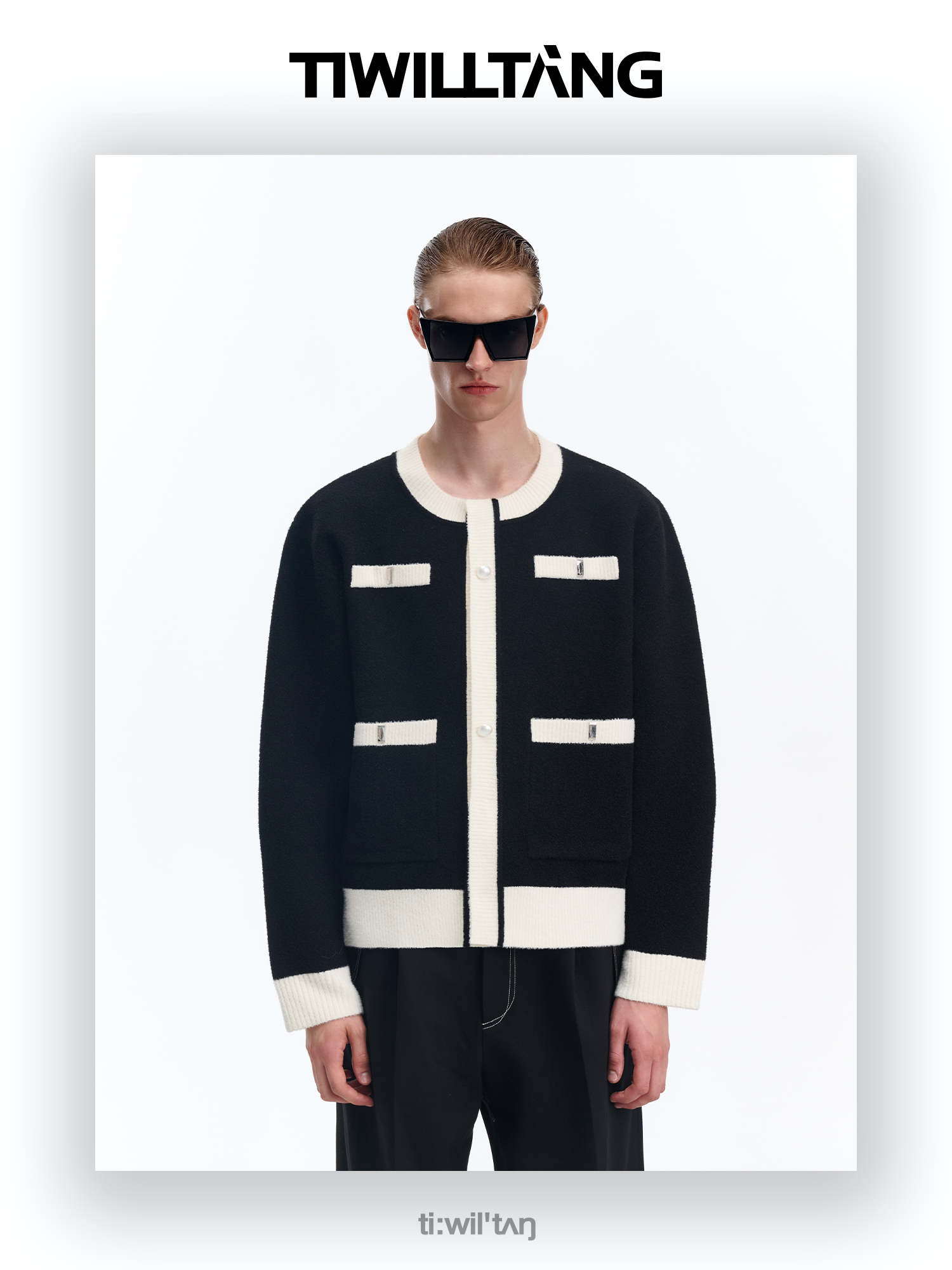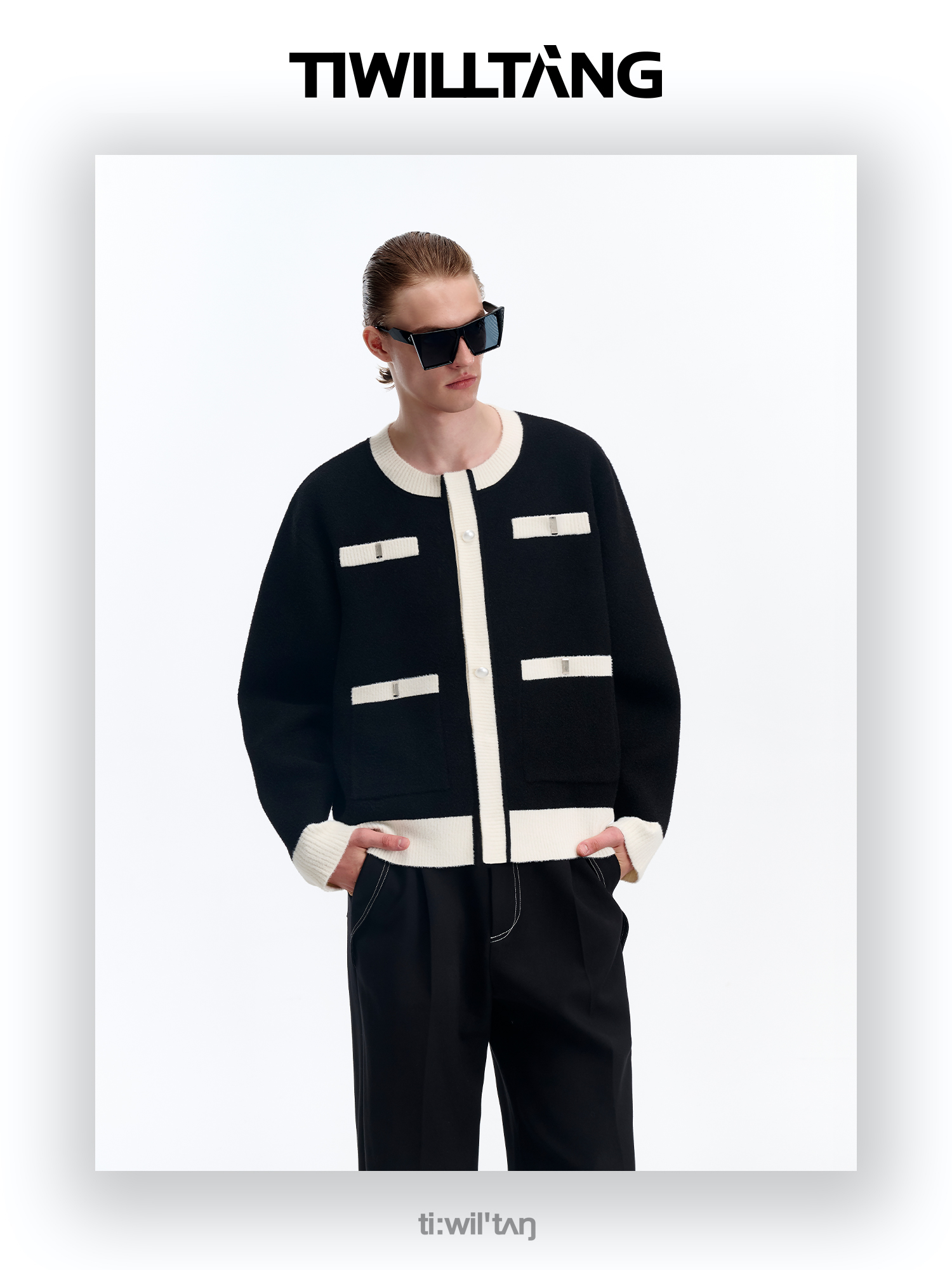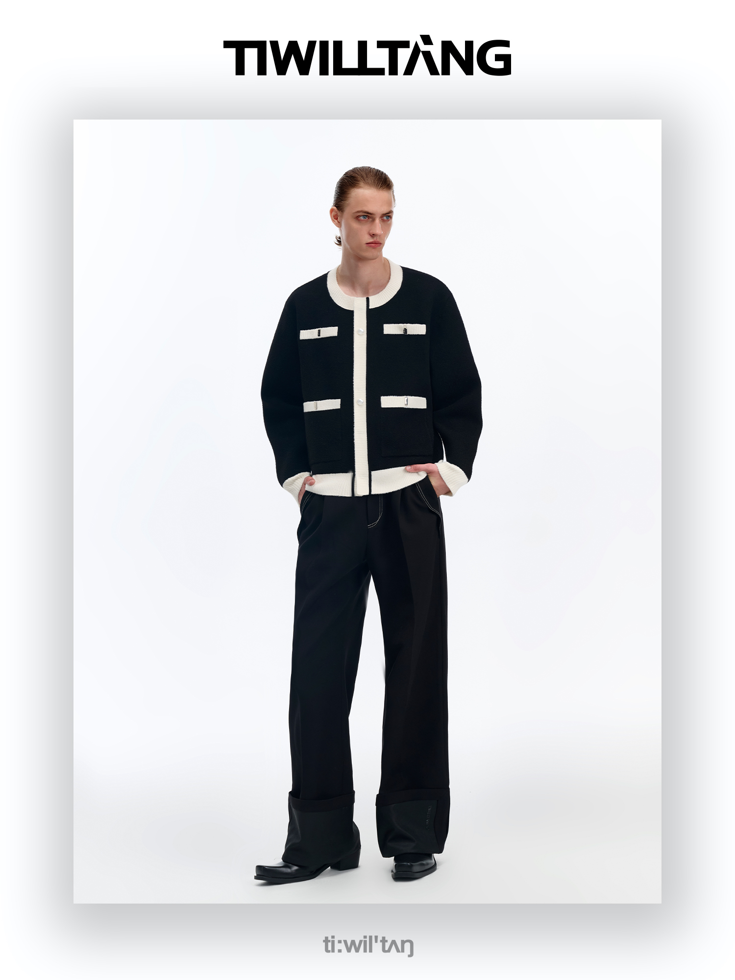 启世录TIWILLTANG“虚室生白”现代简约撞色拼接直筒西裤