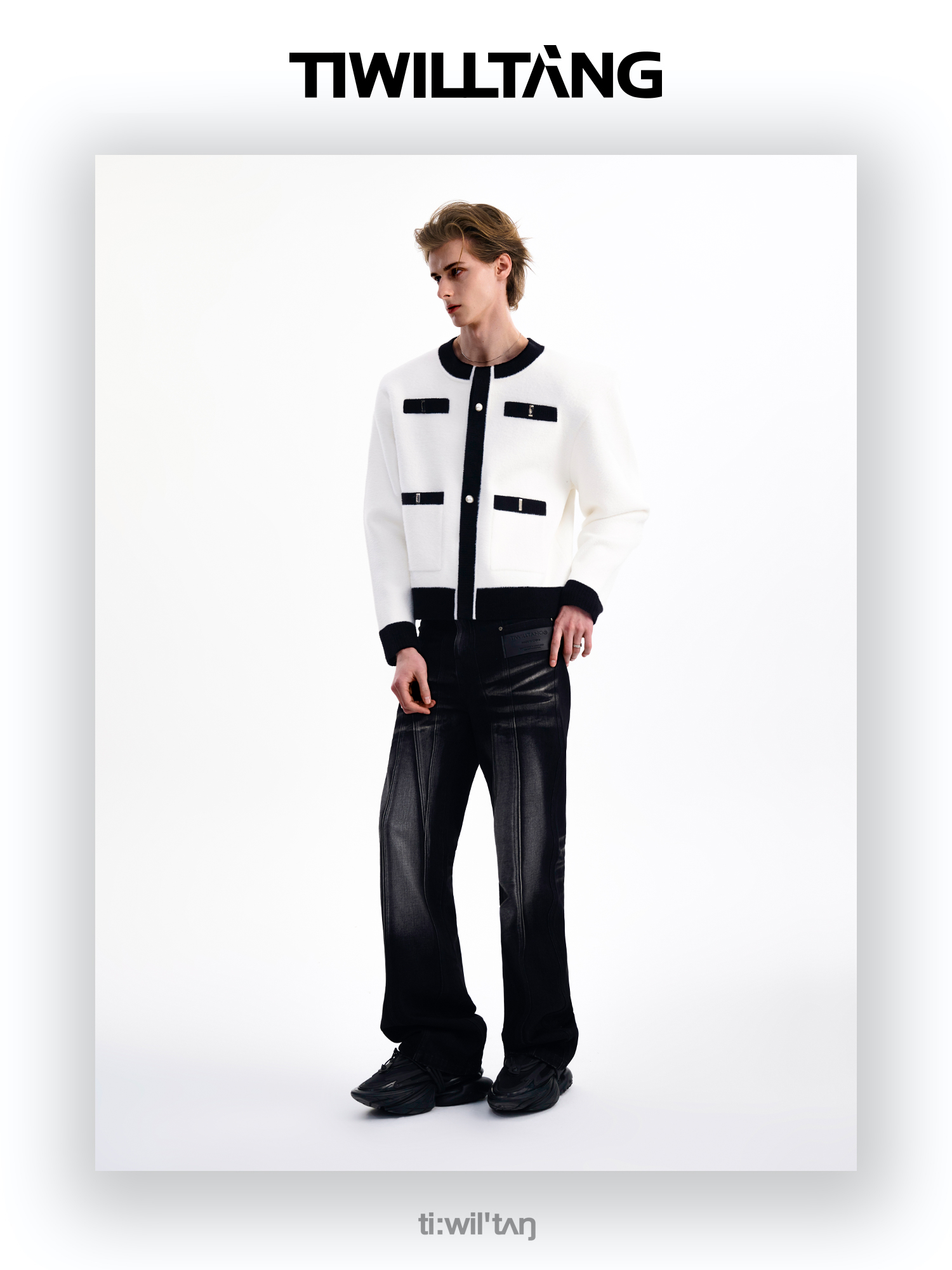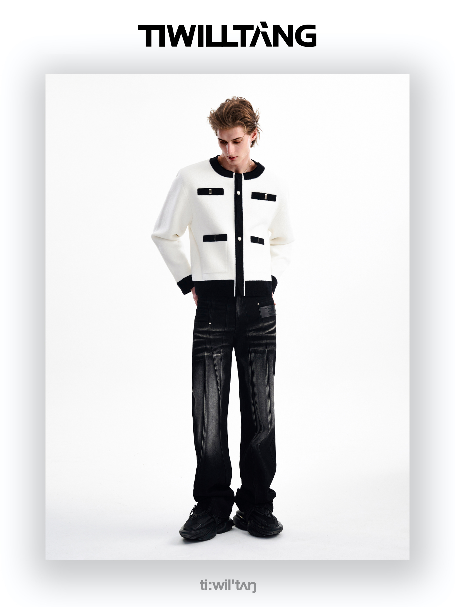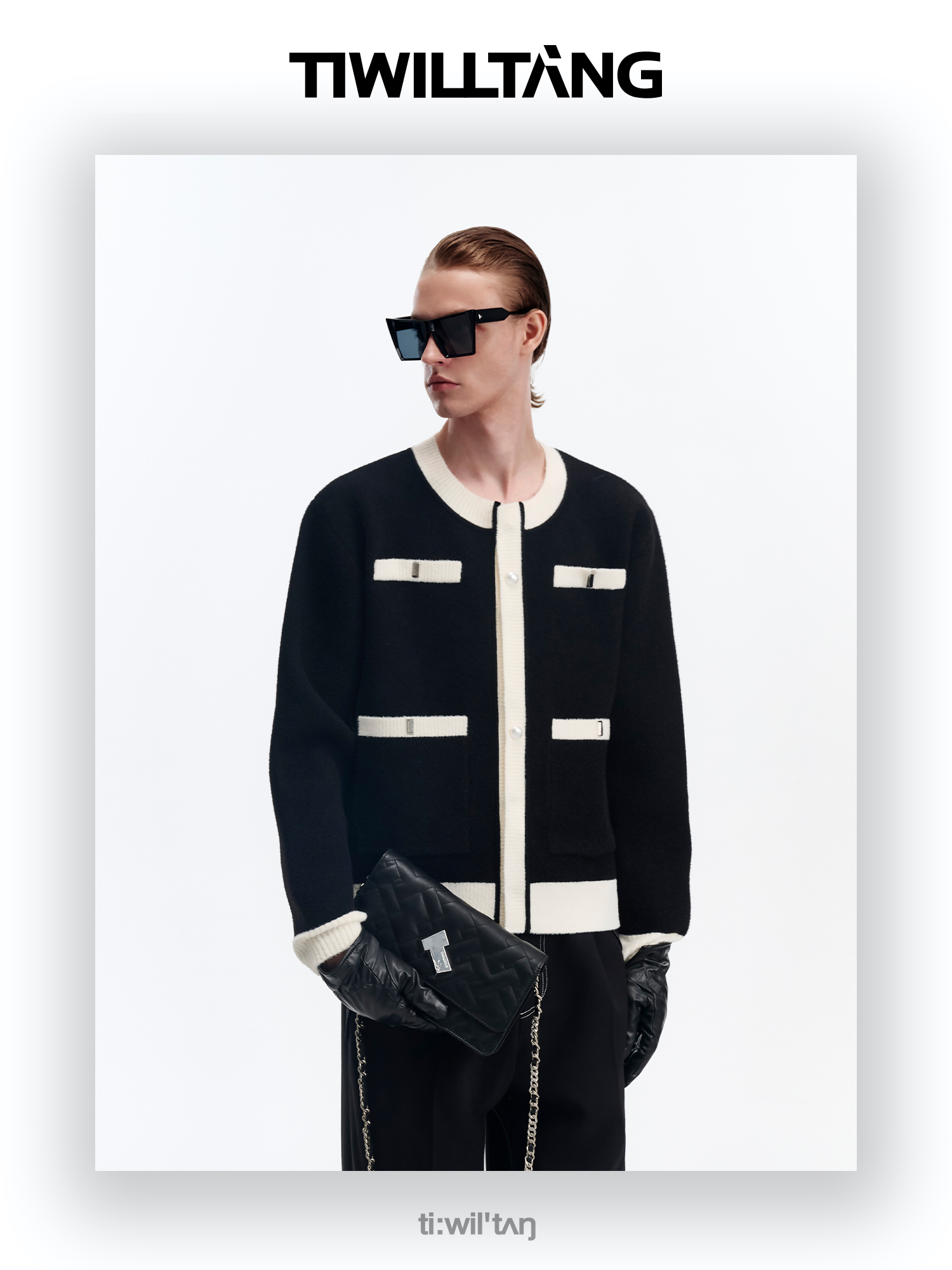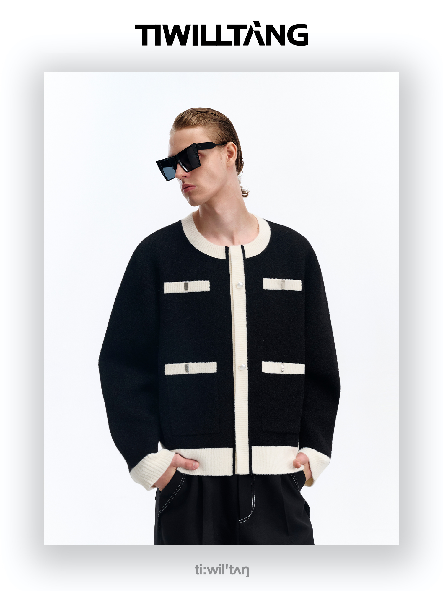 启世录TIWILLTANG“虚室生白”现代简约撞色拼接直筒西裤