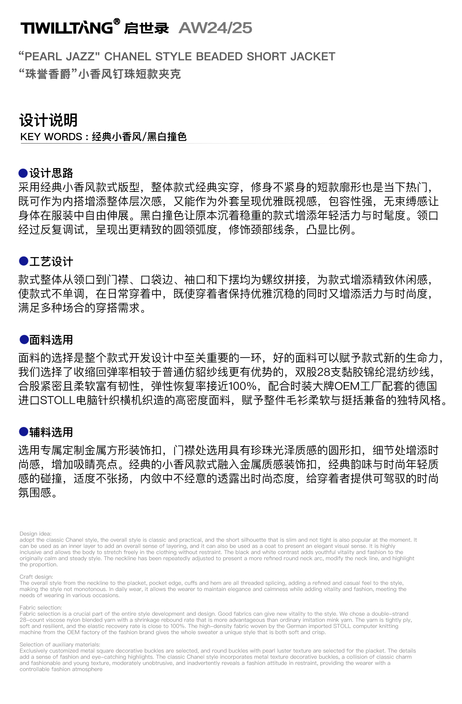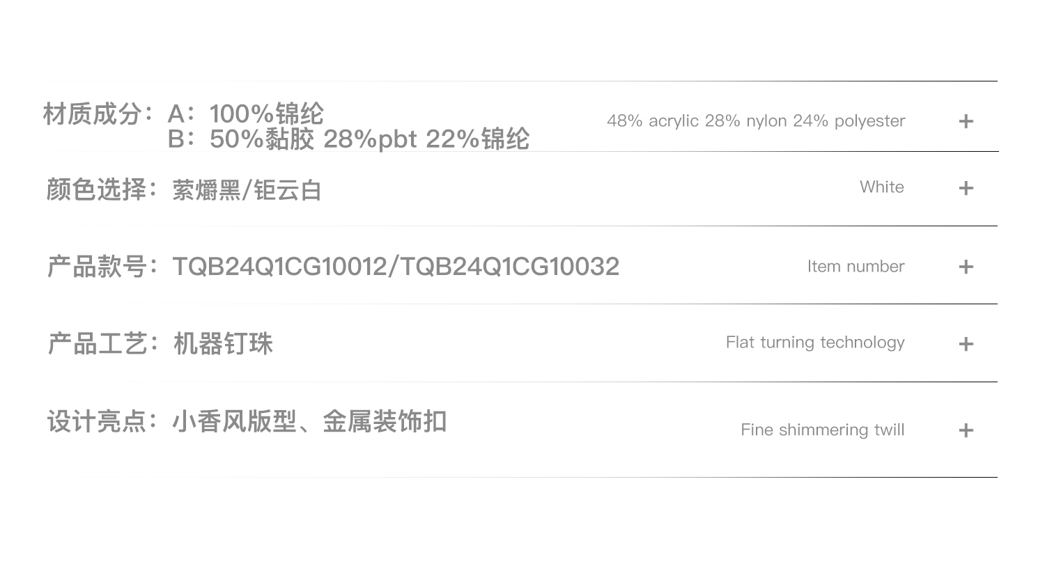 TIWILLTANG启世录“珠秩域澈”小香风圆领开衫