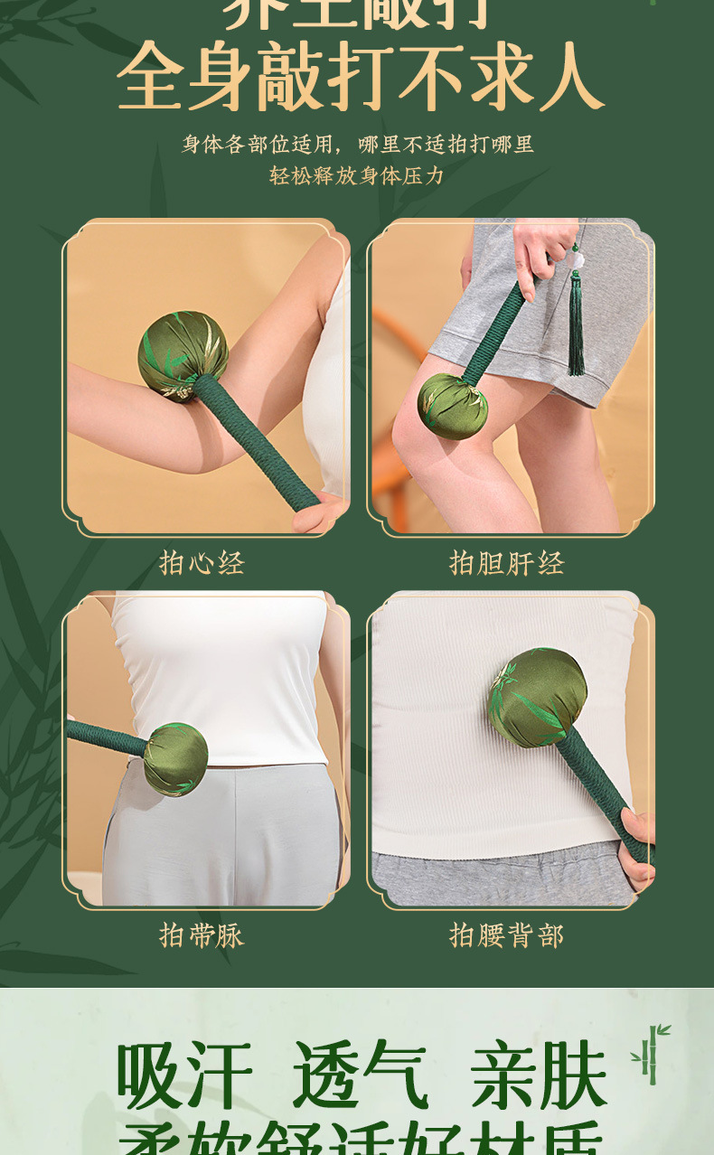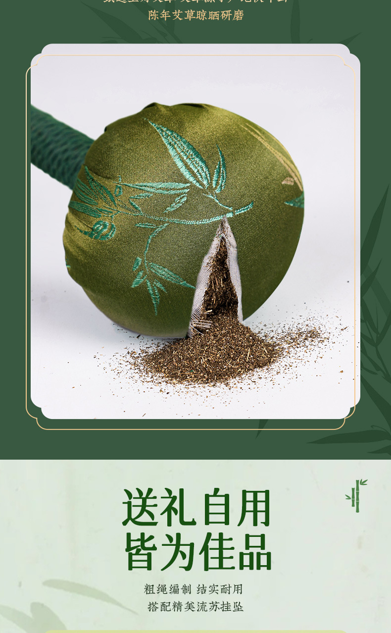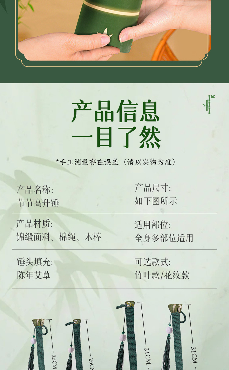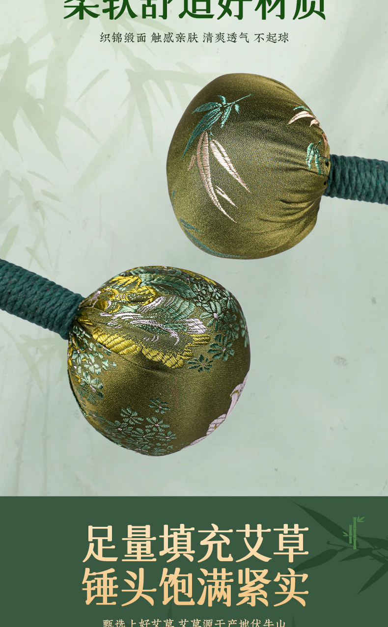 赠送礼盒母亲节礼物【养生敲打!哪里不适拍打哪里】艾草按摩养生锤绿色竹叶节节高升艾草锤养生锤经络敲打按摩锤拍八虚缎面艾草填充家用神器。ry