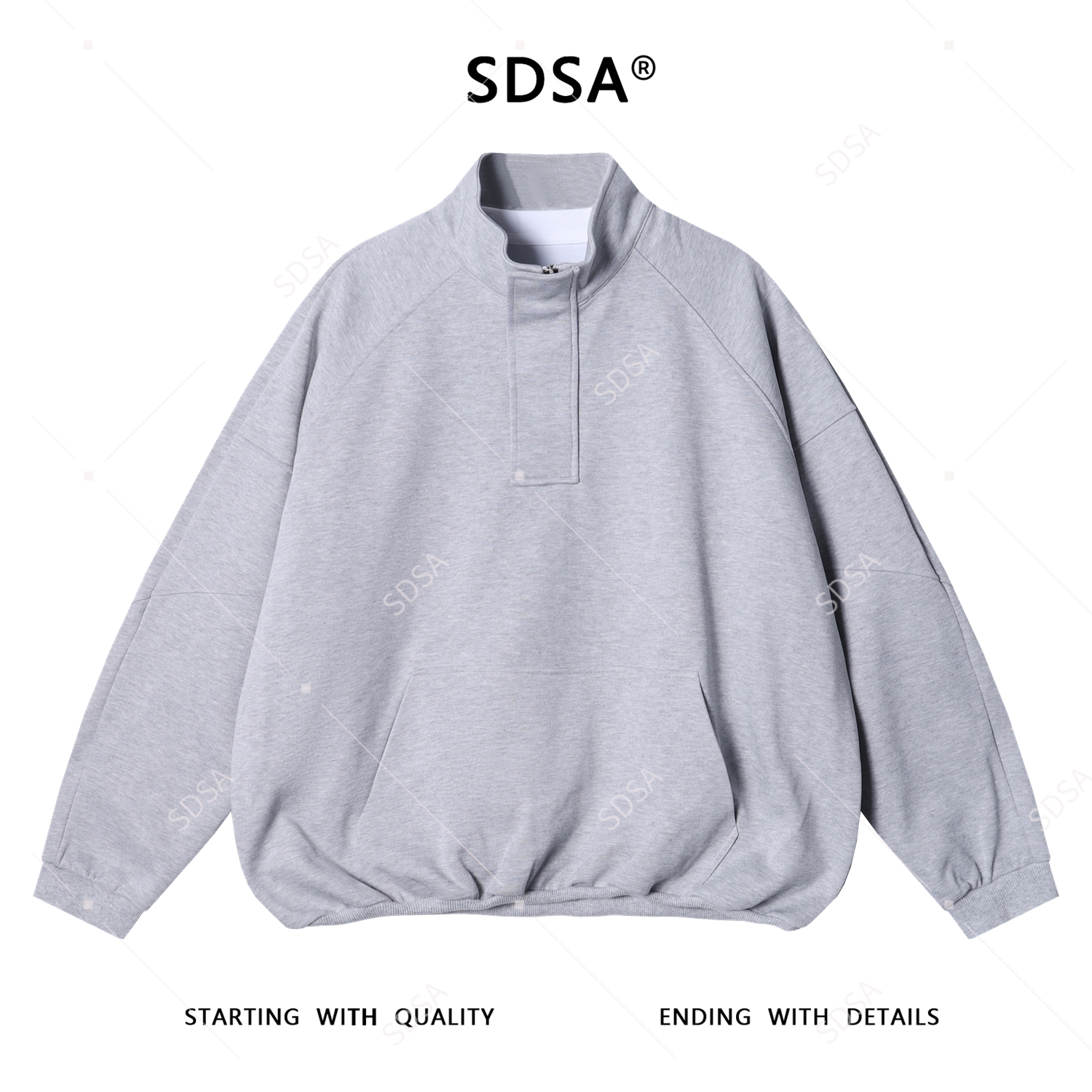 3090SDSA男士秋冬新款痞帅男装潮牌纯色半拉链立领卫衣下摆松紧时尚潮