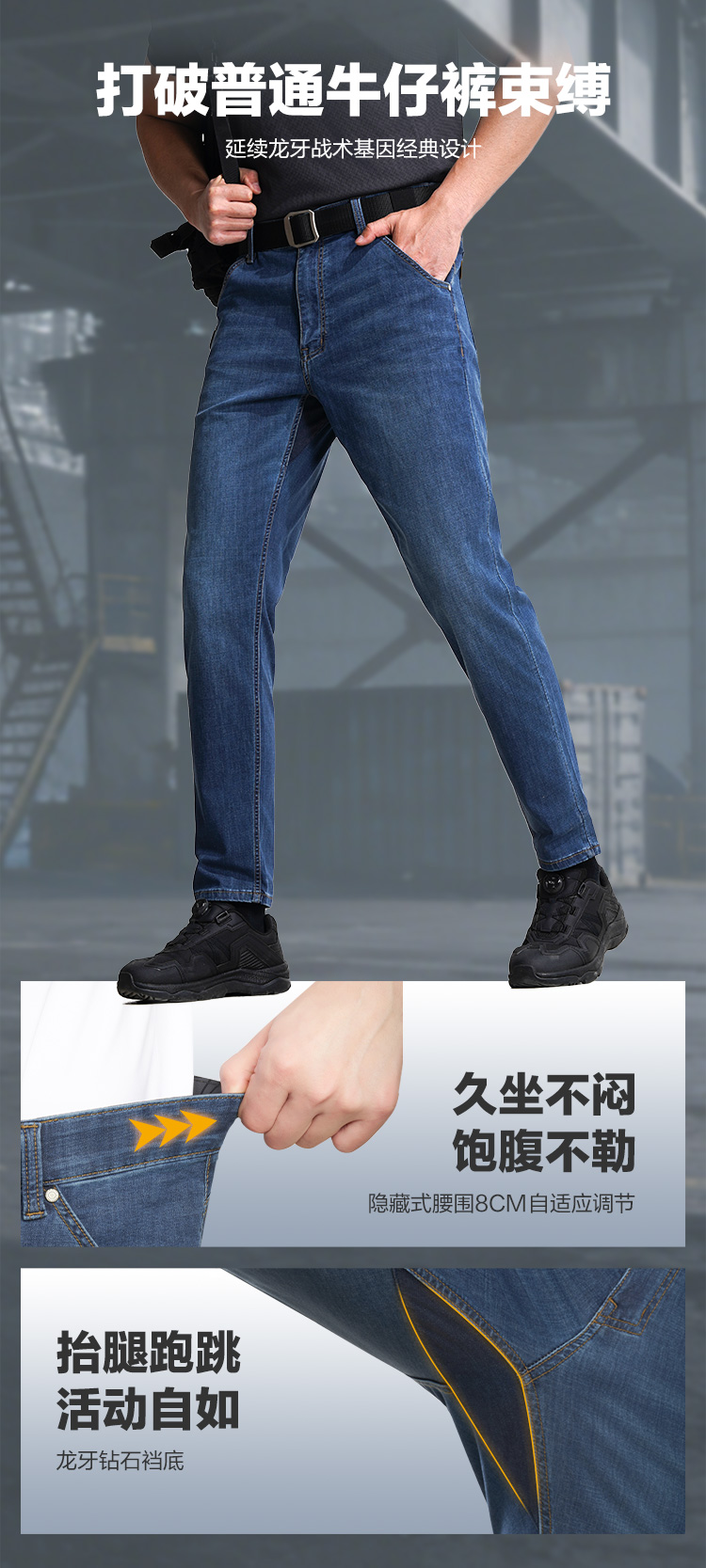 三代龙牙隐甲UPE战术通勤牛仔裤