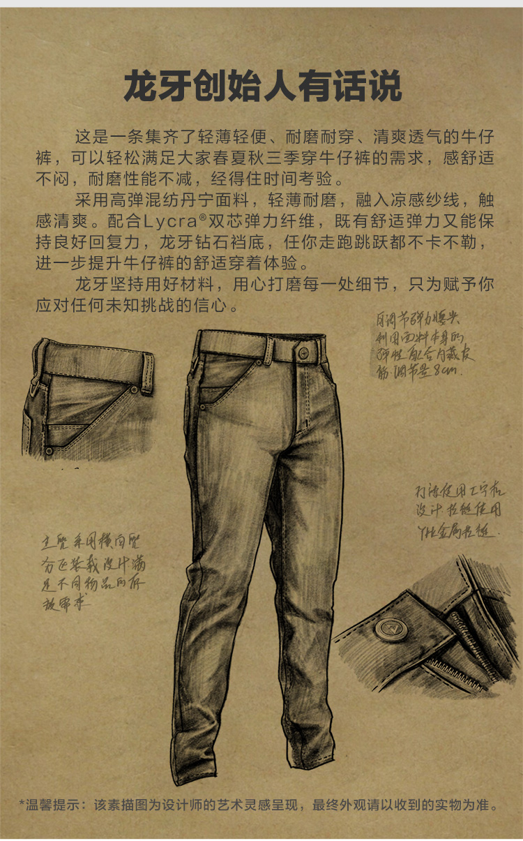 龙牙隐之冰岚轻量锥形牛仔裤加强版