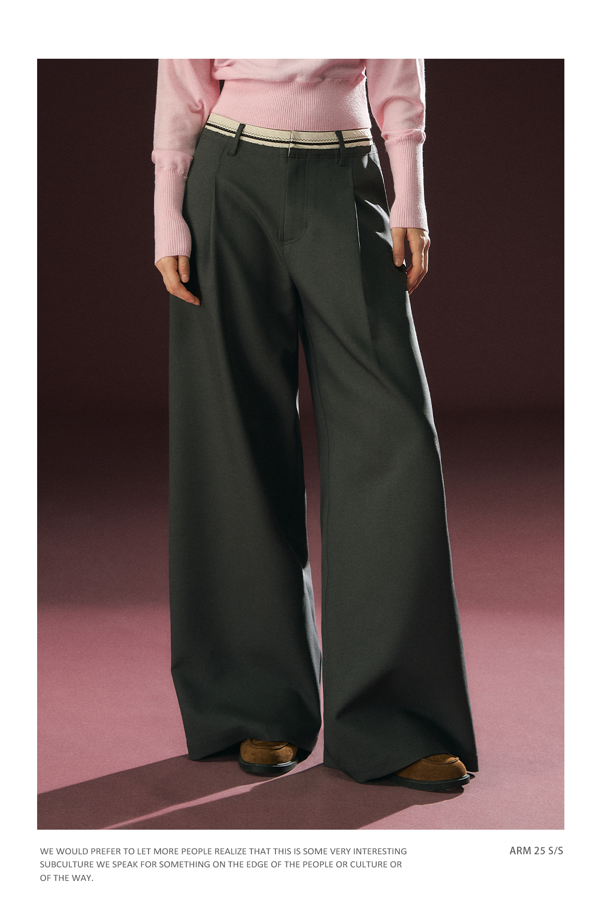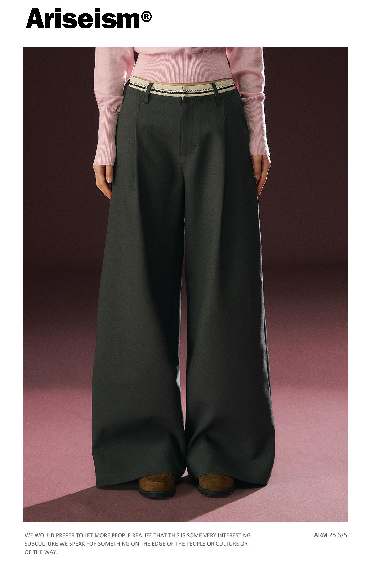 Ariseism 美式复古设计感撞色腰头休闲裤女秋冬新款