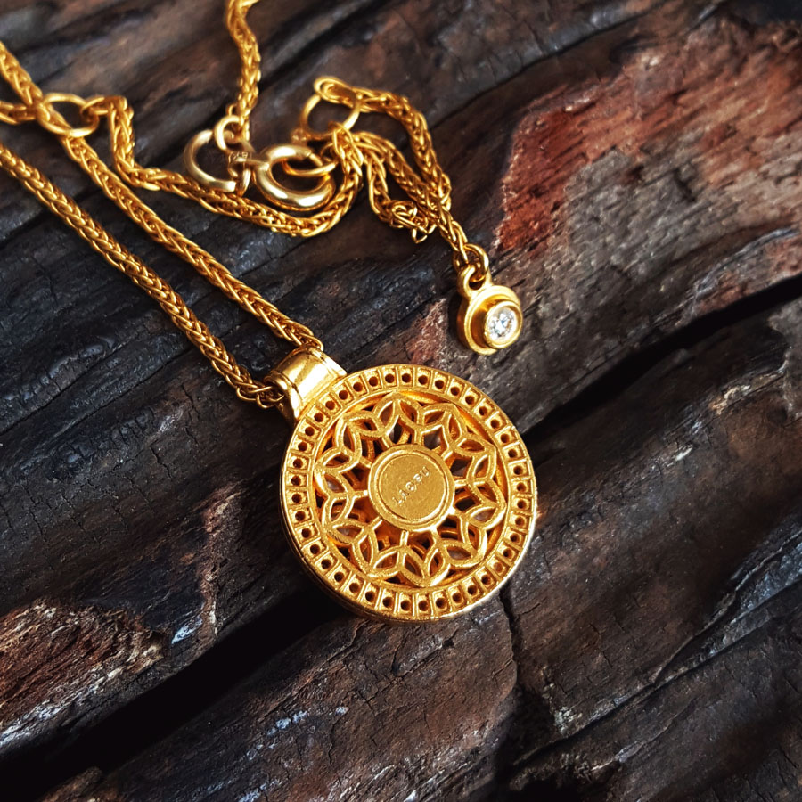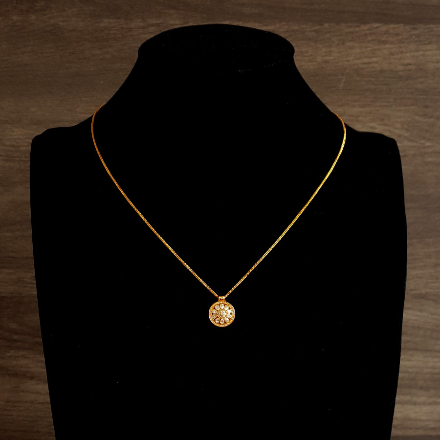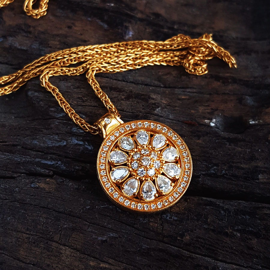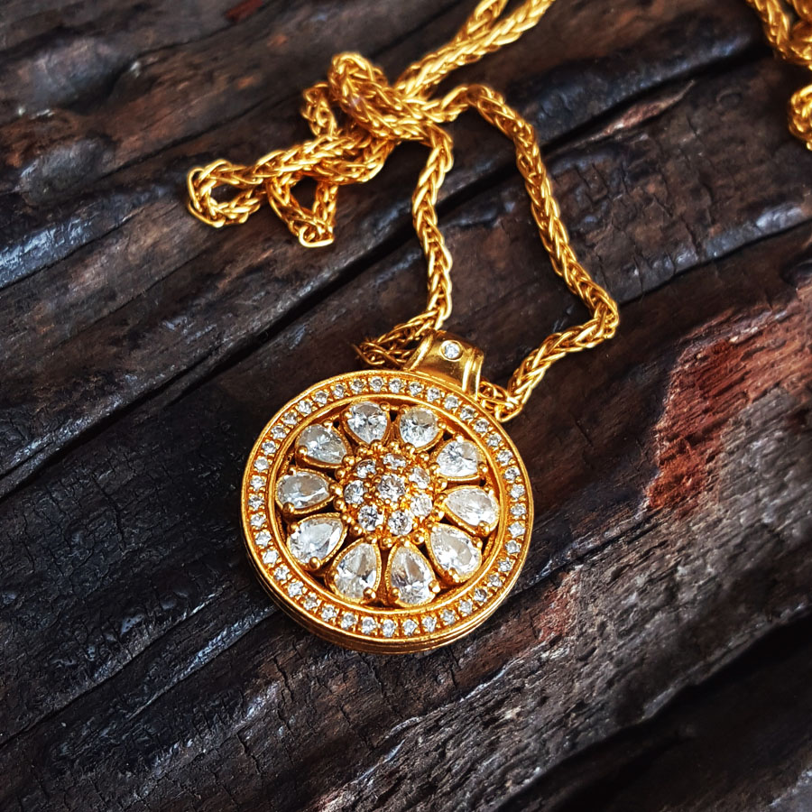 款式 | 古法足金柠檬片太阳花(3号)梨型钻石(小号)锁骨链 |