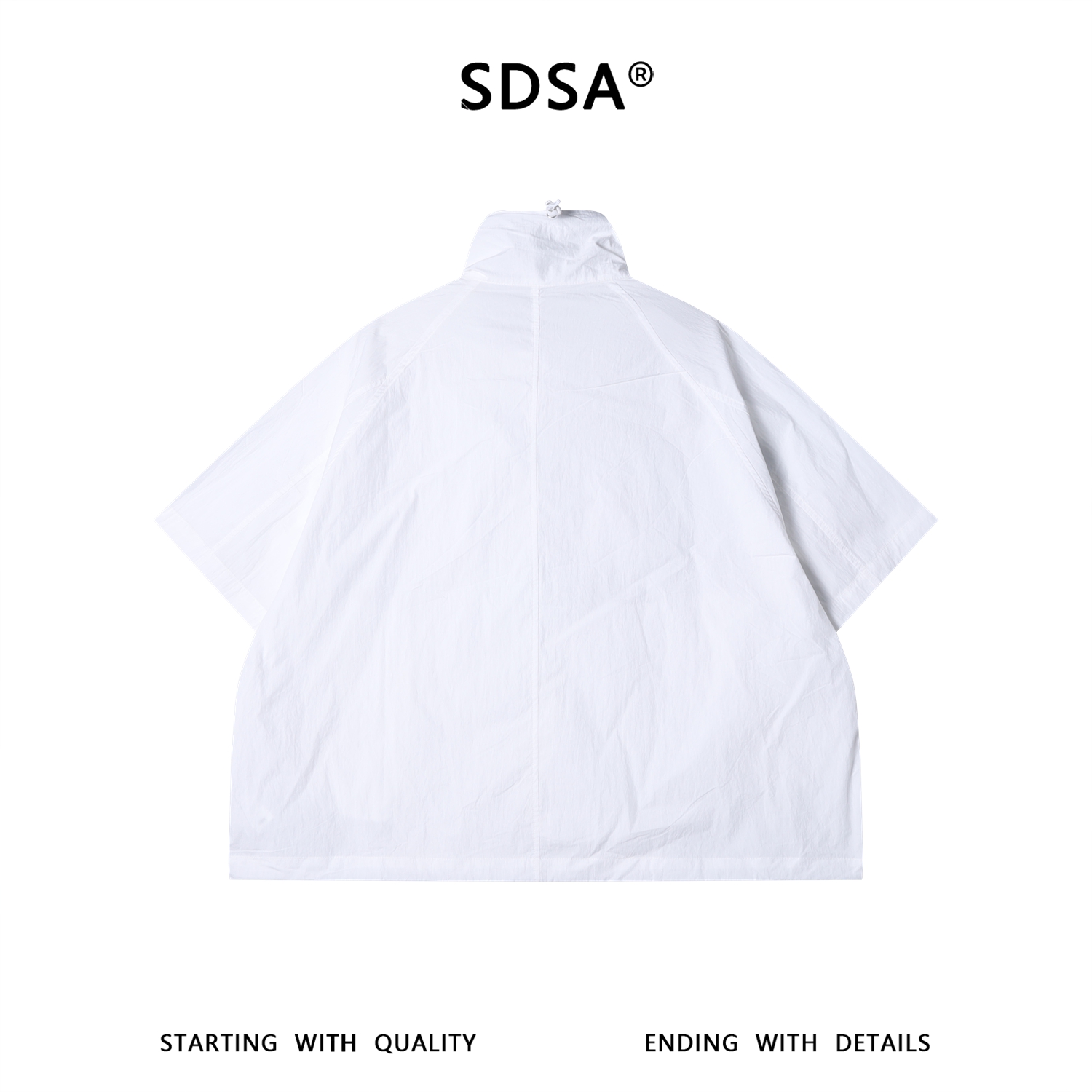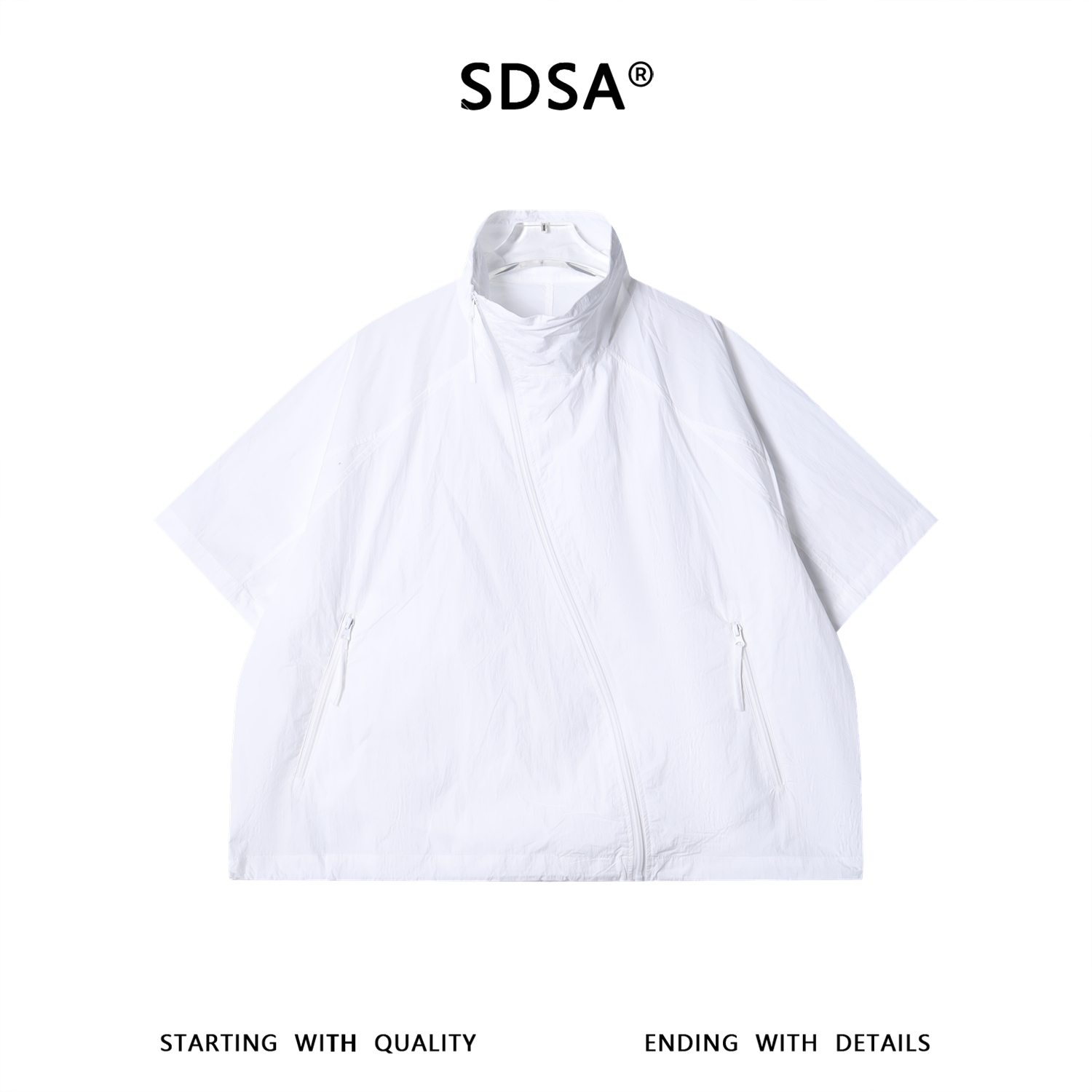 SDSA男装2026新款高贵轻奢潮牌纯色斜拉链立领短袖衬衫外套百搭