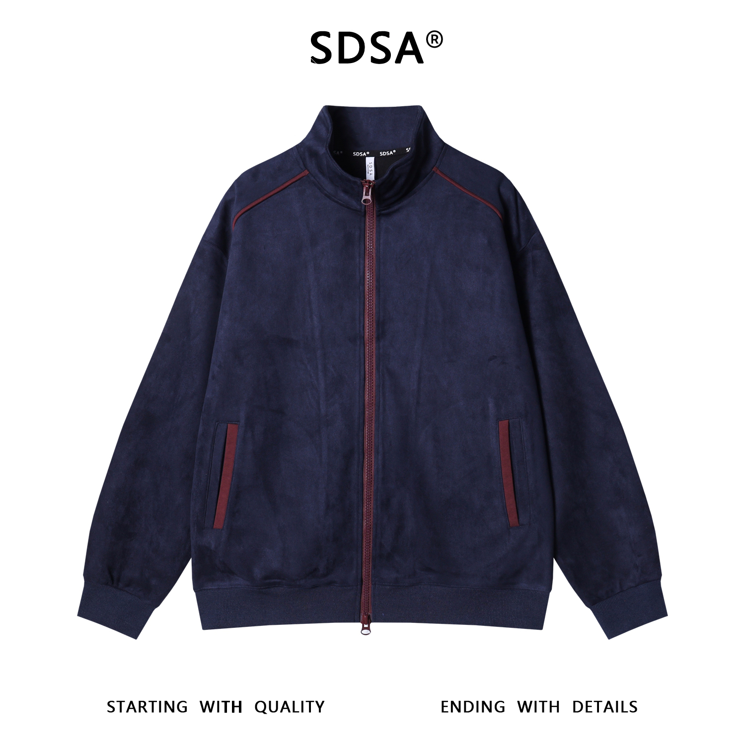 WT230SDSA男士秋冬新款痞帅男装美式绒面撞色拉条立领拉链卫衣百搭时尚
