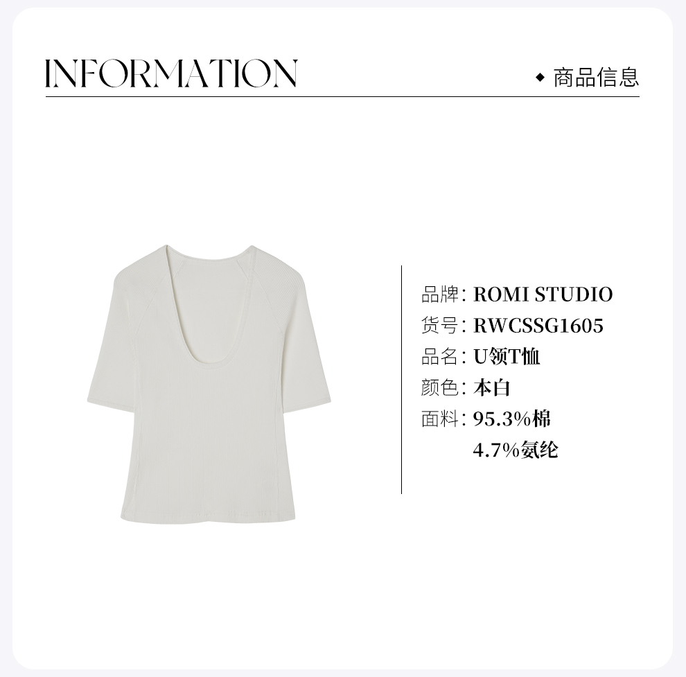 ROMI STUDIO“Clean fit”棉质坑条中袖弹力修身针织上衣RWCSSG1605
