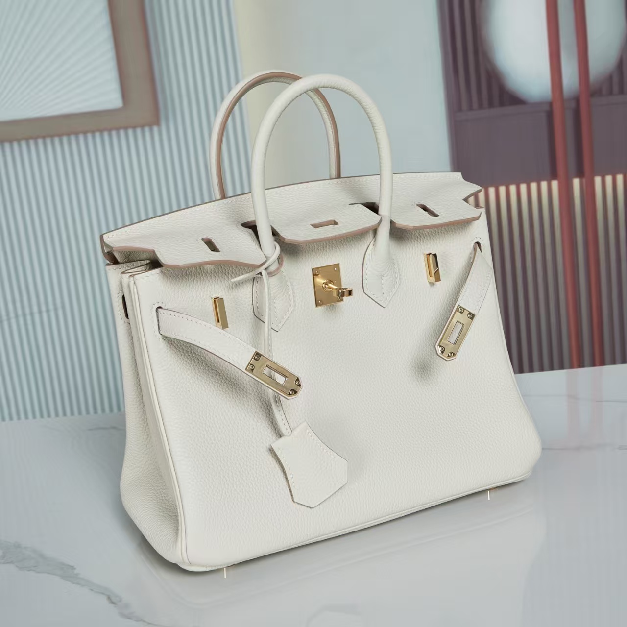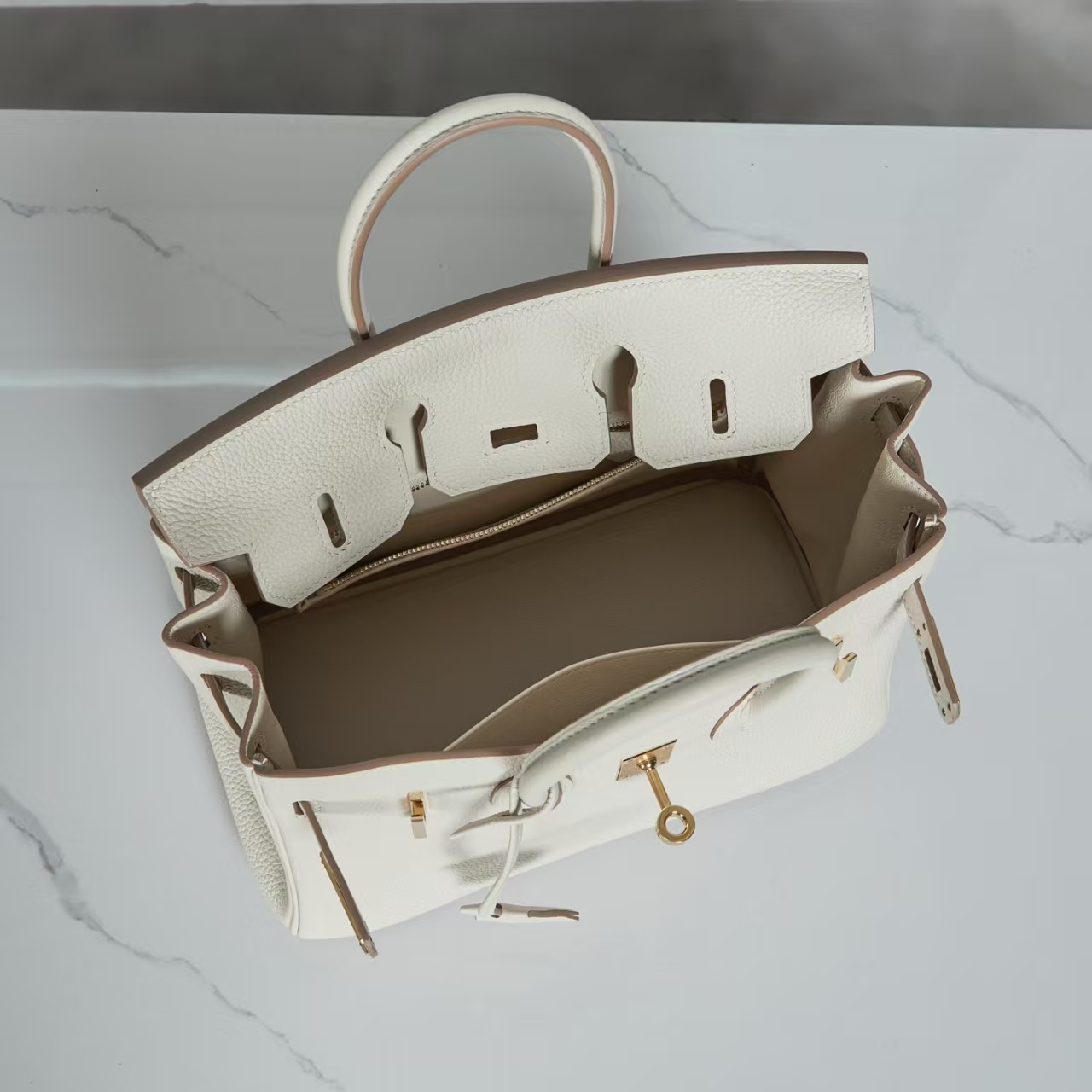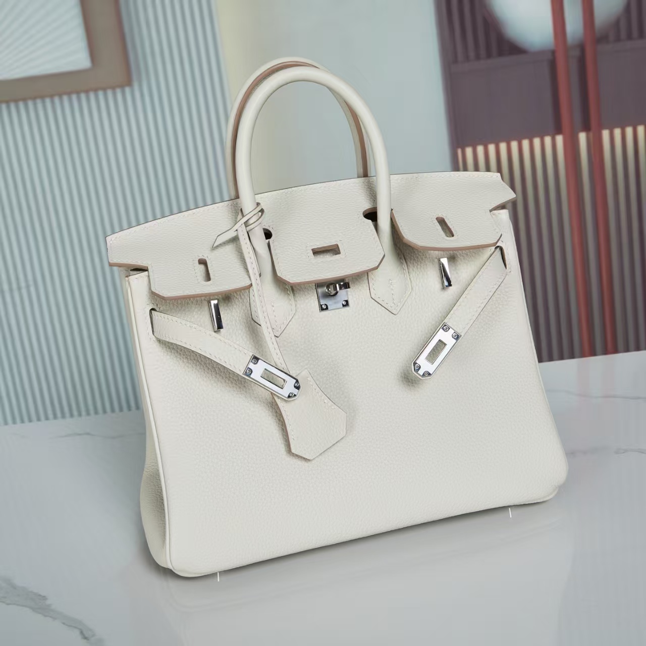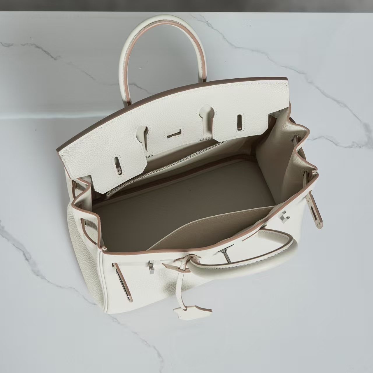 【纯手缝定制不退换】爱马仕 Birkin 25奶昔白 金/银扣 togo皮(MM)