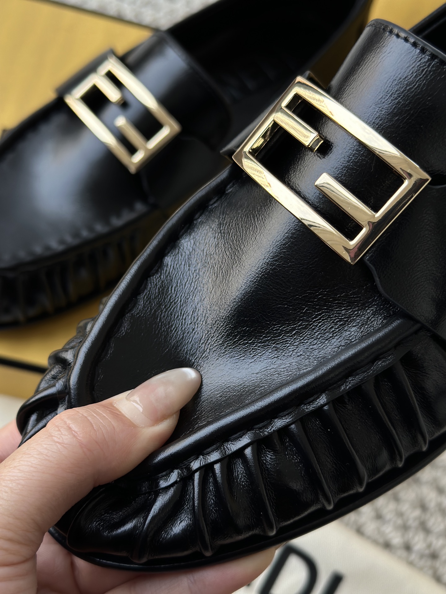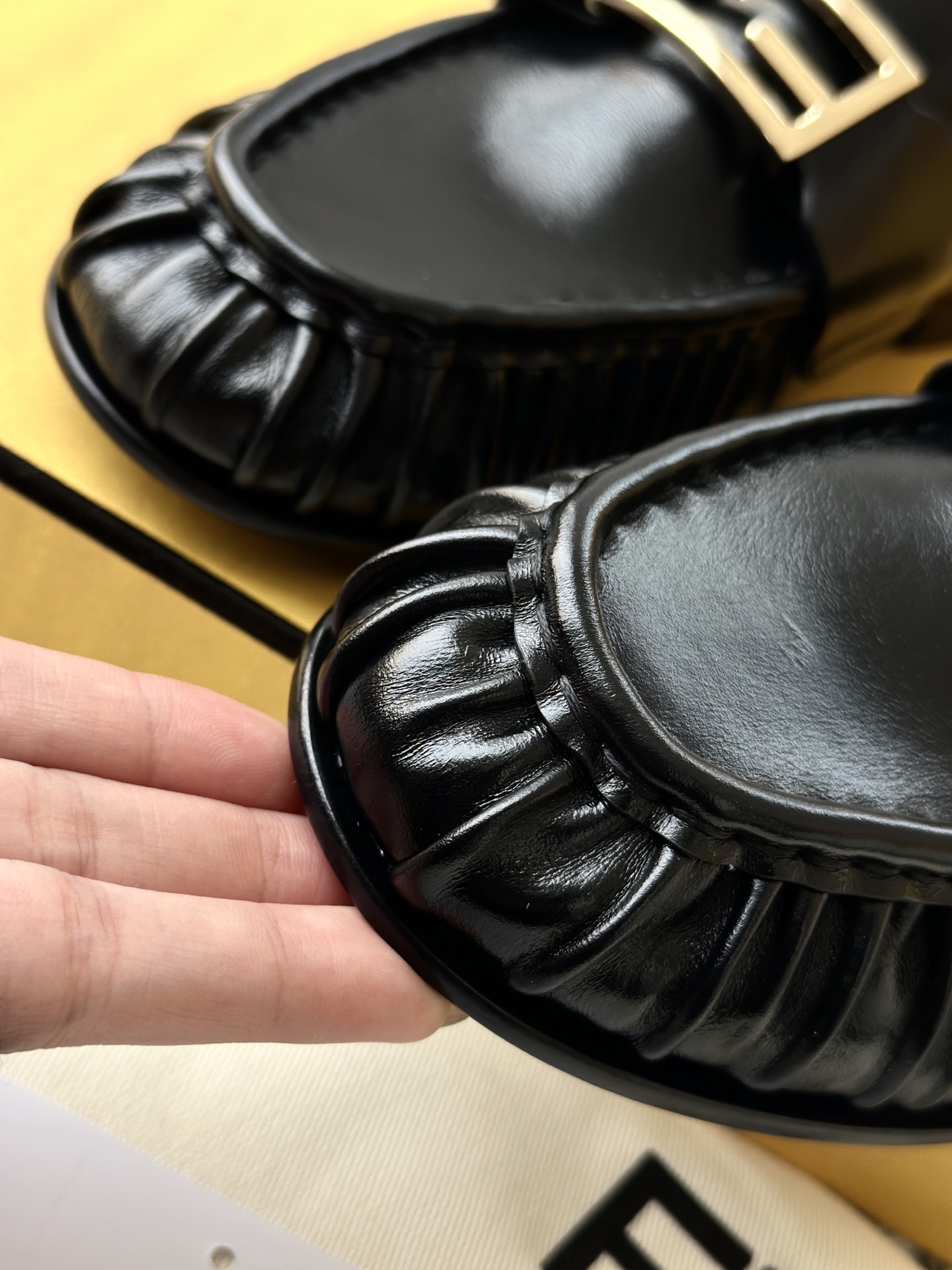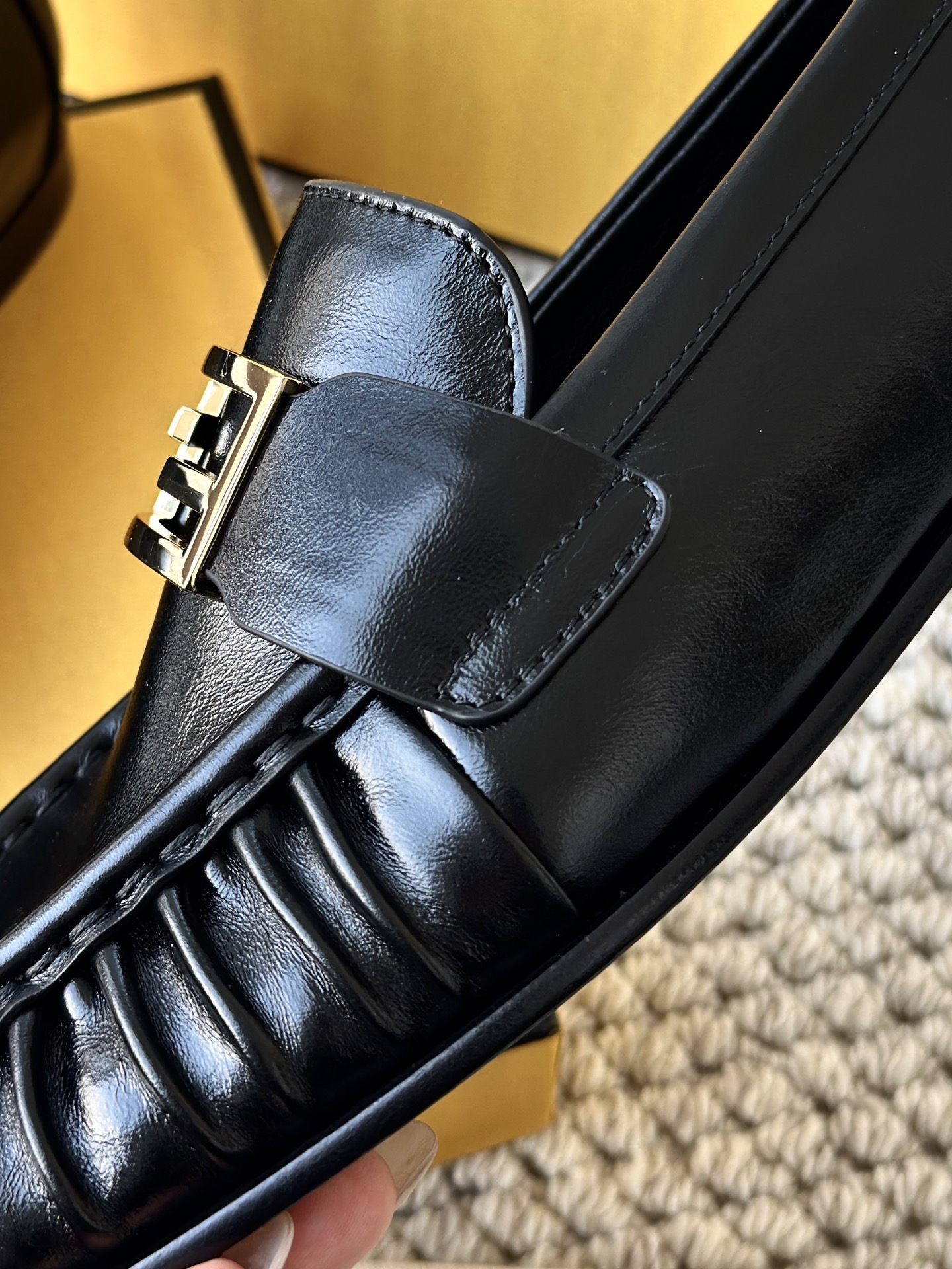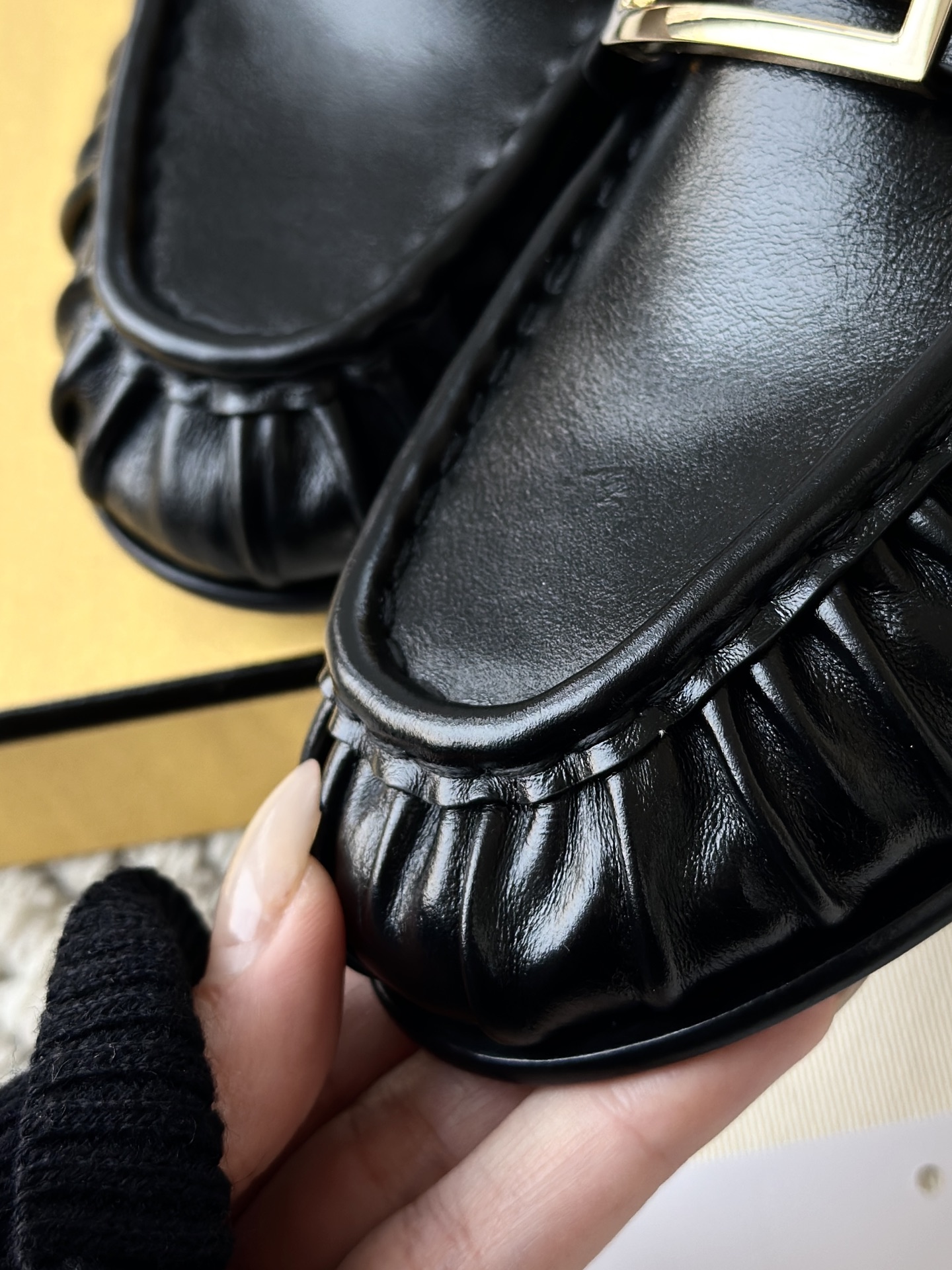 注意看它的鞋头,是纯手工包边褶皱! 由整块牛皮鞋面包覆,为了做出鞋头的微翘复古感,这种裙边,必须要由蒸汽烤软后,再由多年老工匠师傅纯手工砸皮+车线,才能做出如此自然流畅的弧度和饱满感!!!!!
