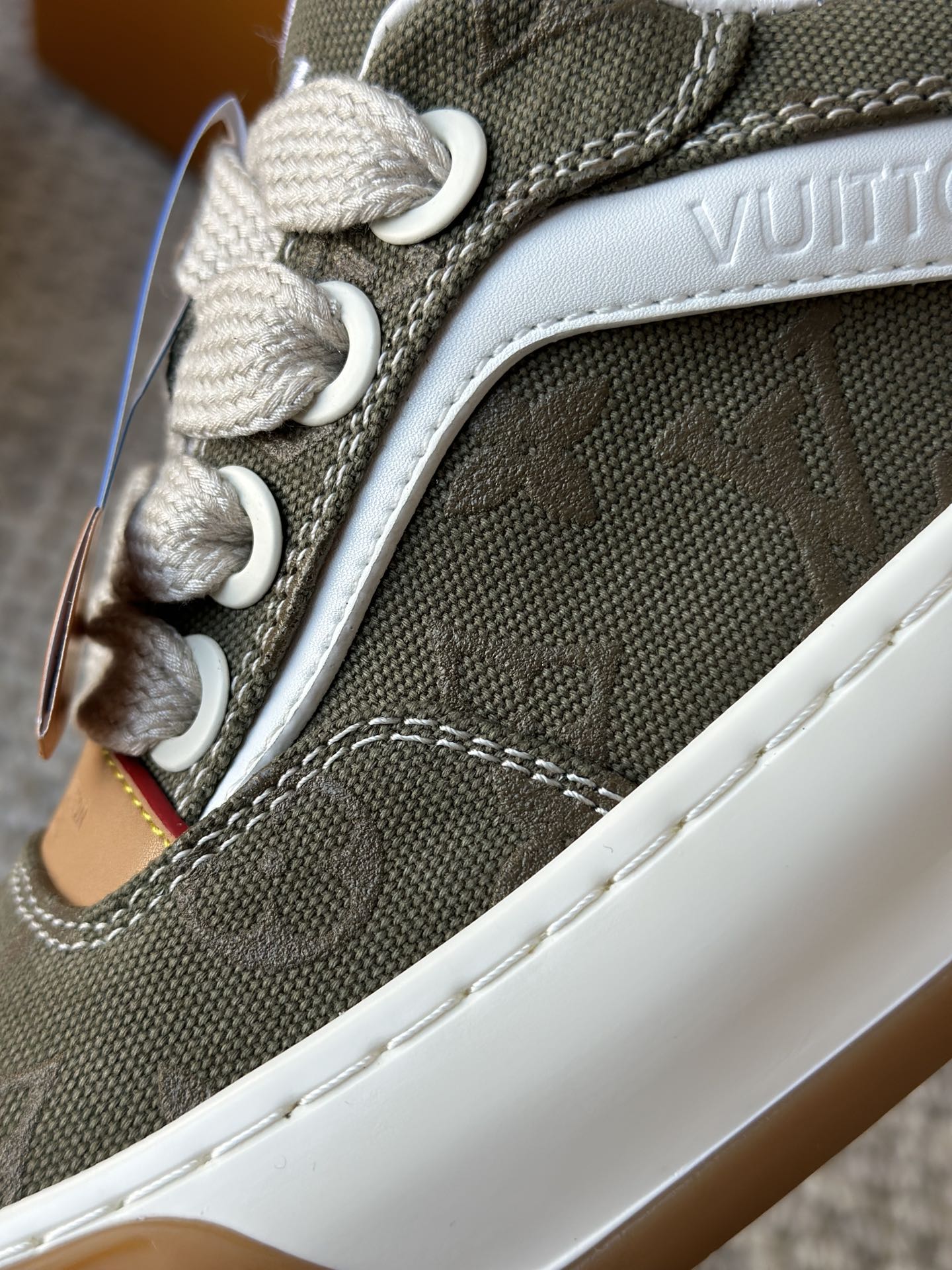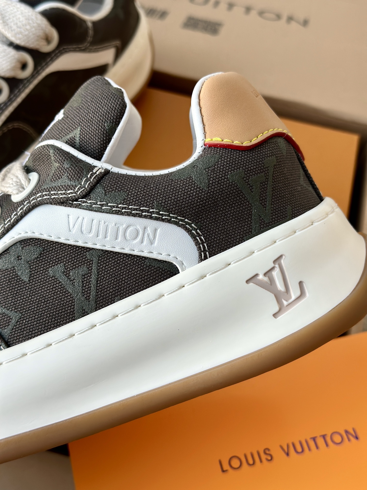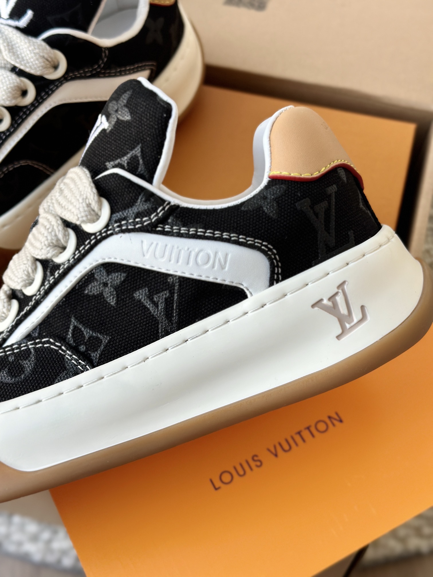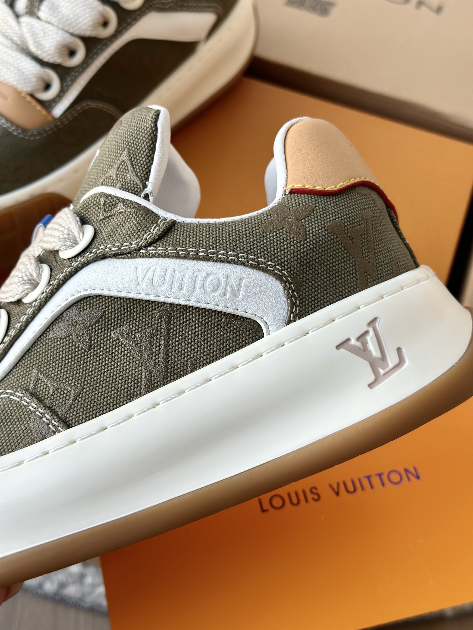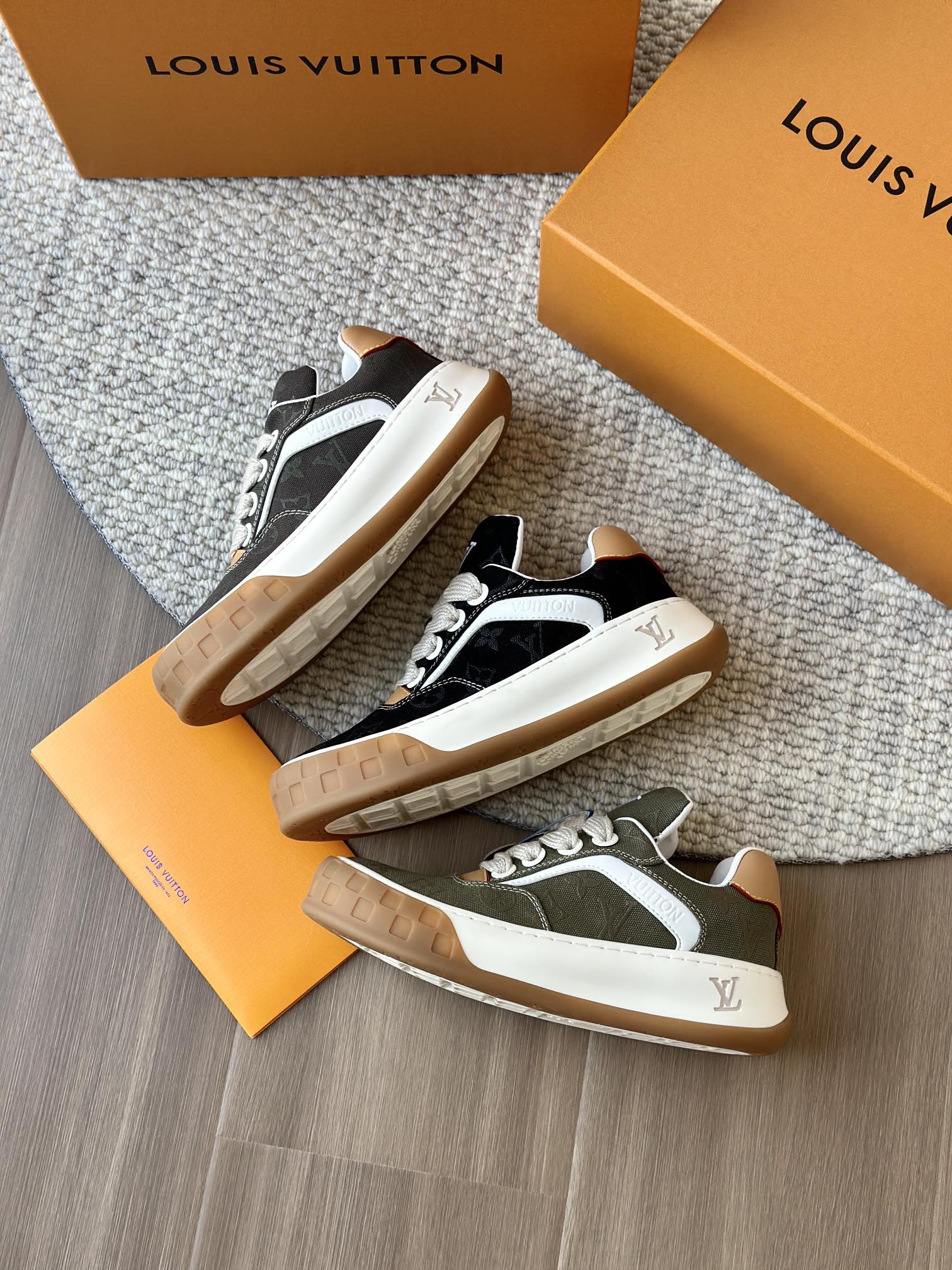 整双鞋的LV标识都超清晰立体! 拉近看LV的logo太有小心机了! 辨识度超高还不会特别夸张,和整双鞋子的风格都融合的很好 超新款!!早穿早享受