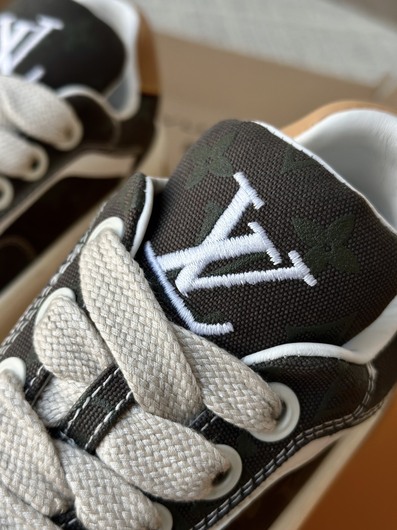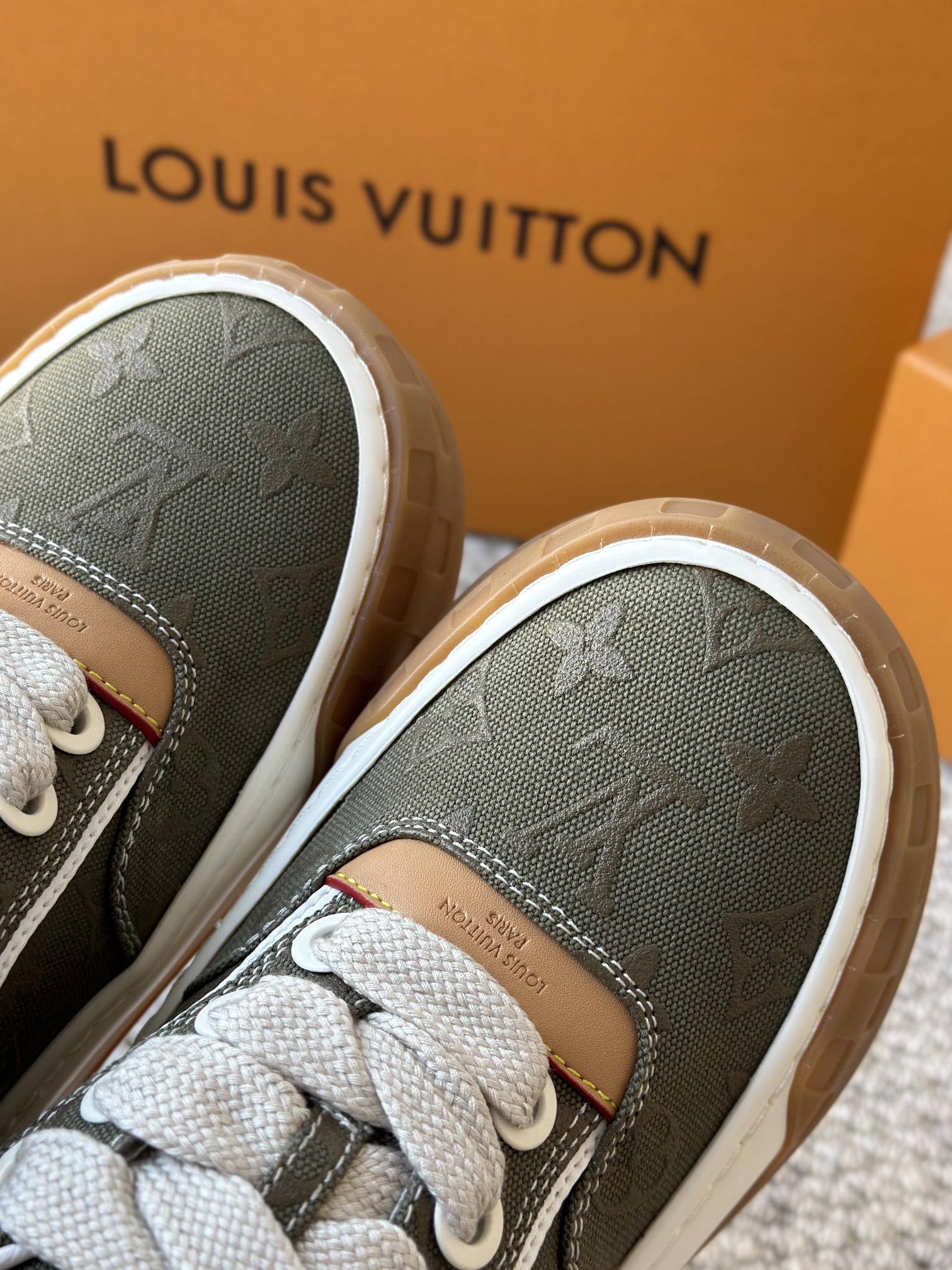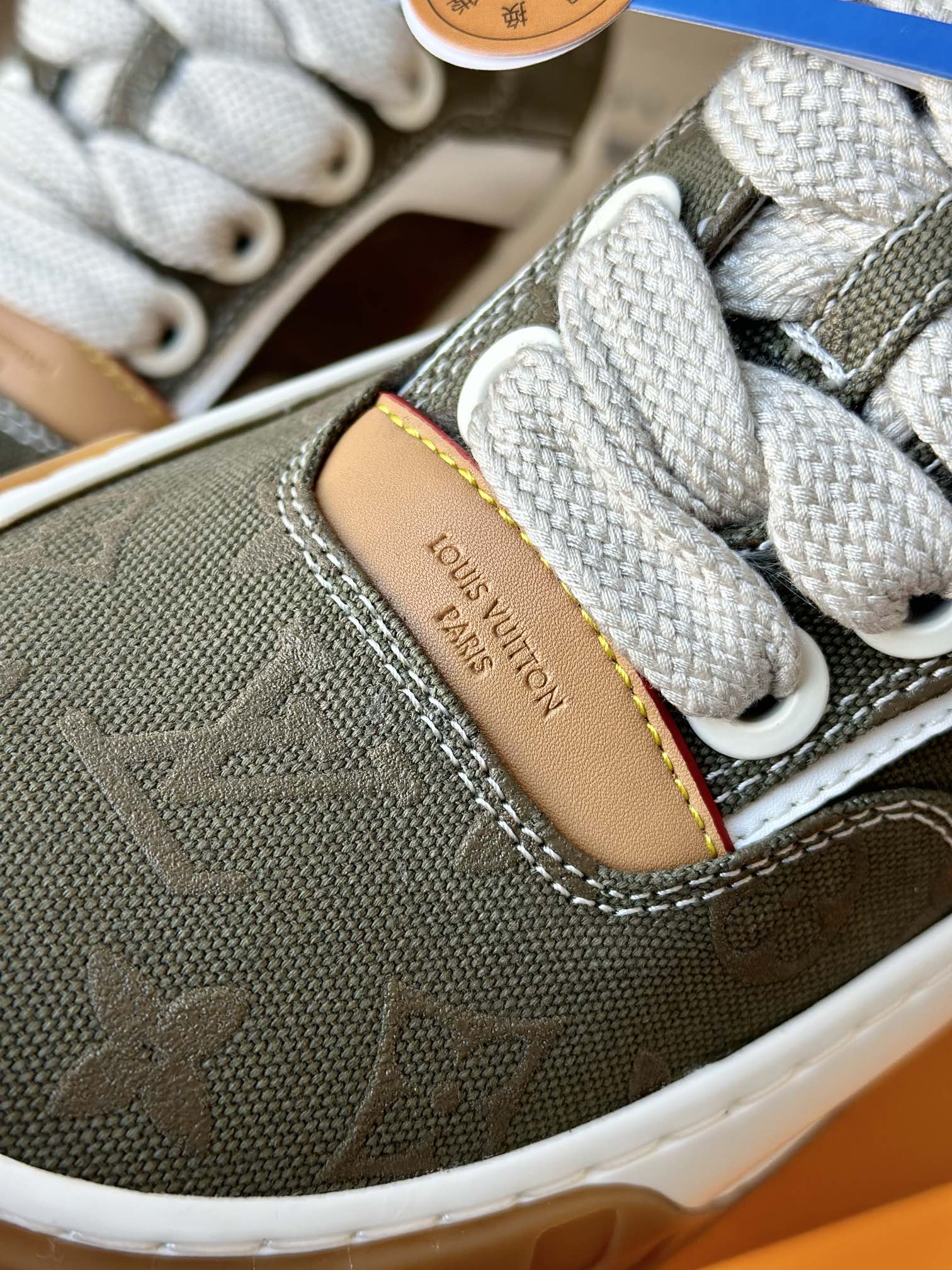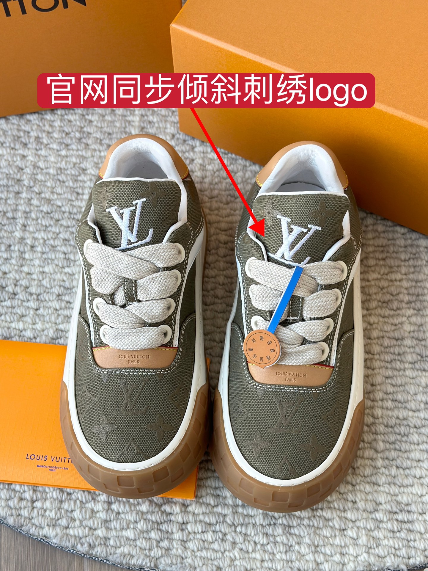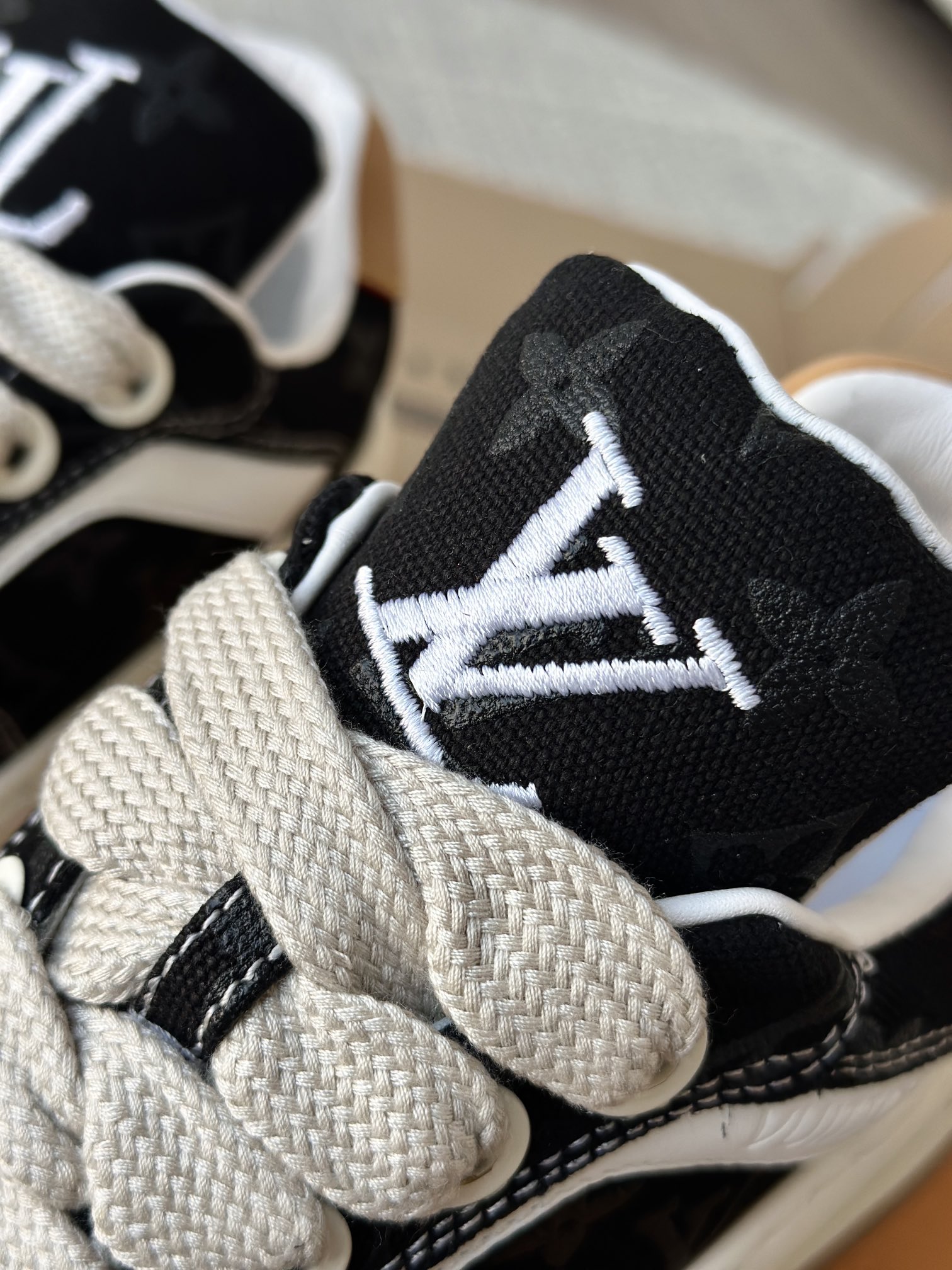 整双鞋的LV标识都超清晰立体! 拉近看LV的logo太有小心机了! 辨识度超高还不会特别夸张,和整双鞋子的风格都融合的很好 超新款!!早穿早享受