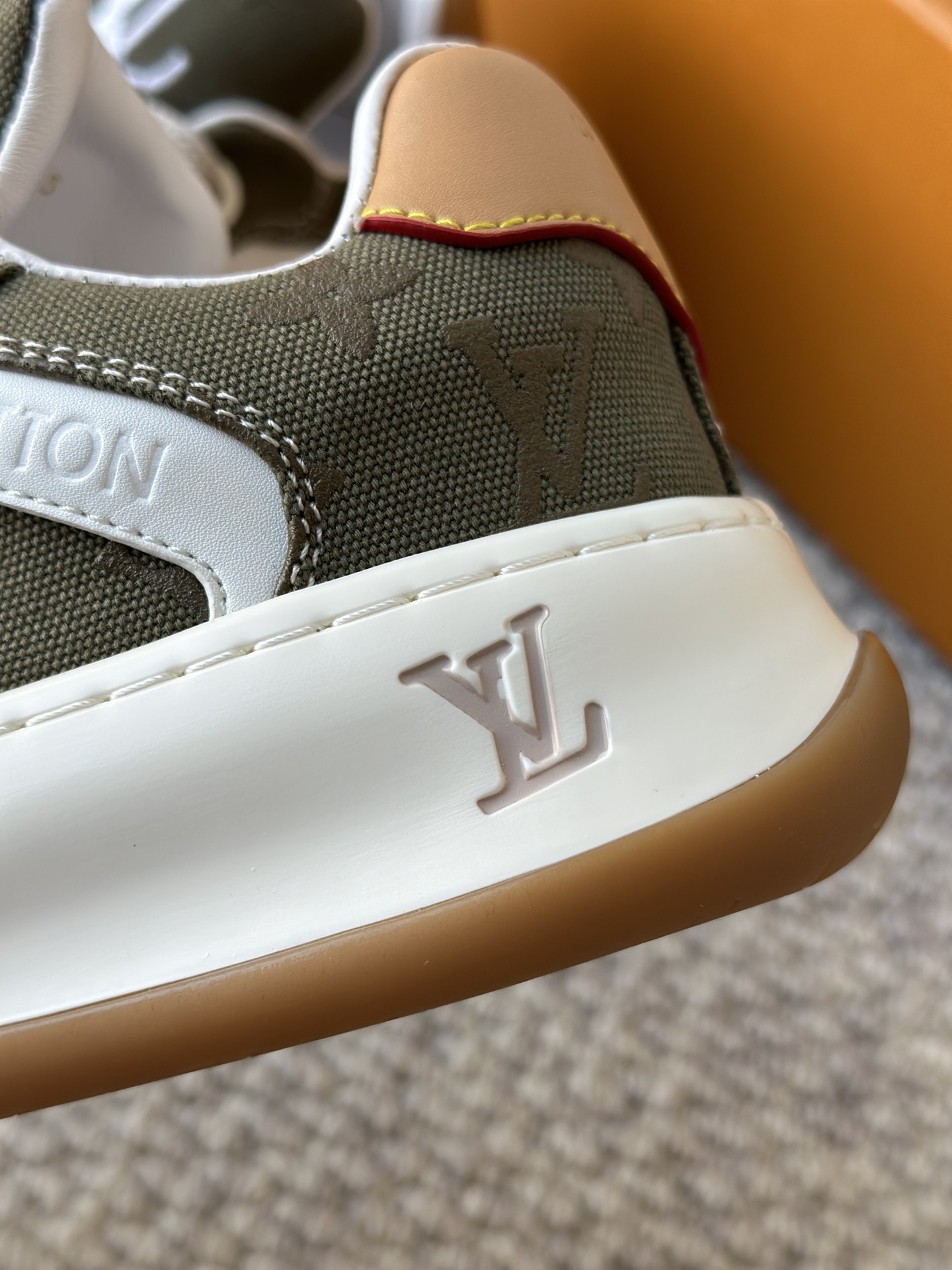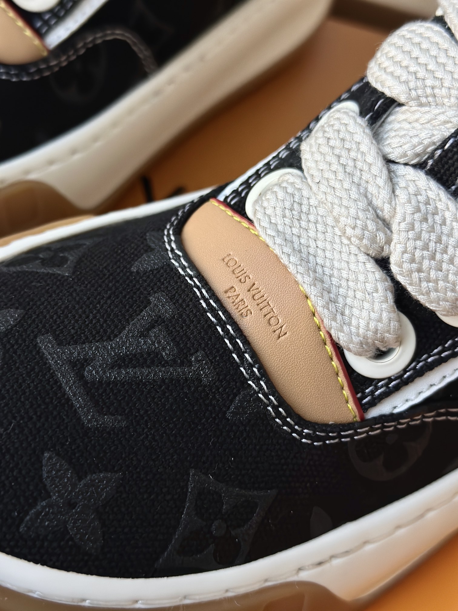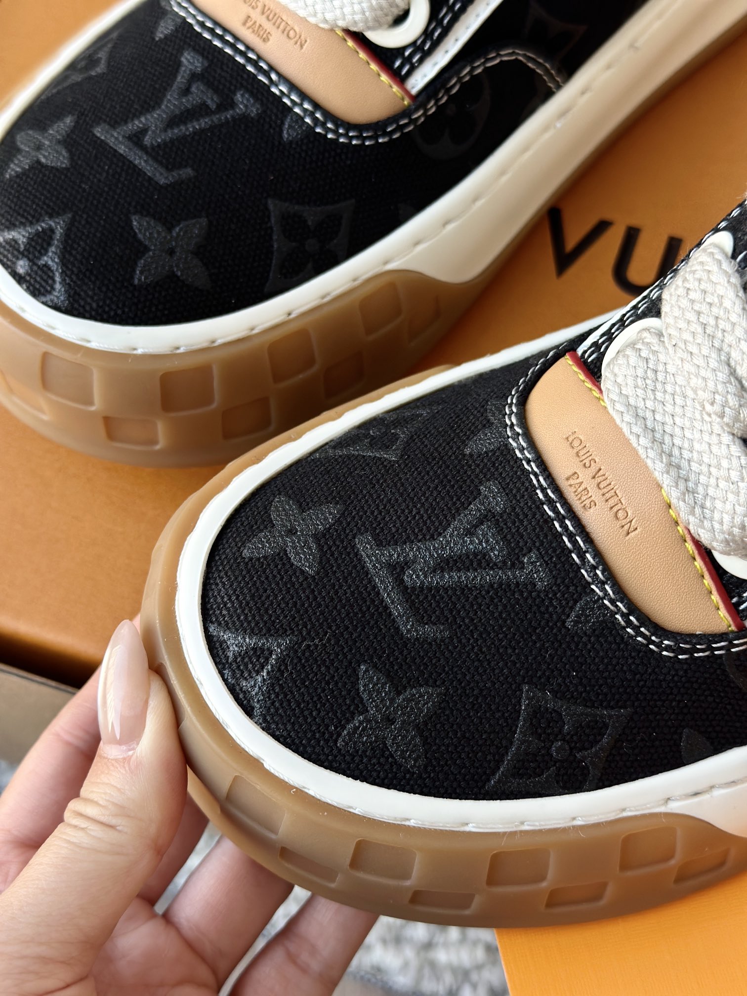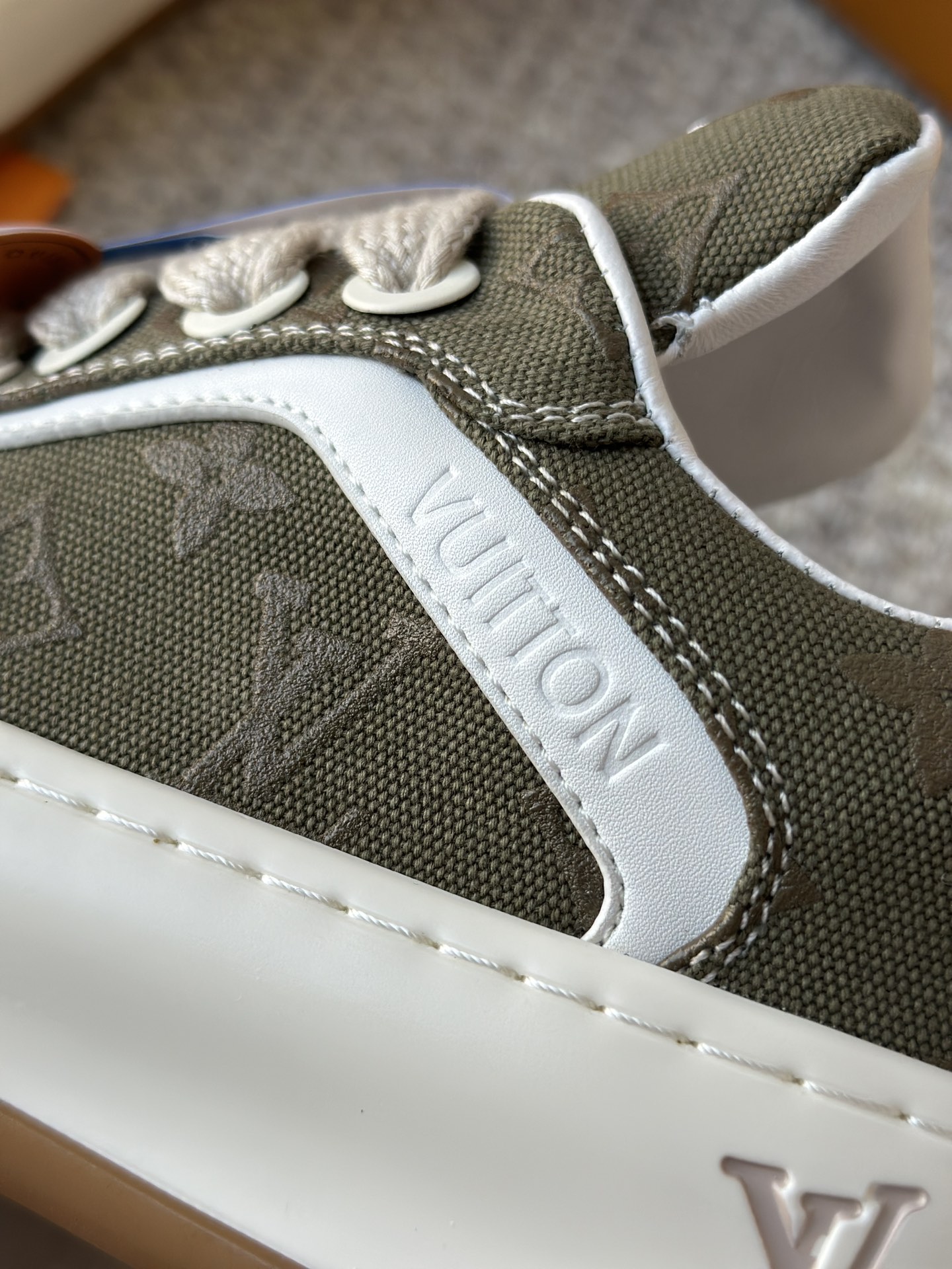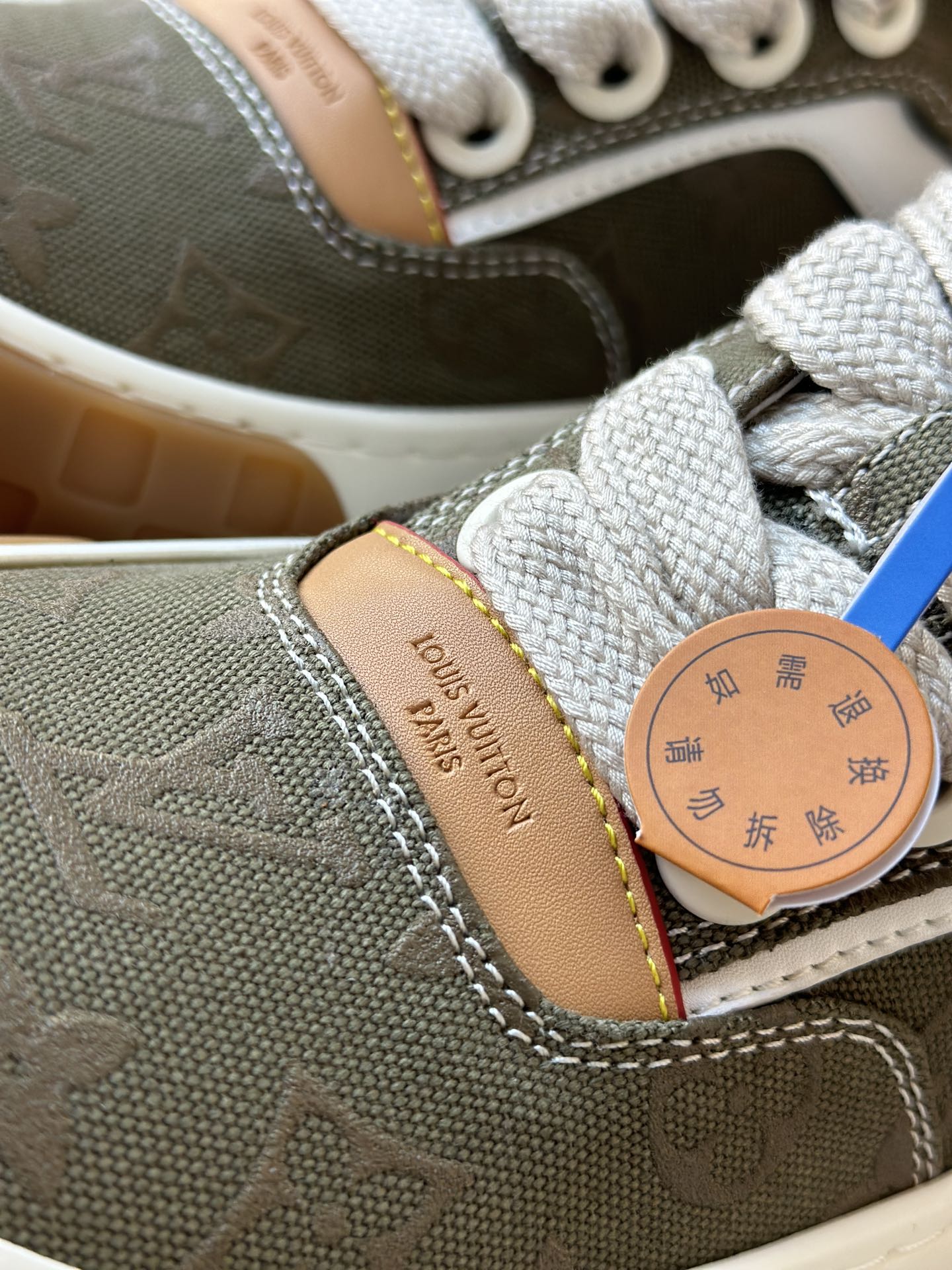 整双鞋的LV标识都超清晰立体! 拉近看LV的logo太有小心机了! 辨识度超高还不会特别夸张,和整双鞋子的风格都融合的很好 超新款!!早穿早享受