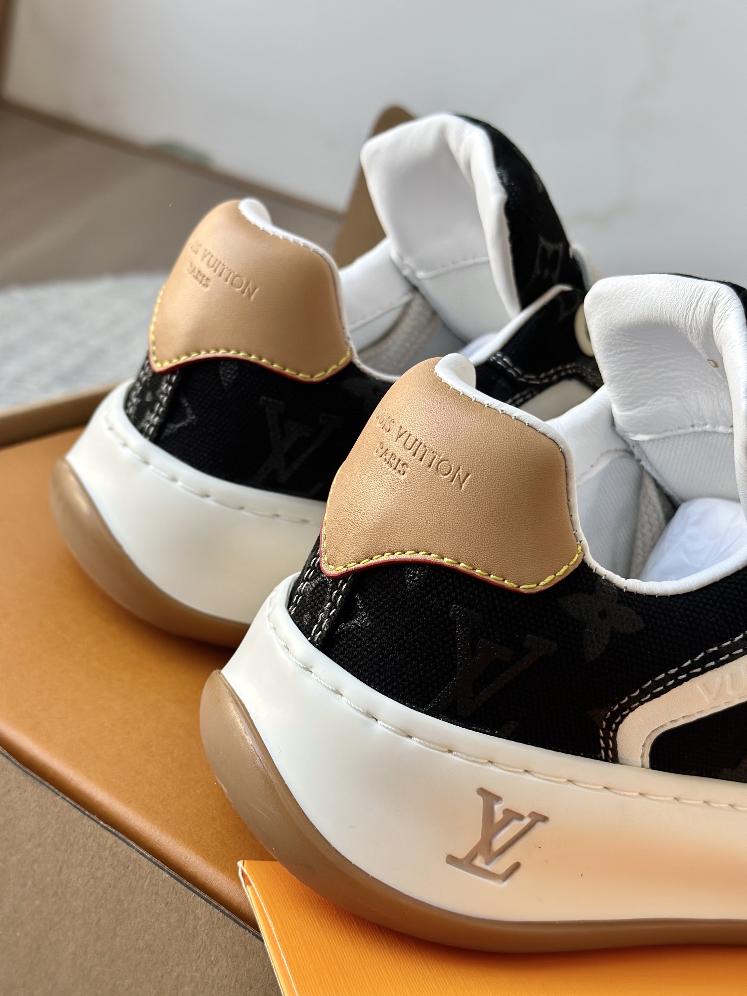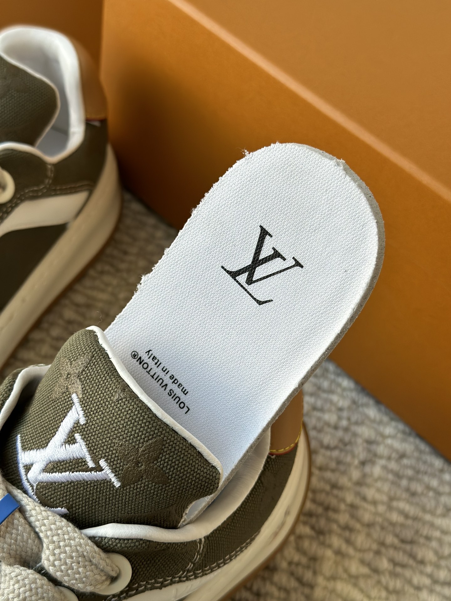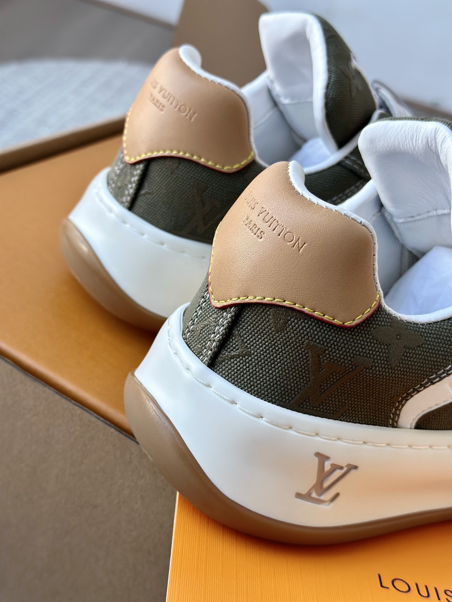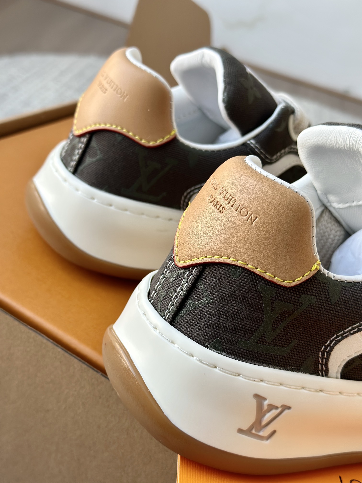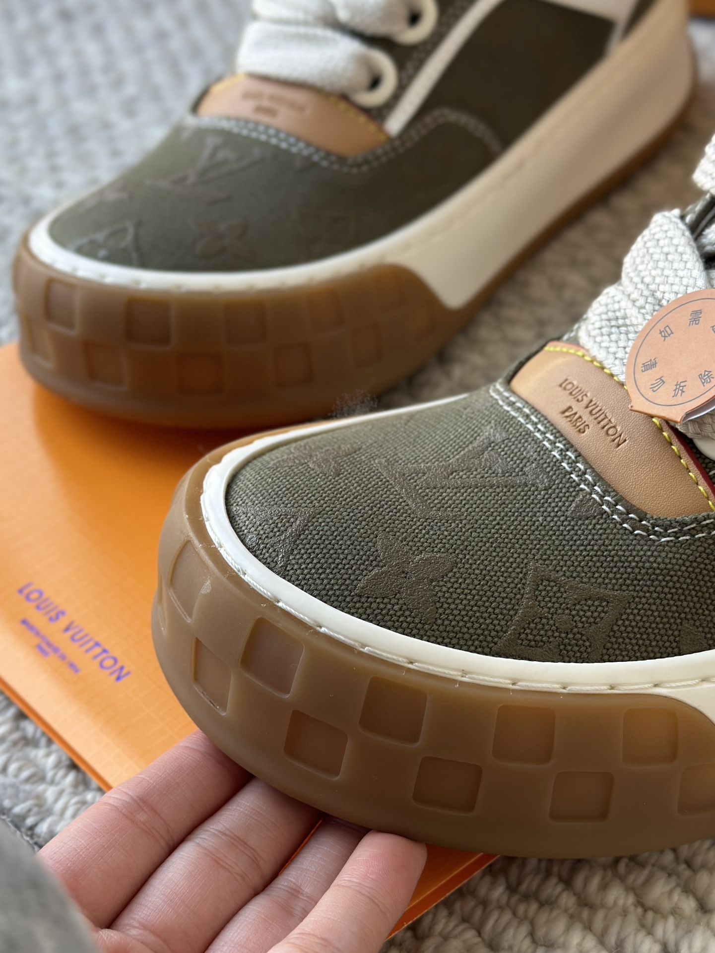 整双鞋的LV标识都超清晰立体! 拉近看LV的logo太有小心机了! 辨识度超高还不会特别夸张,和整双鞋子的风格都融合的很好 超新款!!早穿早享受