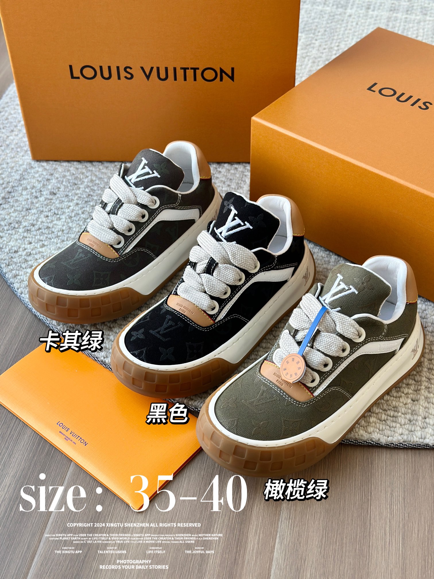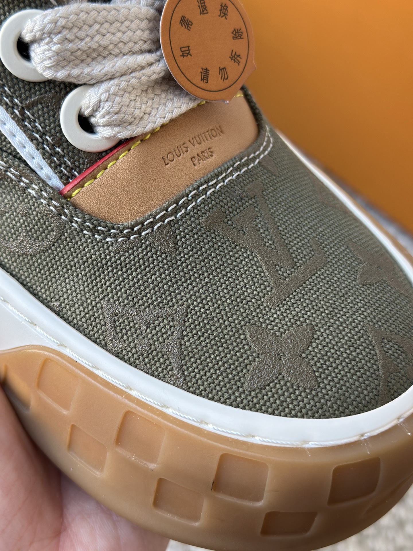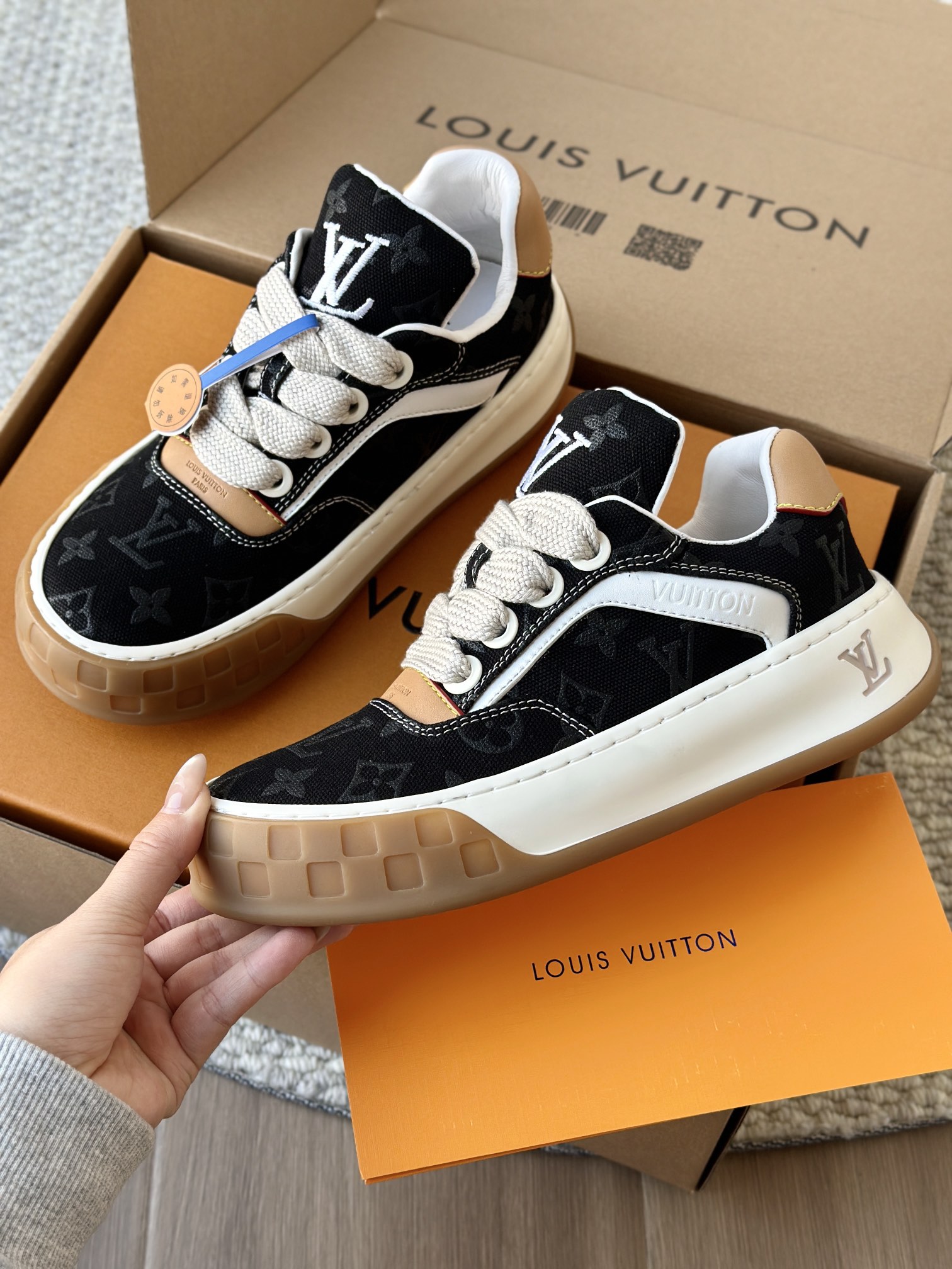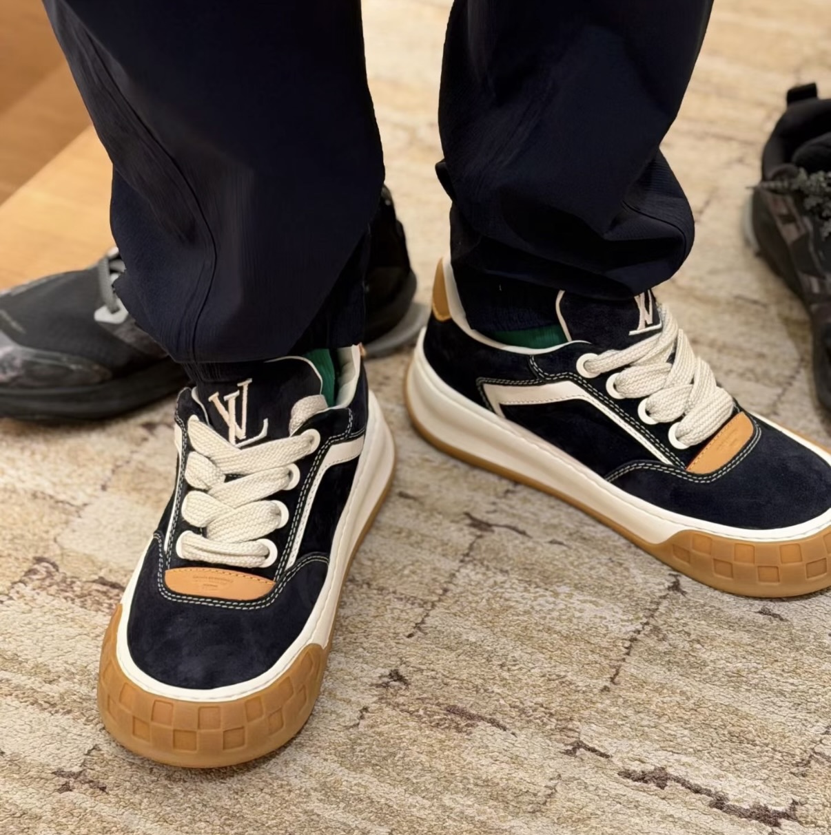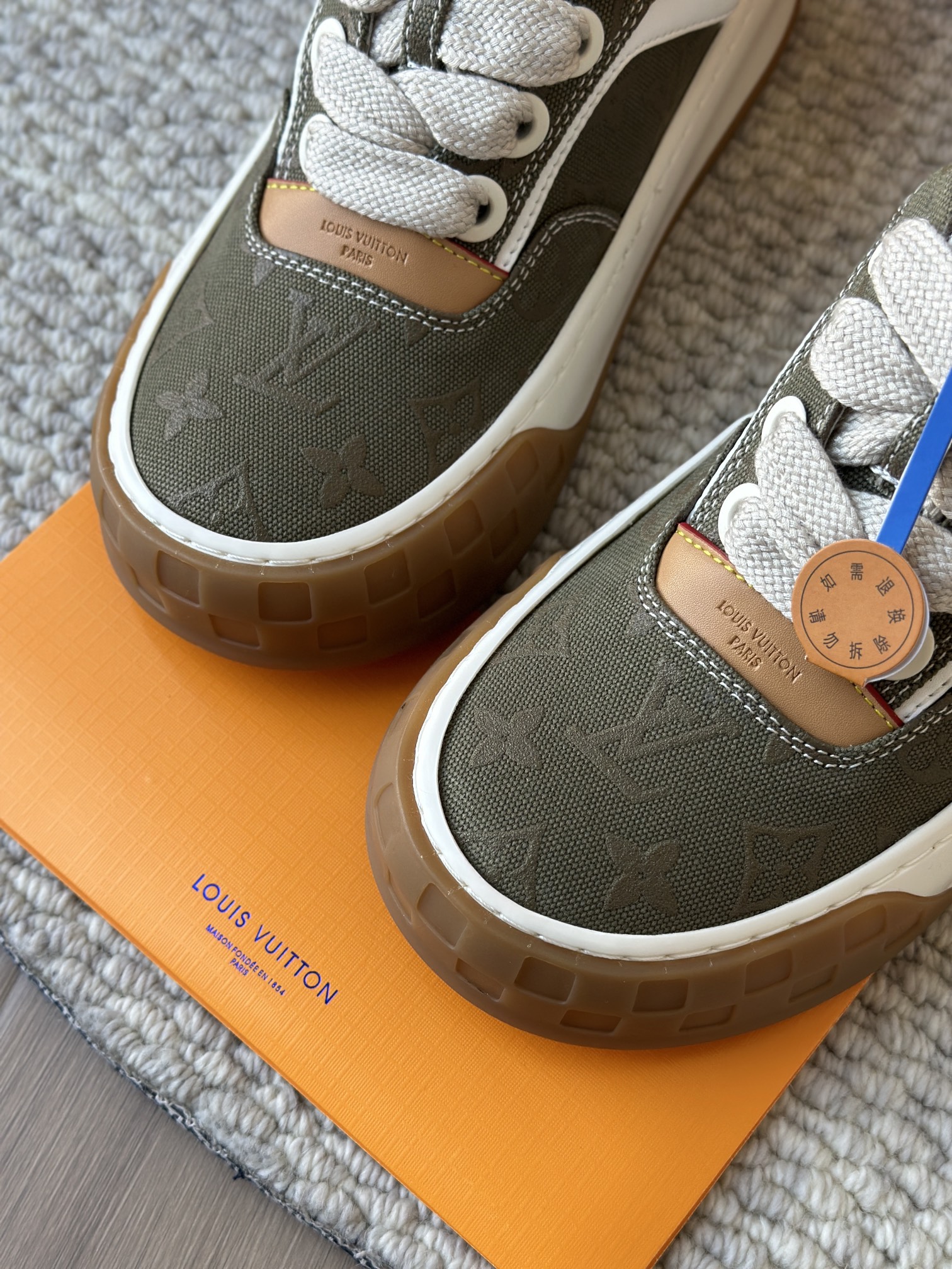 整双鞋的LV标识都超清晰立体! 拉近看LV的logo太有小心机了! 辨识度超高还不会特别夸张,和整双鞋子的风格都融合的很好 超新款!!早穿早享受