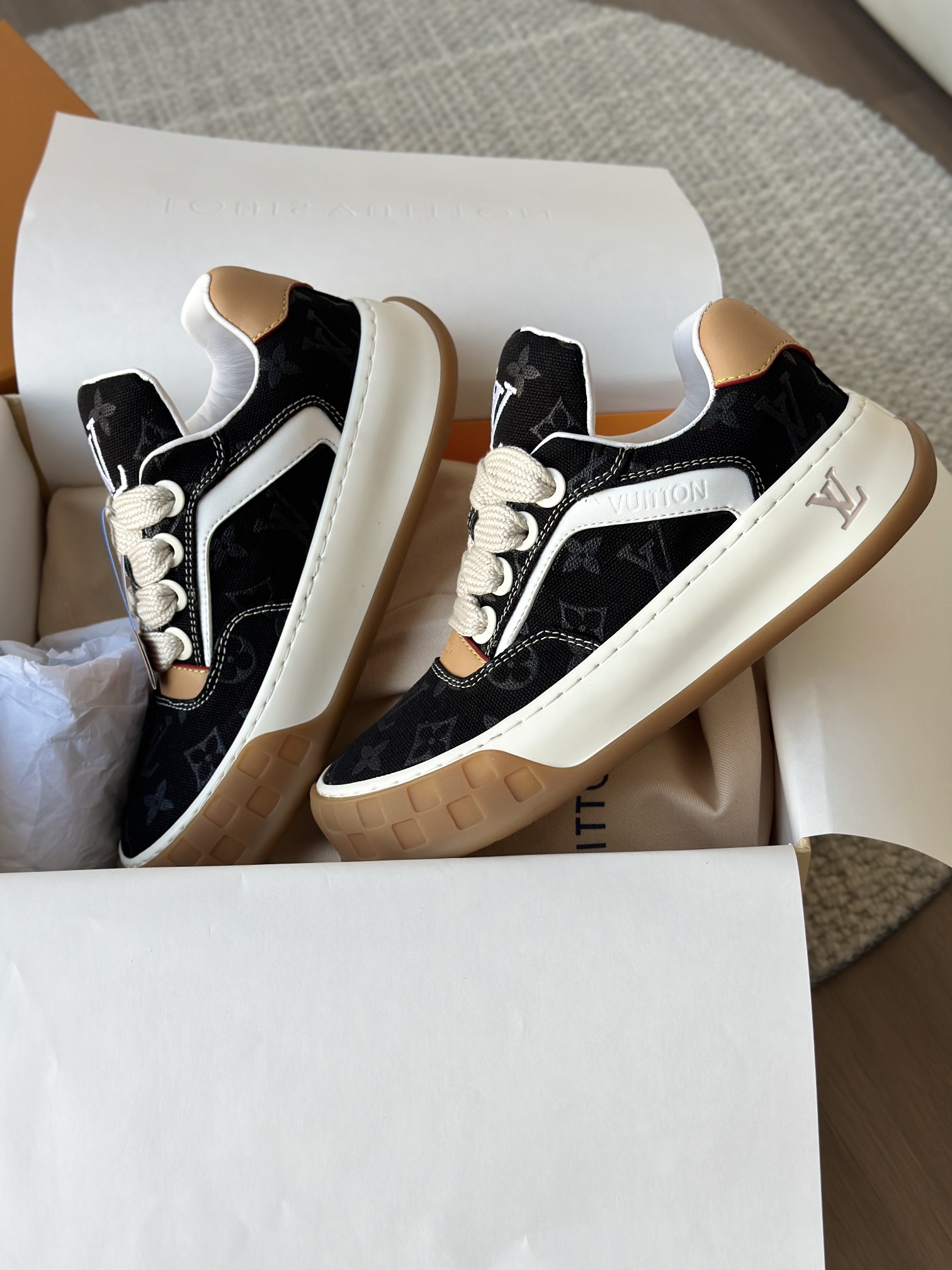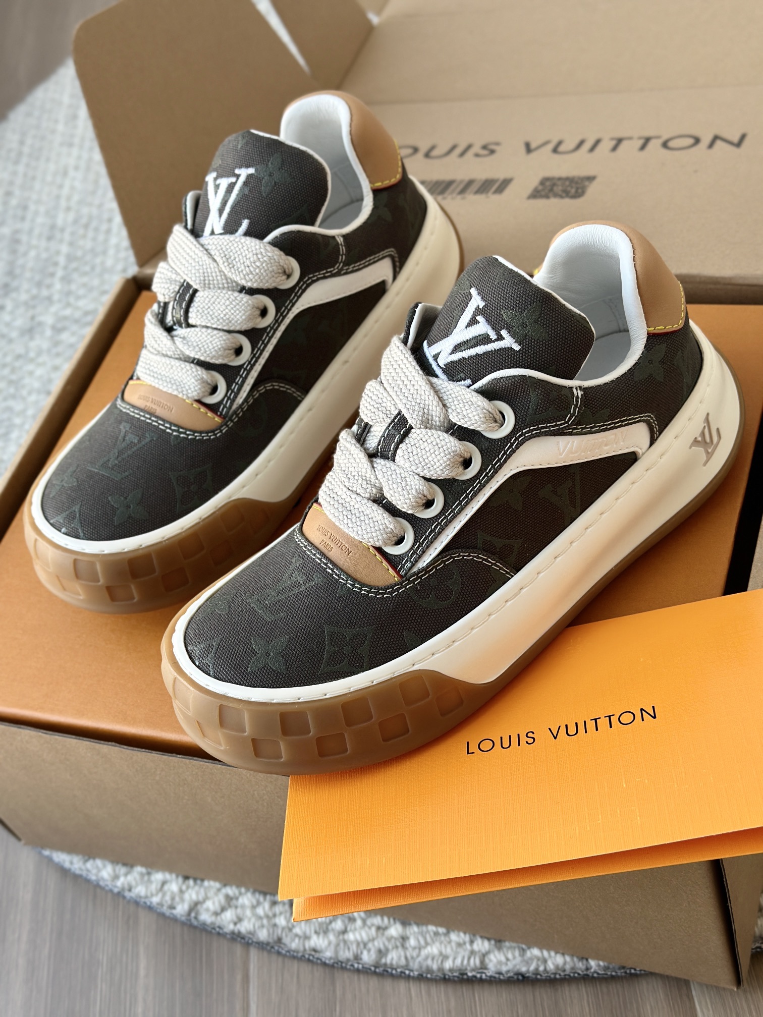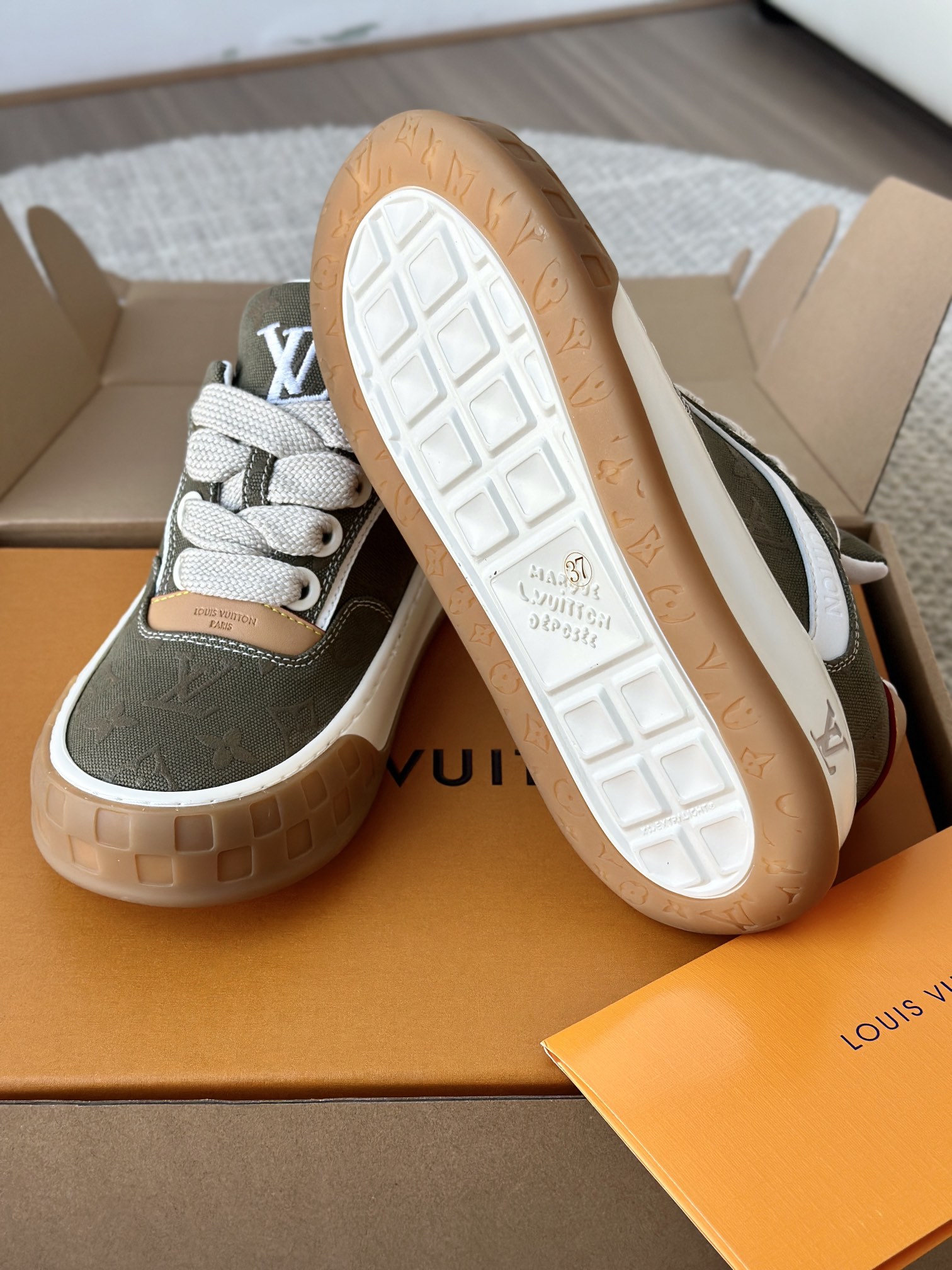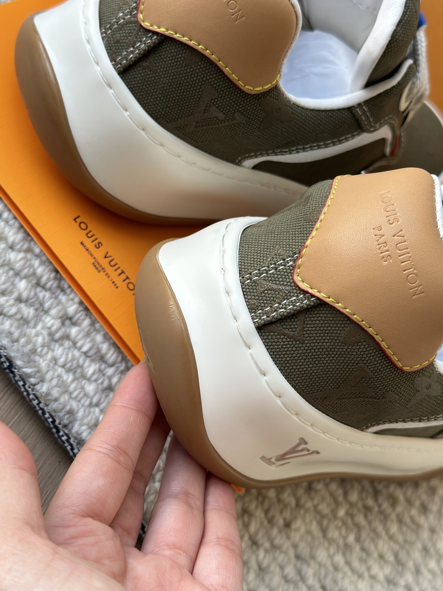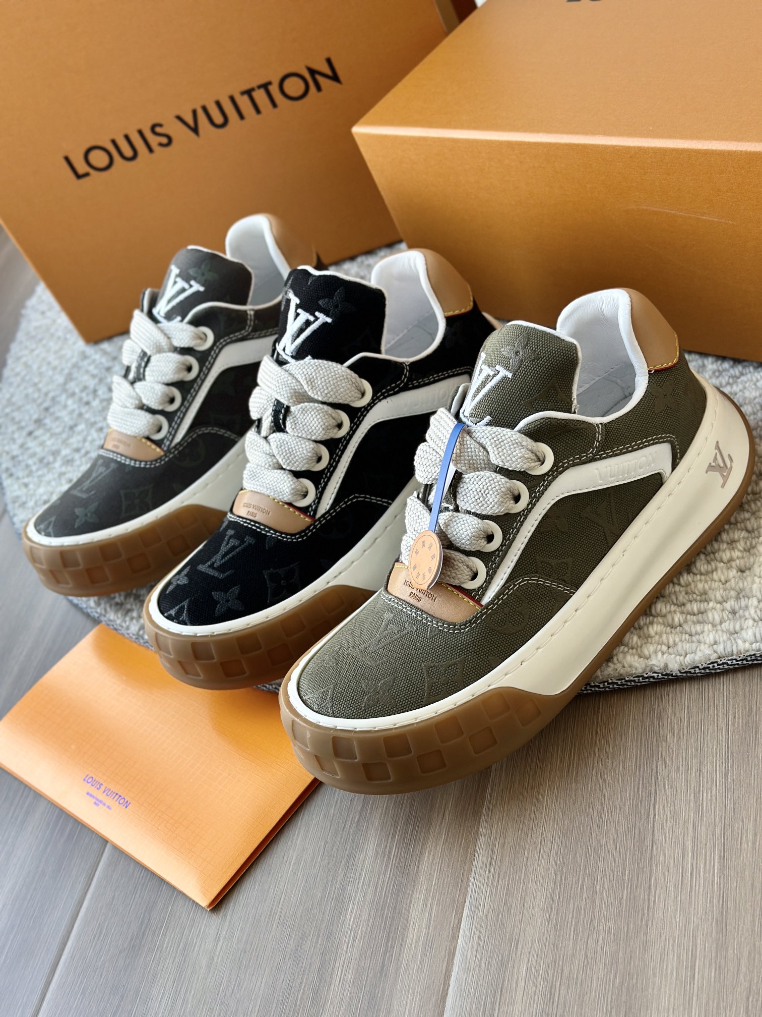 整双鞋的LV标识都超清晰立体! 拉近看LV的logo太有小心机了! 辨识度超高还不会特别夸张,和整双鞋子的风格都融合的很好 超新款!!早穿早享受