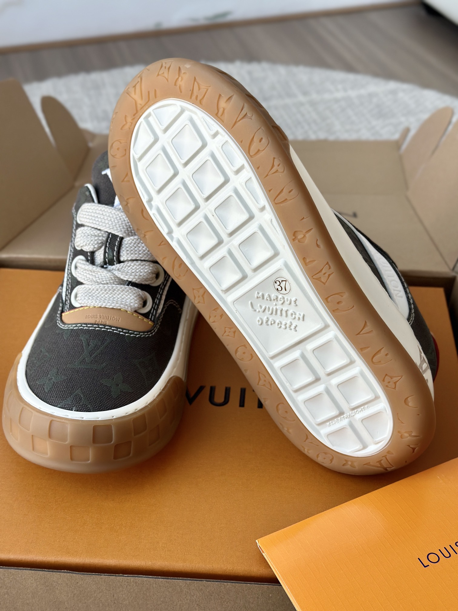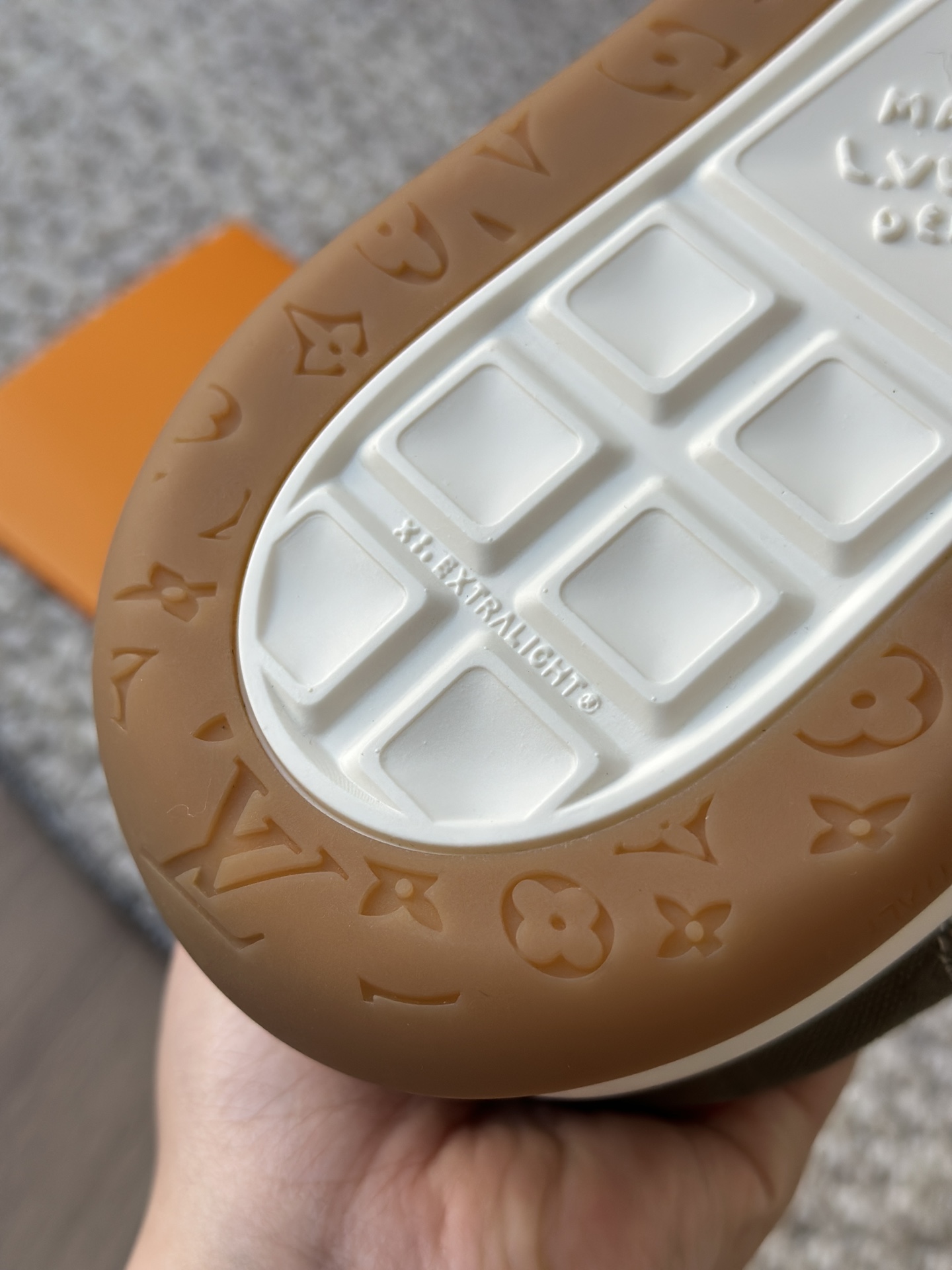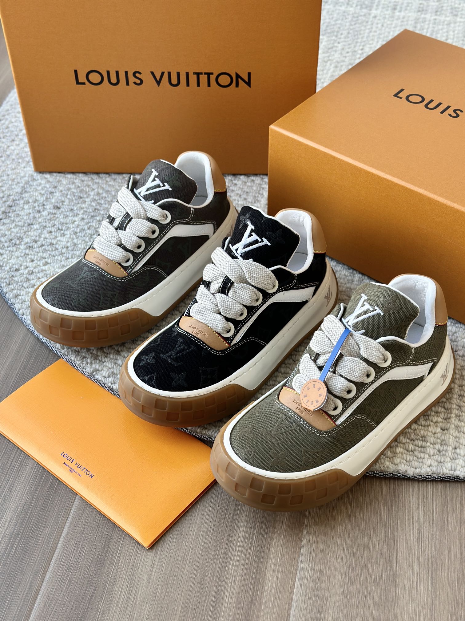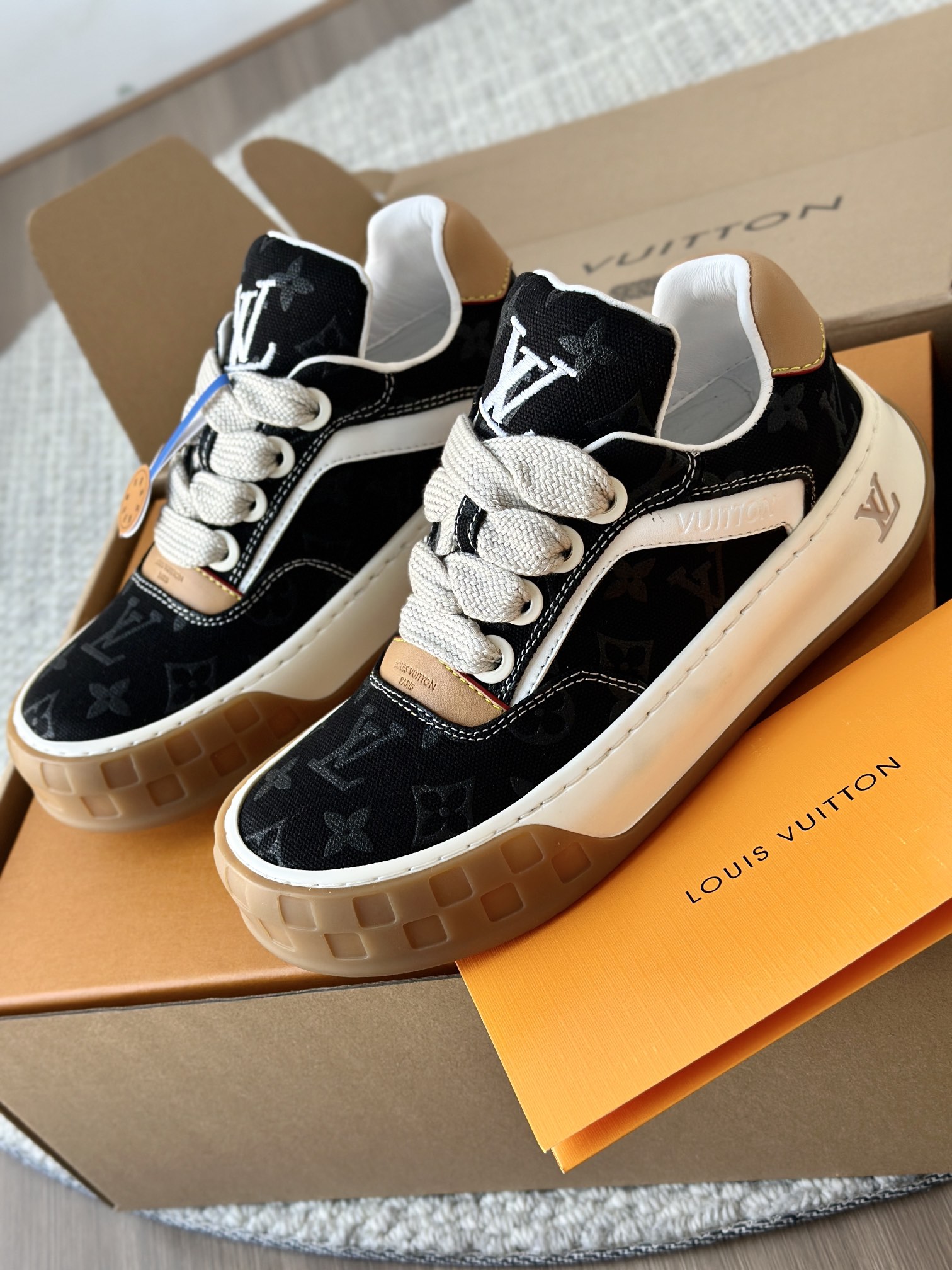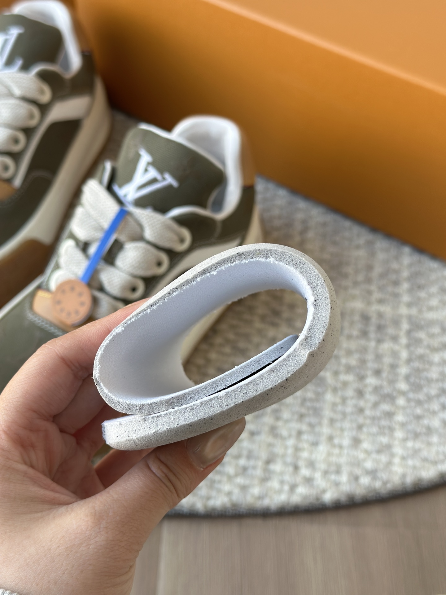 整双鞋的LV标识都超清晰立体! 拉近看LV的logo太有小心机了! 辨识度超高还不会特别夸张,和整双鞋子的风格都融合的很好 超新款!!早穿早享受
