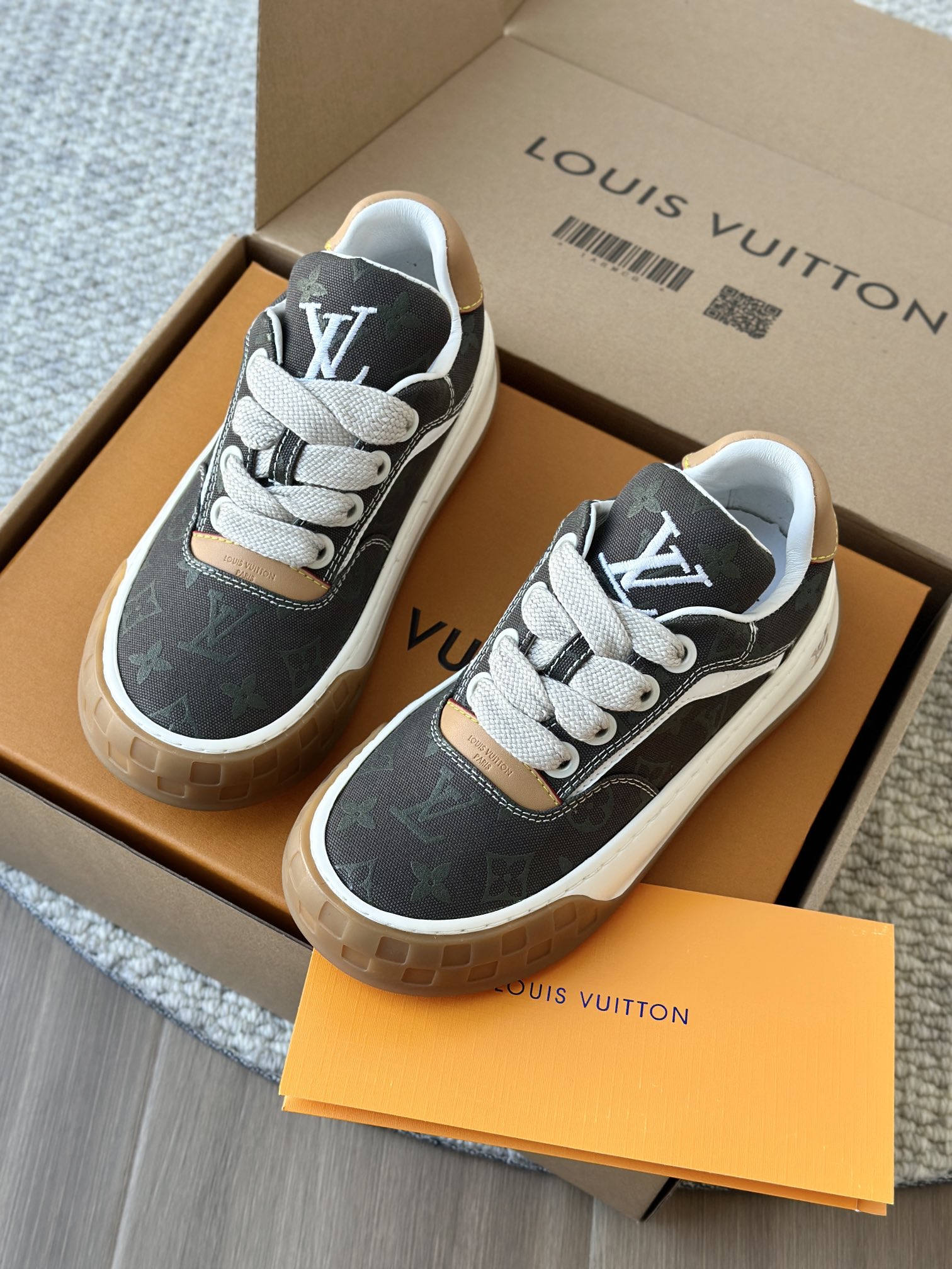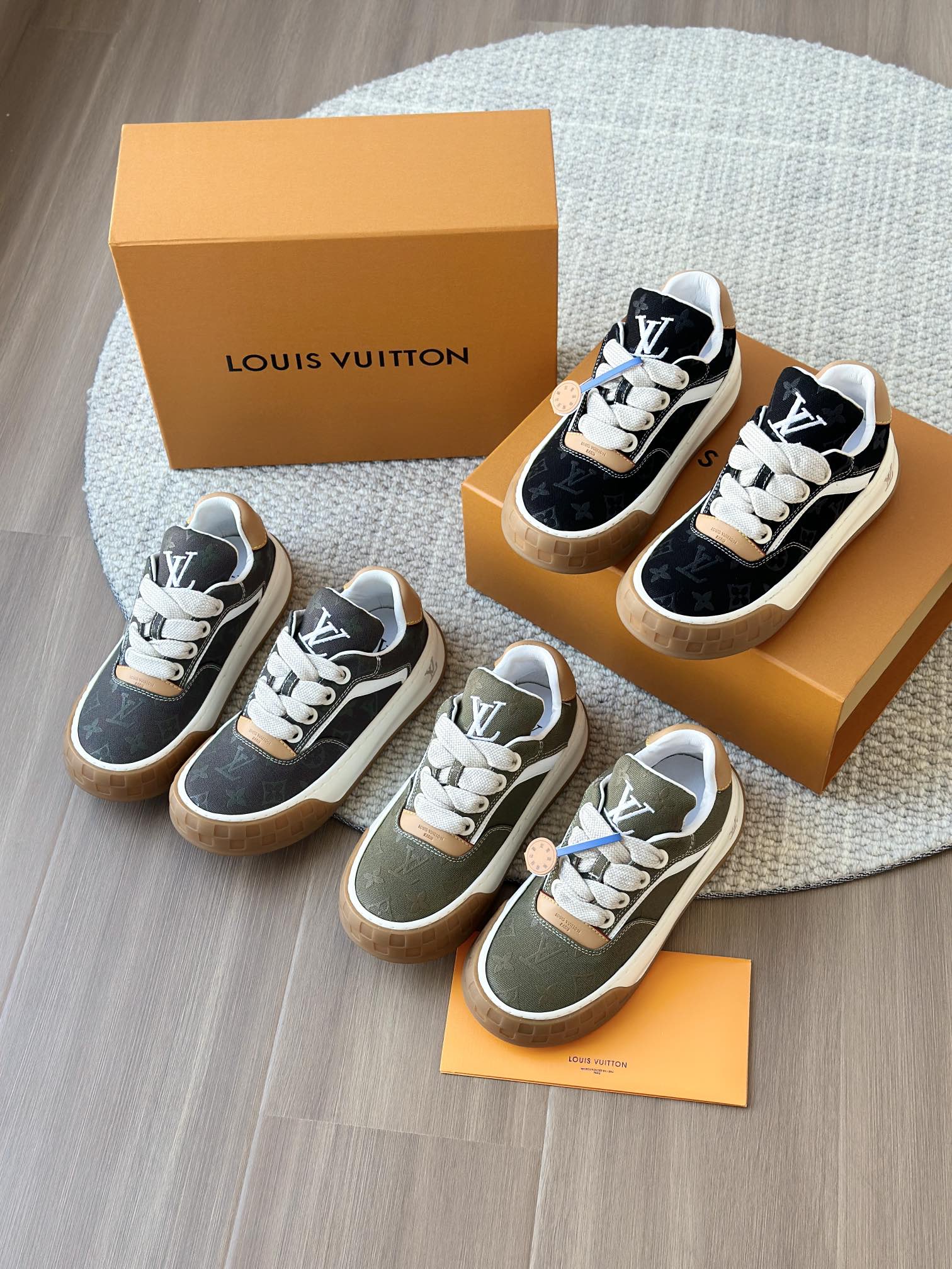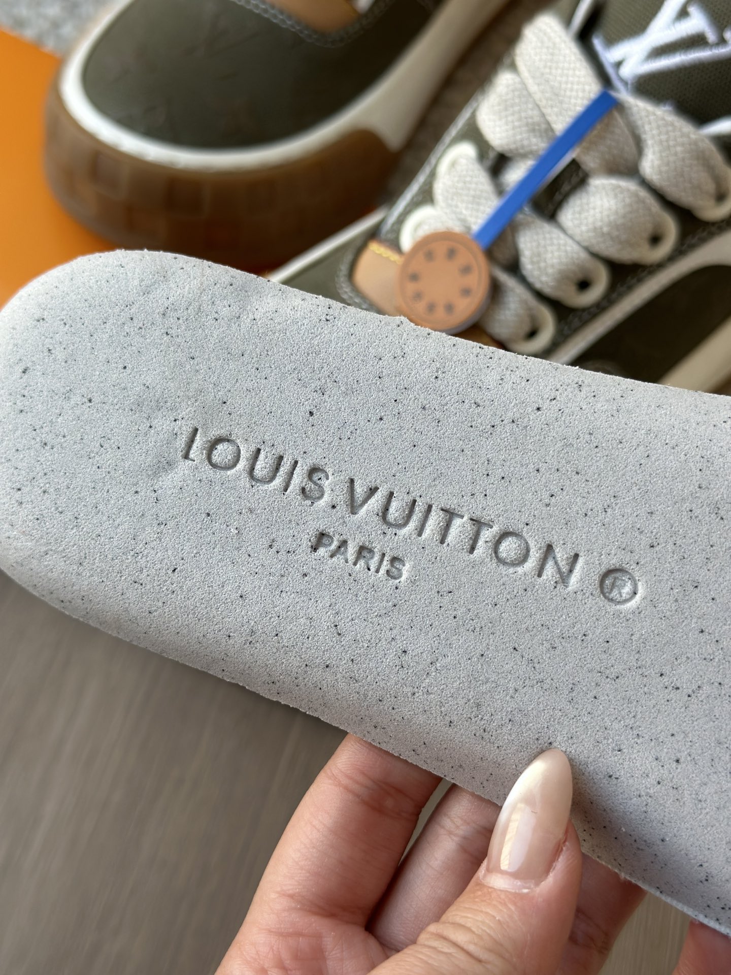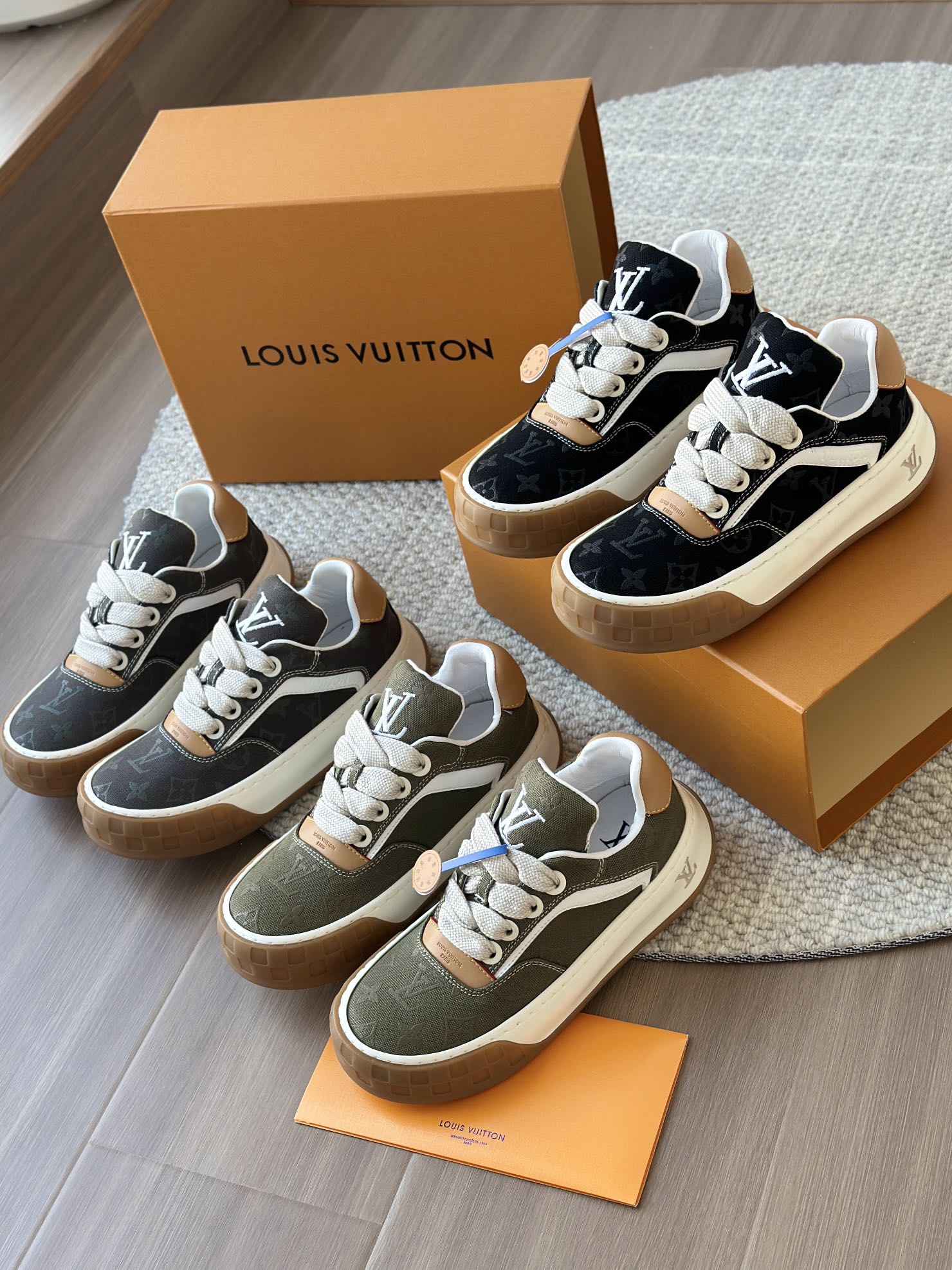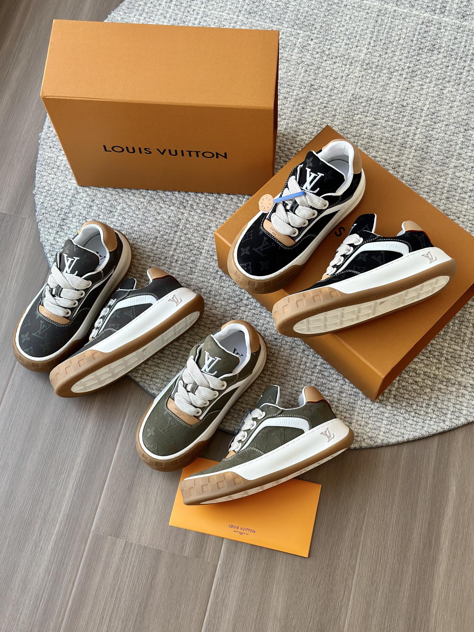 整双鞋的LV标识都超清晰立体! 拉近看LV的logo太有小心机了! 辨识度超高还不会特别夸张,和整双鞋子的风格都融合的很好 超新款!!早穿早享受