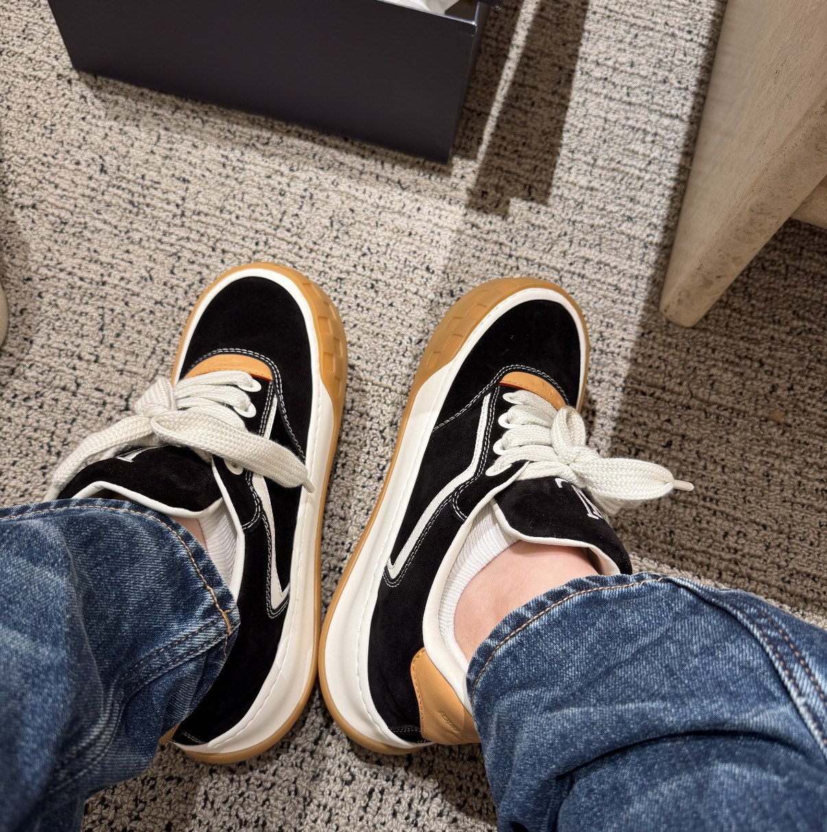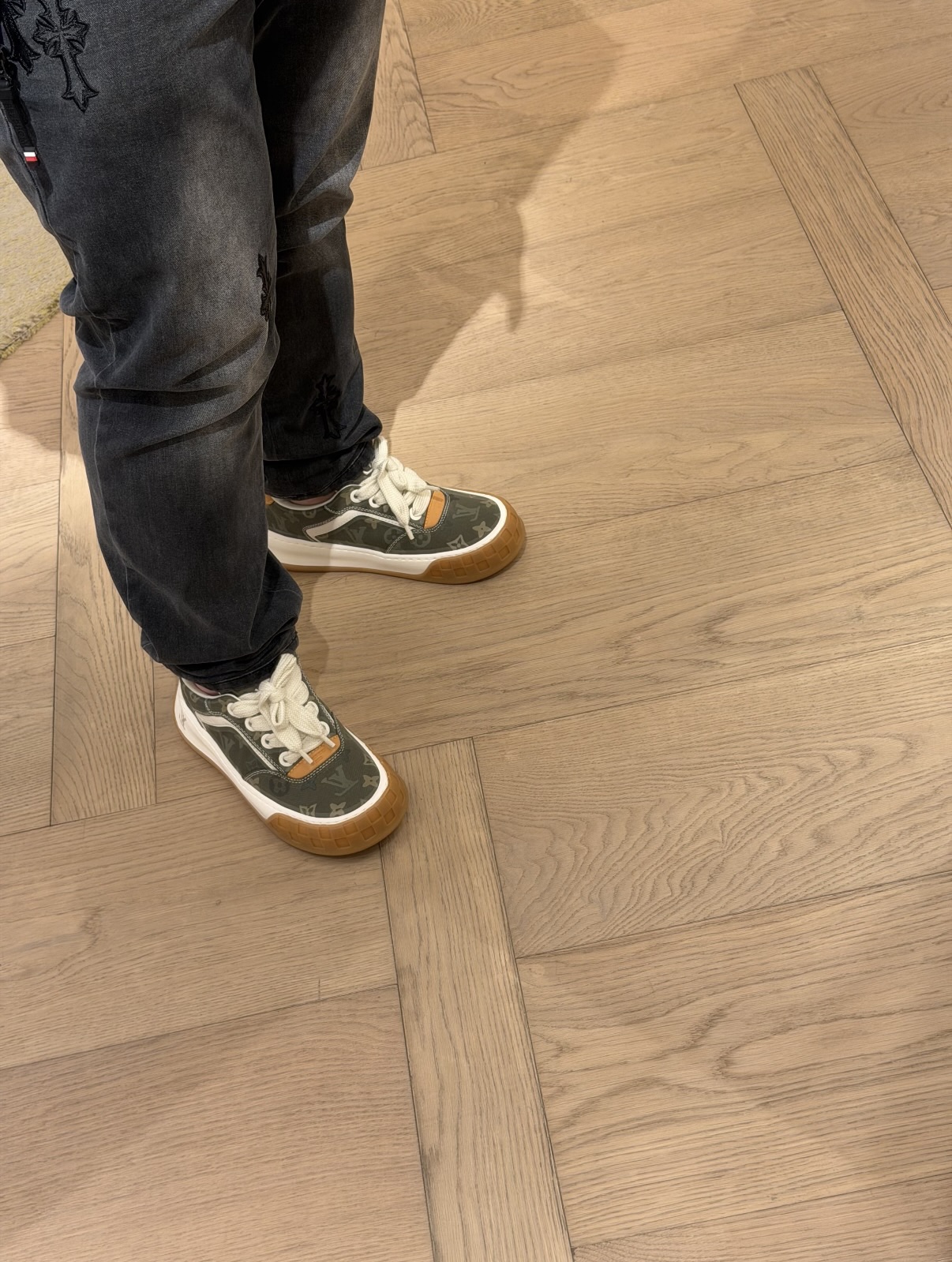 平时休闲穿搭穿的多的朋友可以闭眼入! 搭衣服真的是好看!很有潮范的一款! Monogram 丹宁布鞋面,质感高级耐看 鞋垫嵌入EVA软脚感物料,回弹舒适 后跟耐弯折滴塑支撑片,稳定不塌 全新开发TPR光泽组合隔色鞋底!