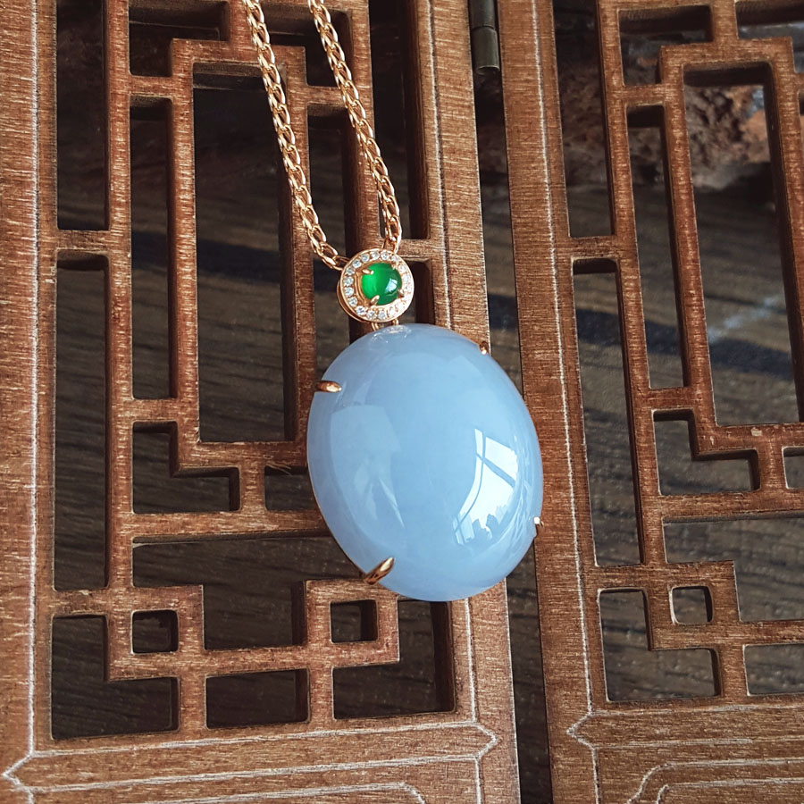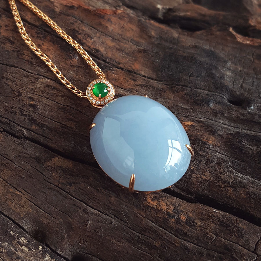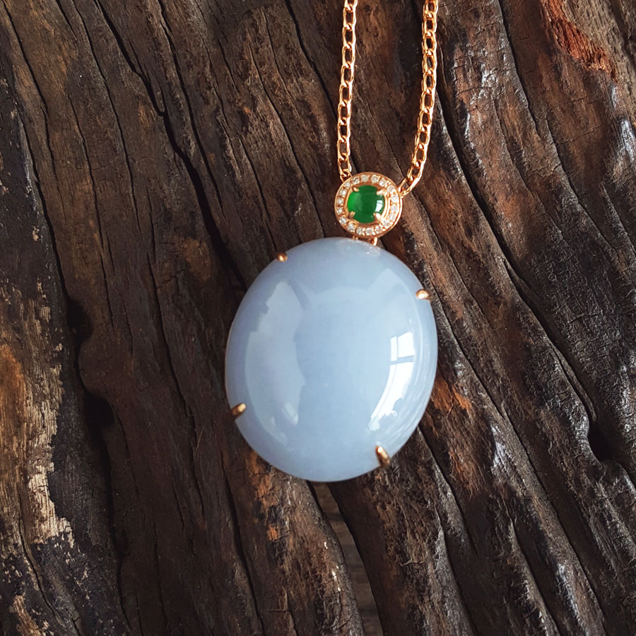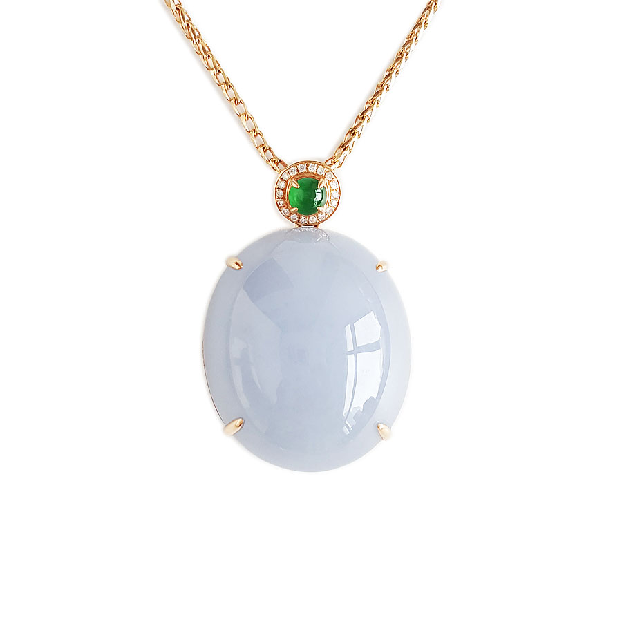 名称 | AU750精品玫瑰金镶钻镶天然细腻糯种紫罗兰蛋面(圆圆满满)翡翠吊坠项链 |