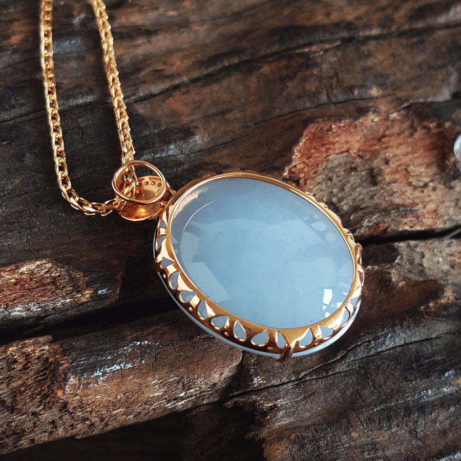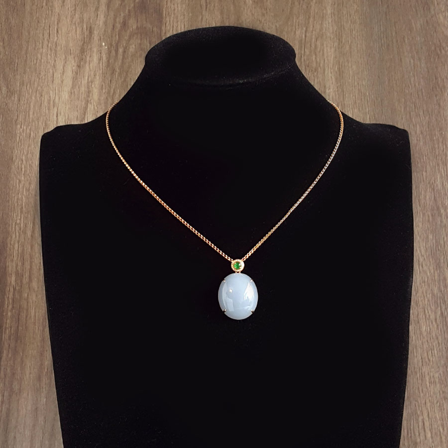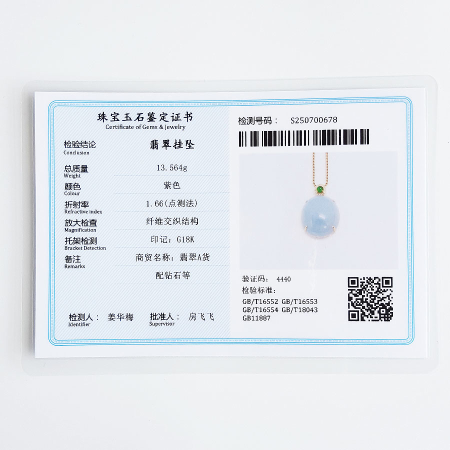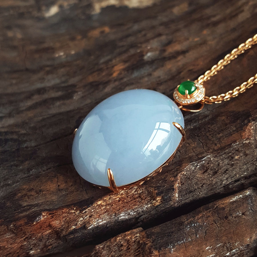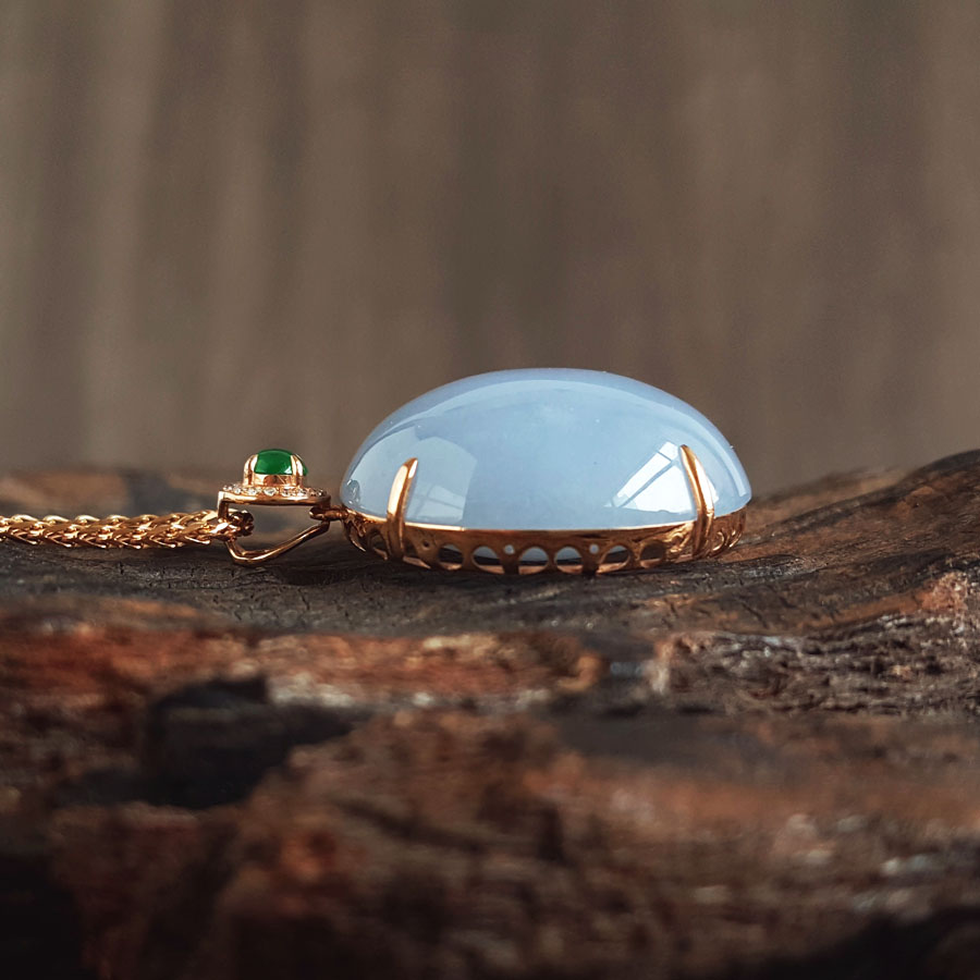 名称 | AU750精品玫瑰金镶钻镶天然细腻糯种紫罗兰蛋面(圆圆满满)翡翠吊坠项链 |