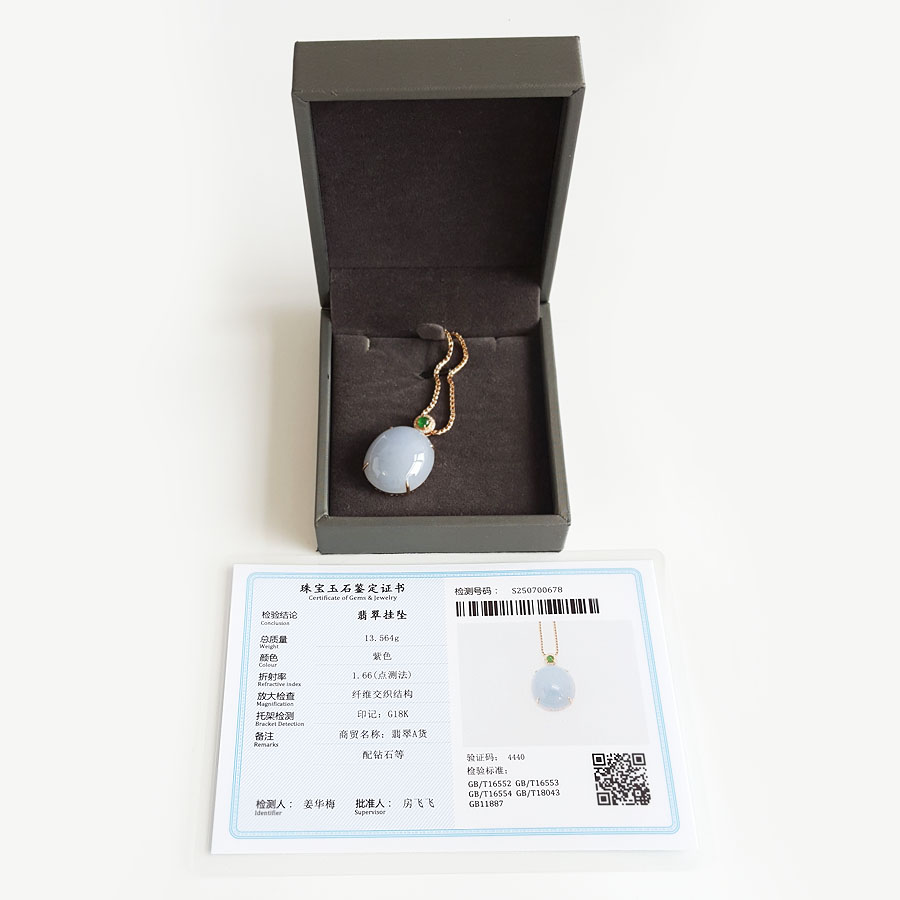 【天然正品】AU750精品玫瑰金镶钻镶天然细腻糯种紫罗兰蛋面(圆圆满满)翡翠吊坠项链30.5*20.4*11.1MM(皆取最大值)女性现售价:8880!130725NJM07