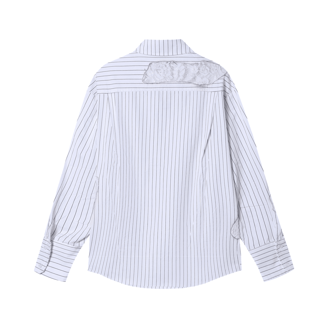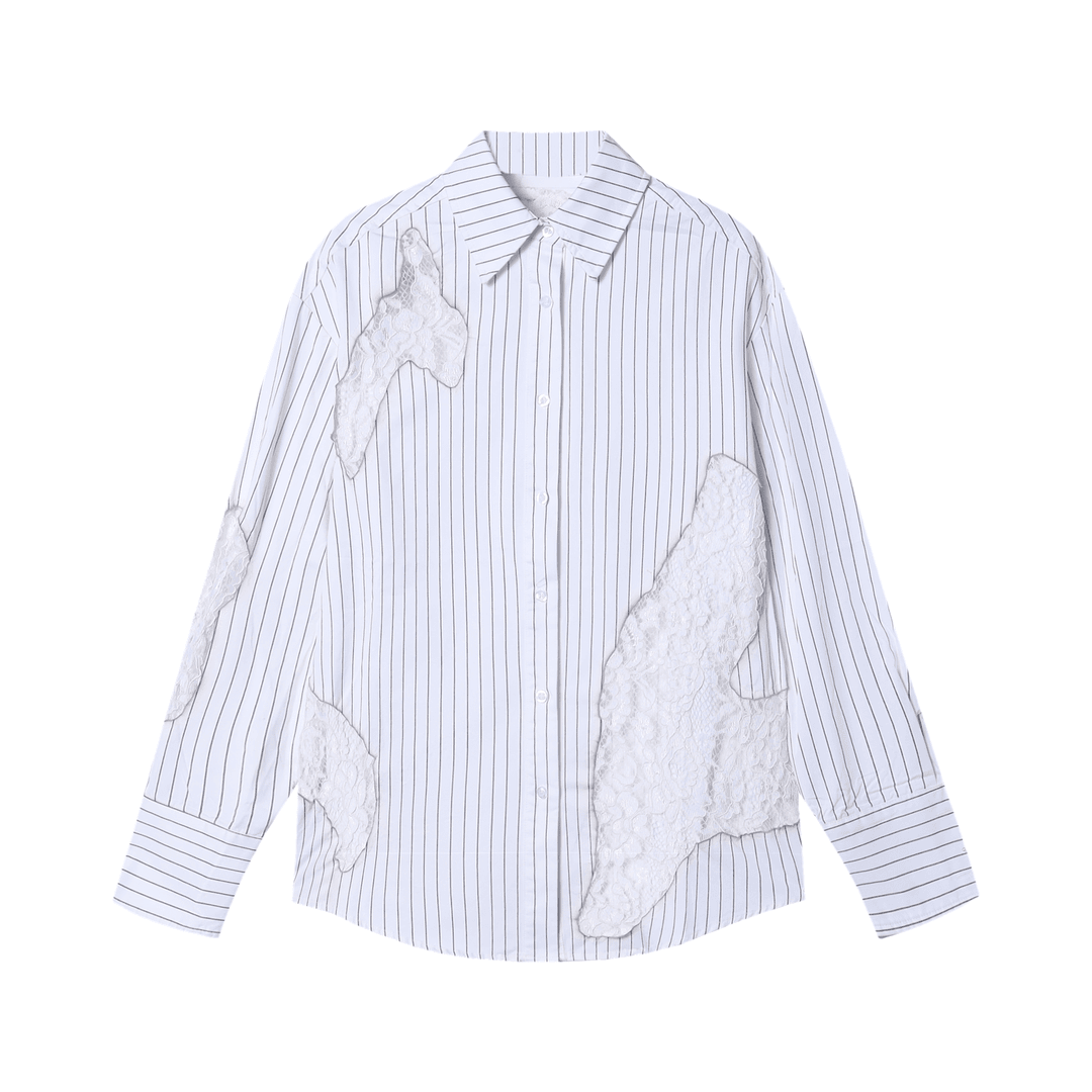 CS116夏季新时尚花边拼接男士衬衫百搭条纹印花上衣宽松经典短袖