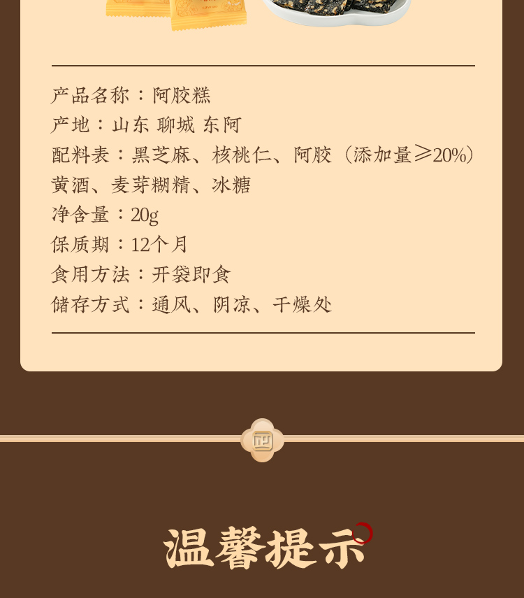 【阿胶糕品鉴装】正广仁东阿原产阿胶 非遗工艺 小袋品鉴20g 臻贵滋养