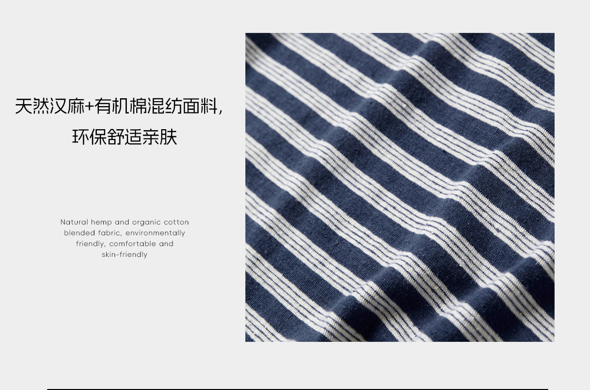 ROMI STUDIO“休闲复古”汉麻混纺撞色条纹圆领短袖T恤 RWCRSU5876