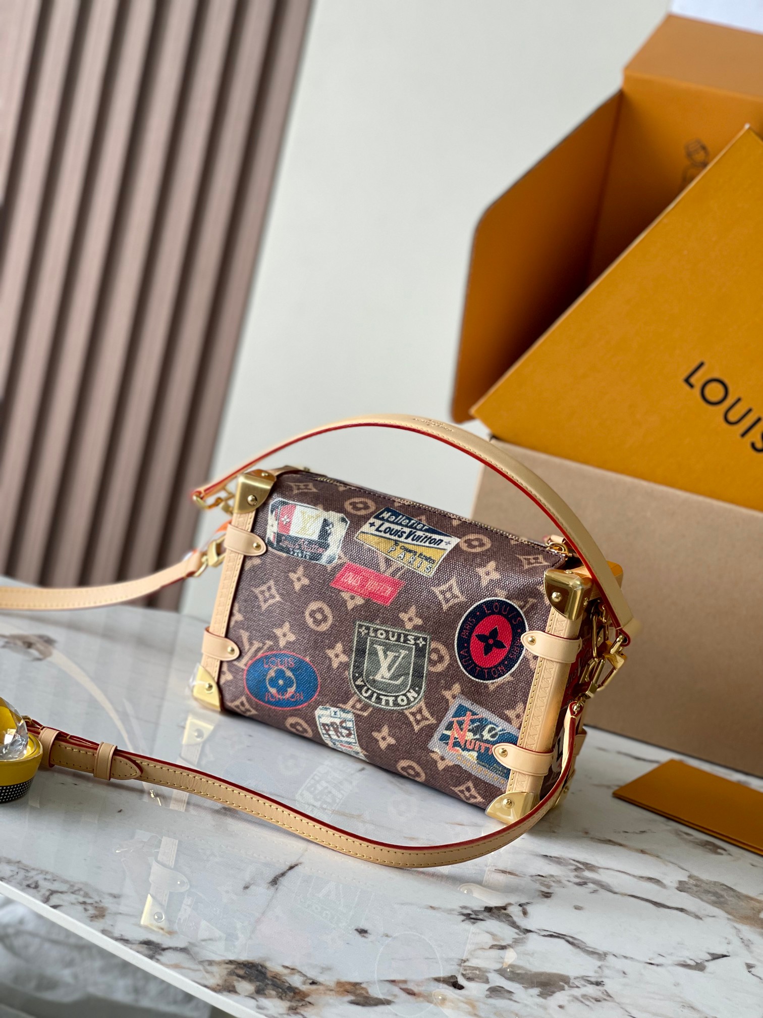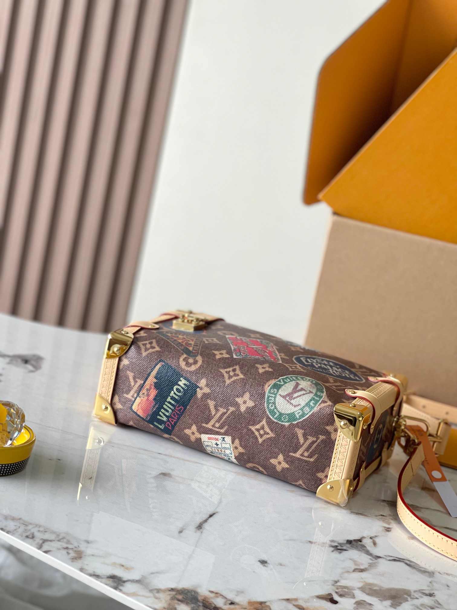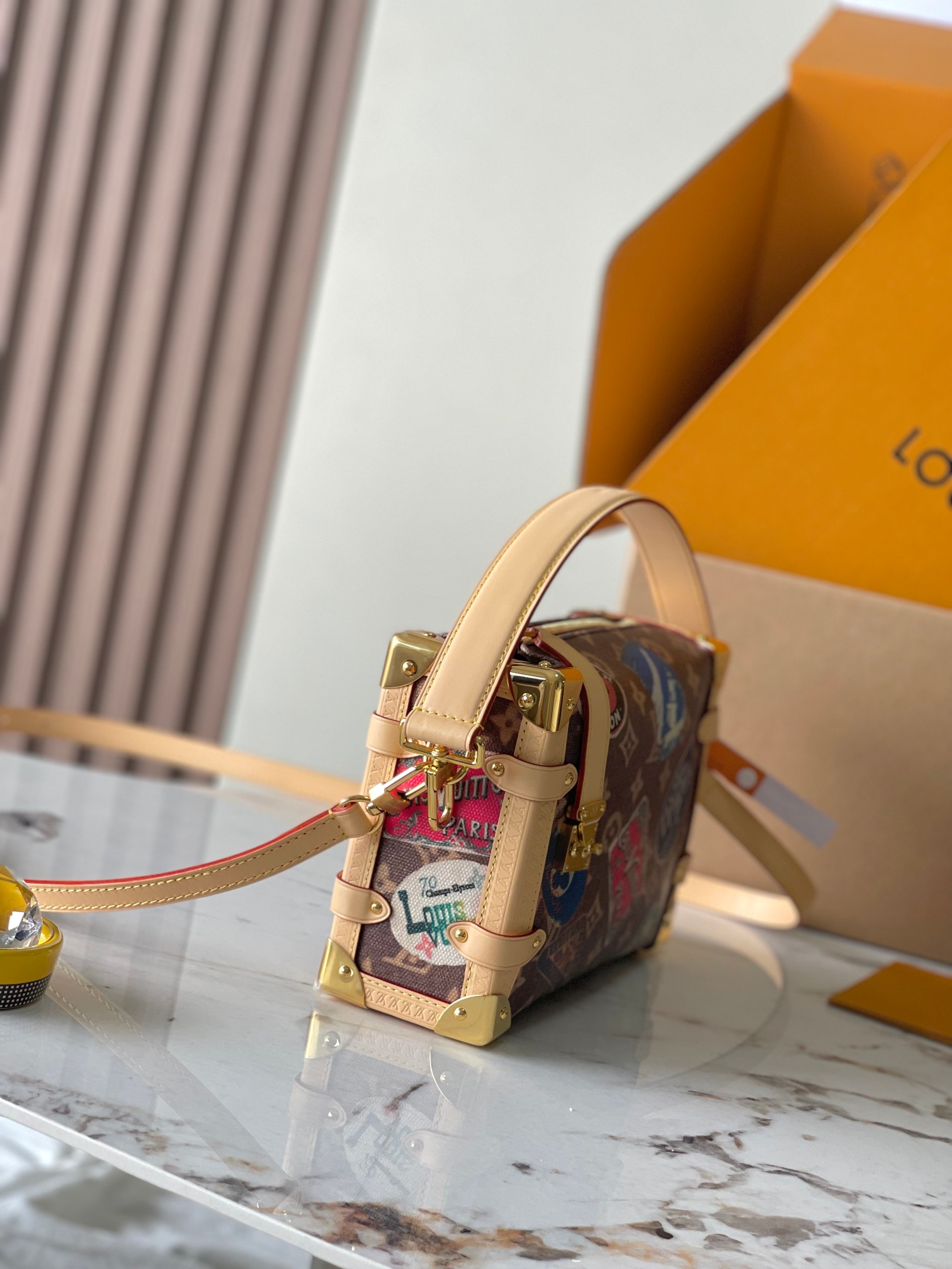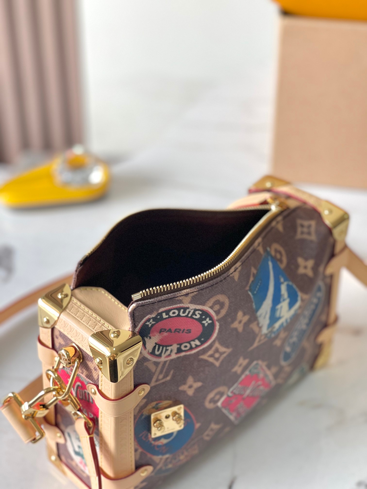 本款 Side Trunk 中号手袋于 2024 春夏时装秀优雅亮相,选用树脂漆面棉麻混纺打造柔软触感,灵感源自品牌经典硬箱的