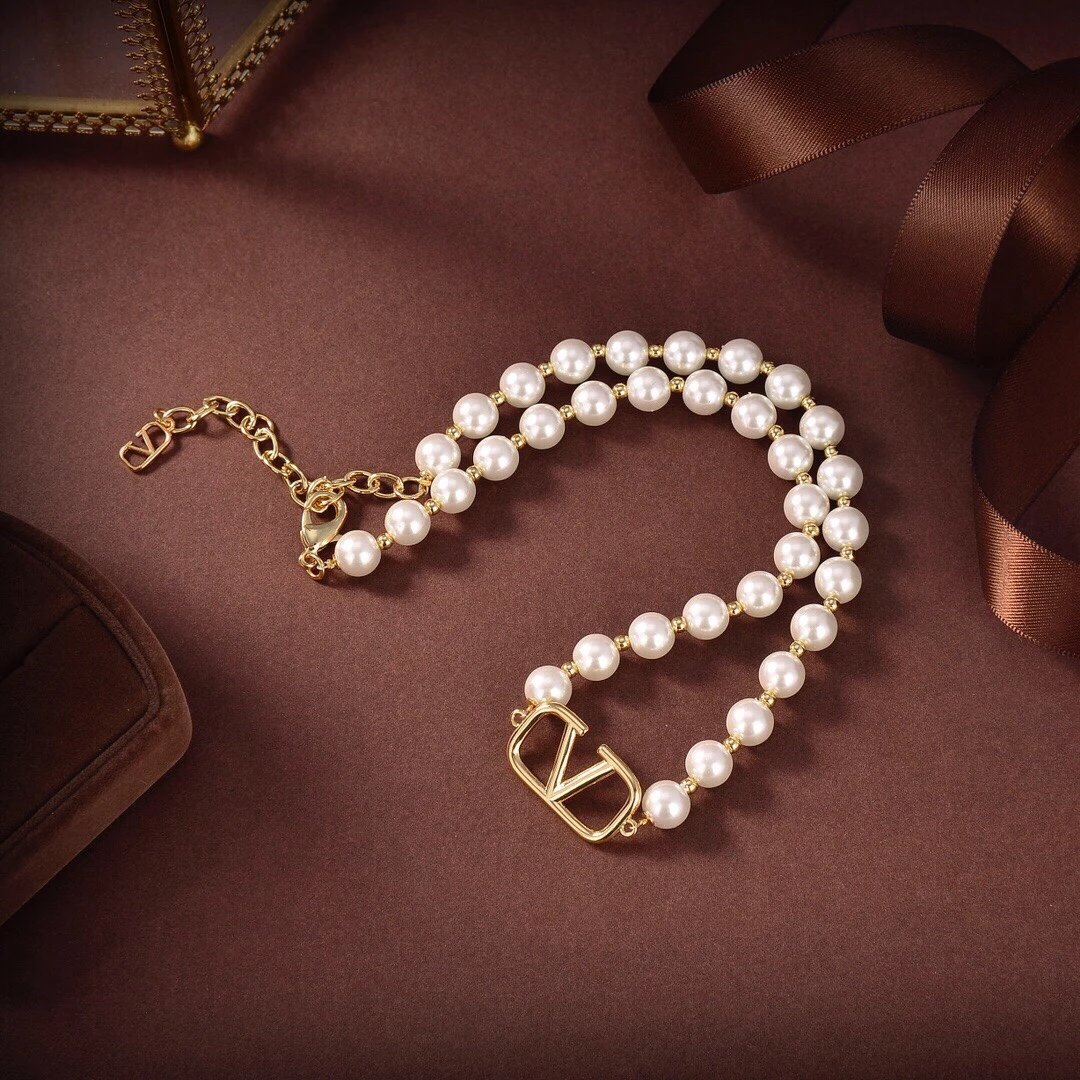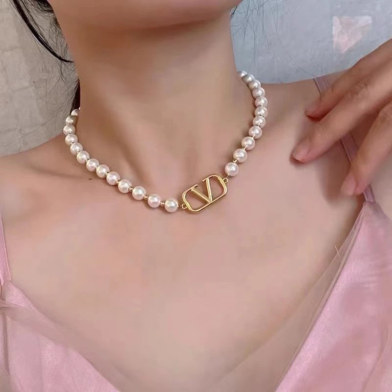 Valentino 华伦天奴 珍珠项链重磅新品火爆网络来了 简约大方 时尚百搭 金色耳钉专柜一致 火爆款出货 设计独特 前卫 美女必备款!配全套包装!