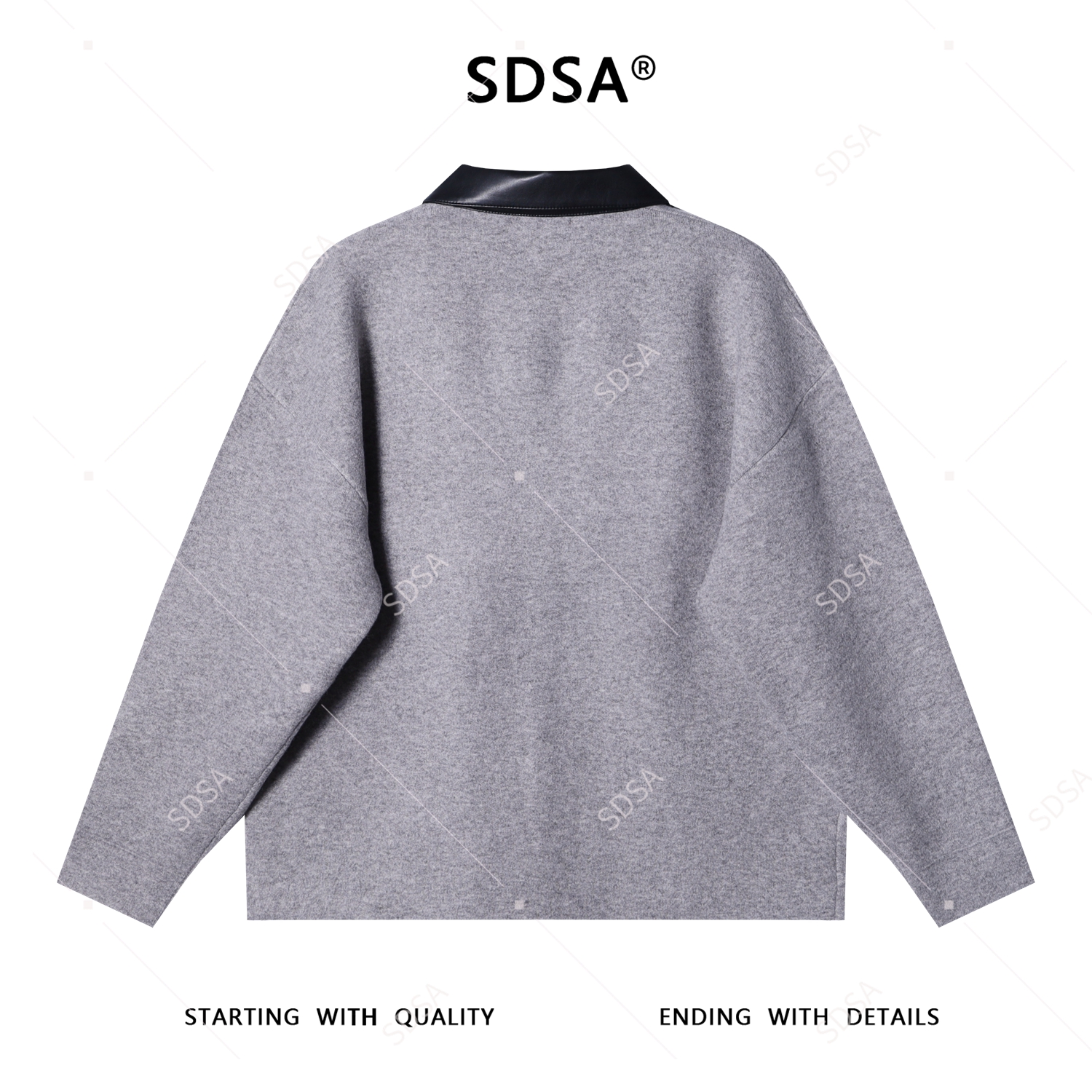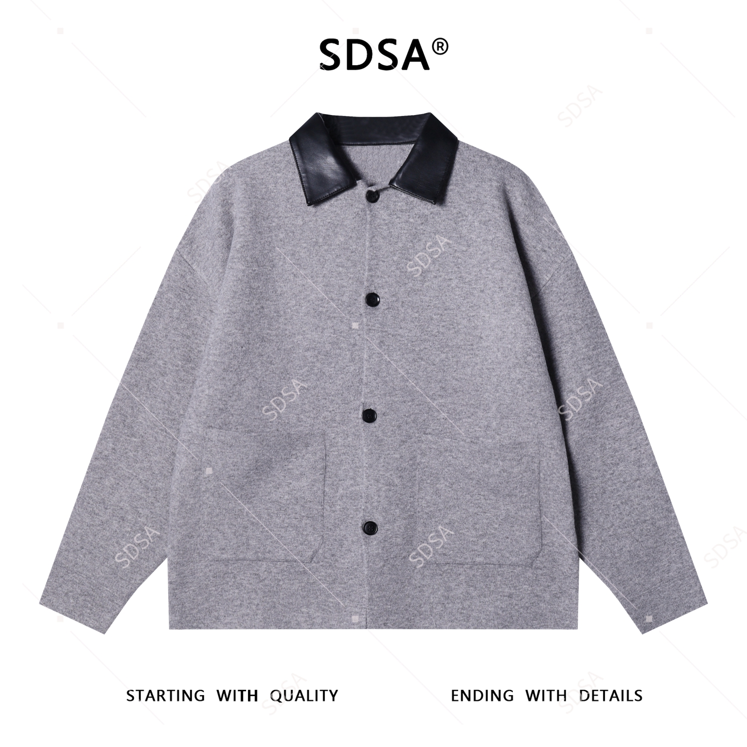 M056SDSA秋冬新款痞帅男装时尚拼色翻领针织衫百搭慵懒风毛衣外套宽松