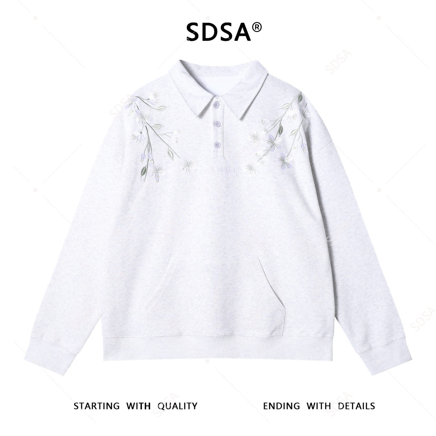 9602SDSA男士秋冬新款痞帅男装潮牌简约刺绣花卉polo领卫衣百搭时尚